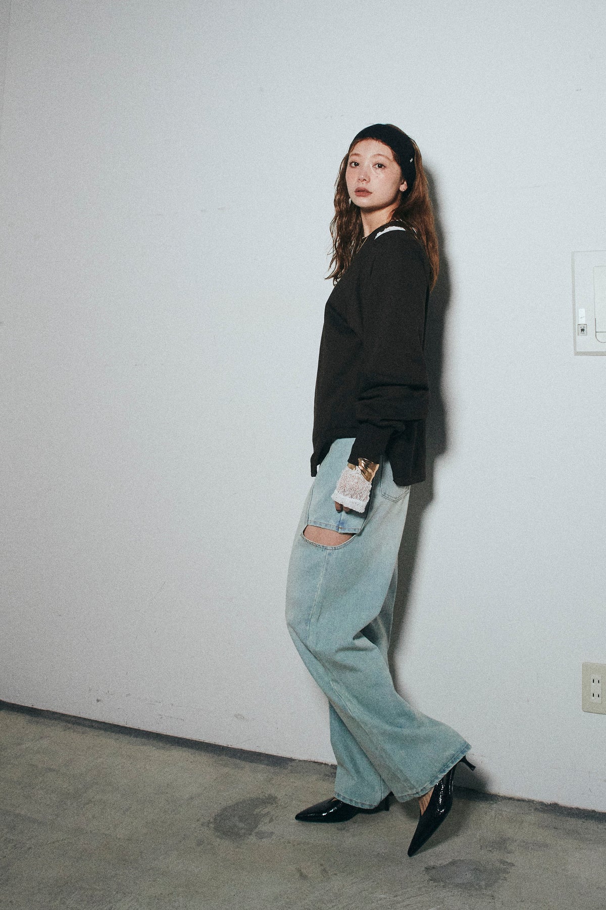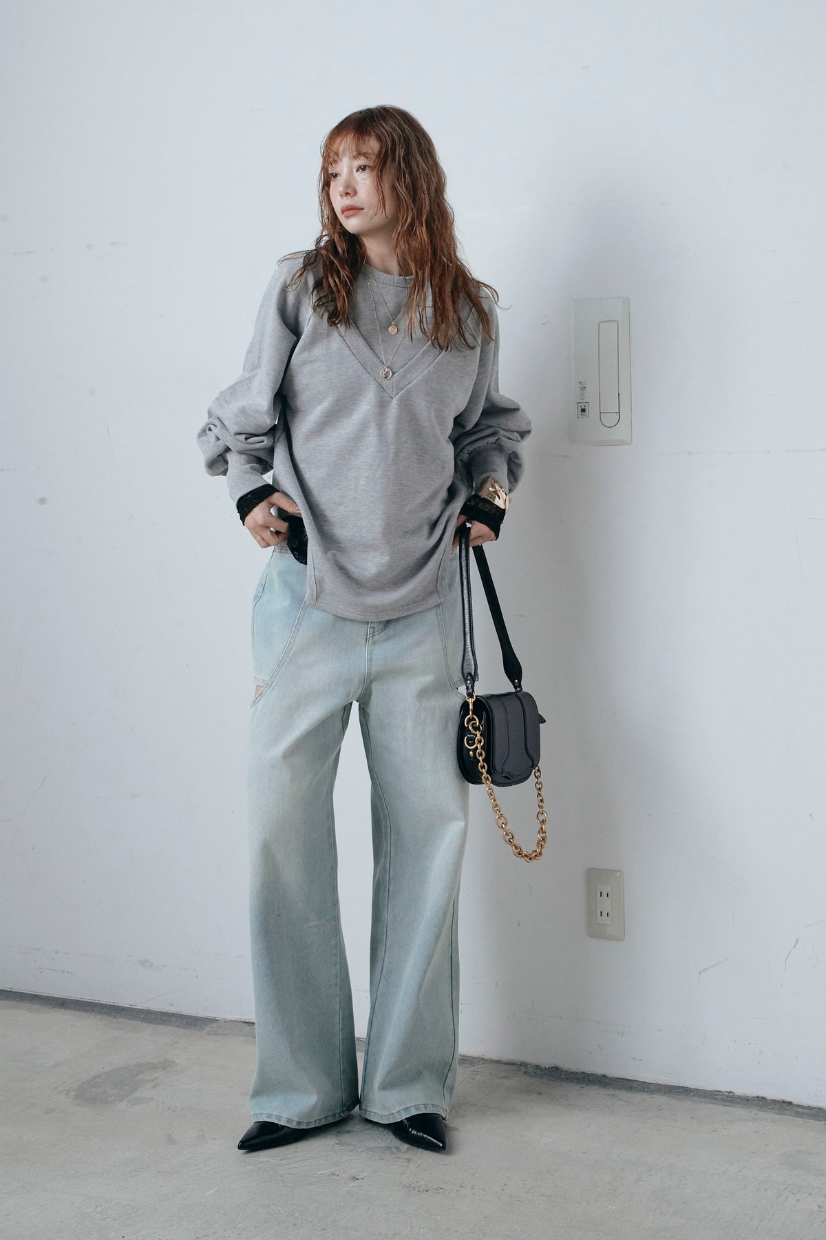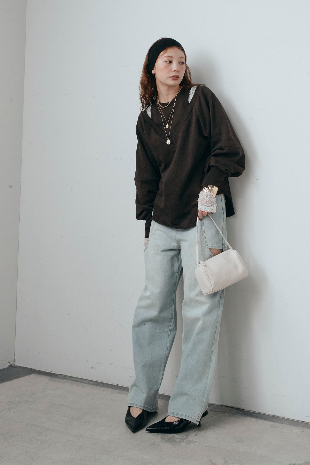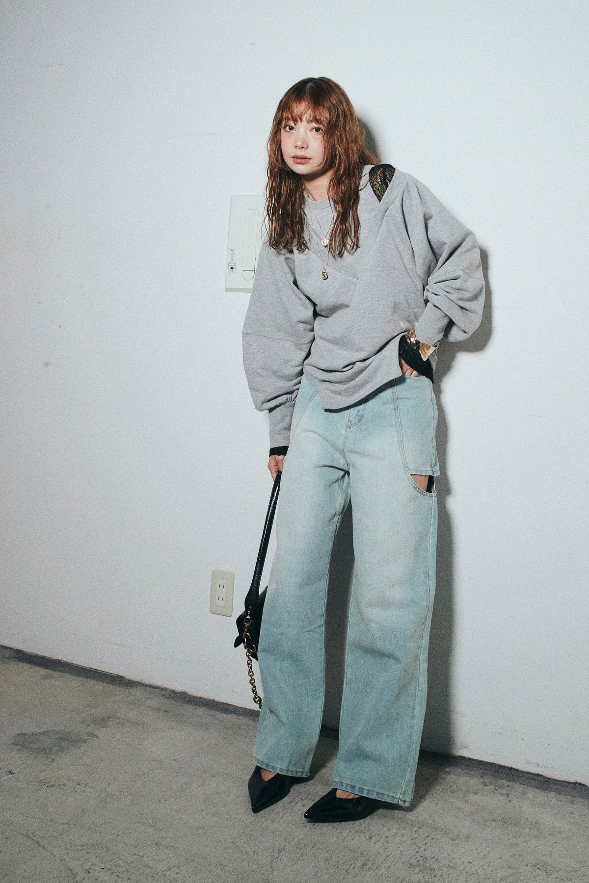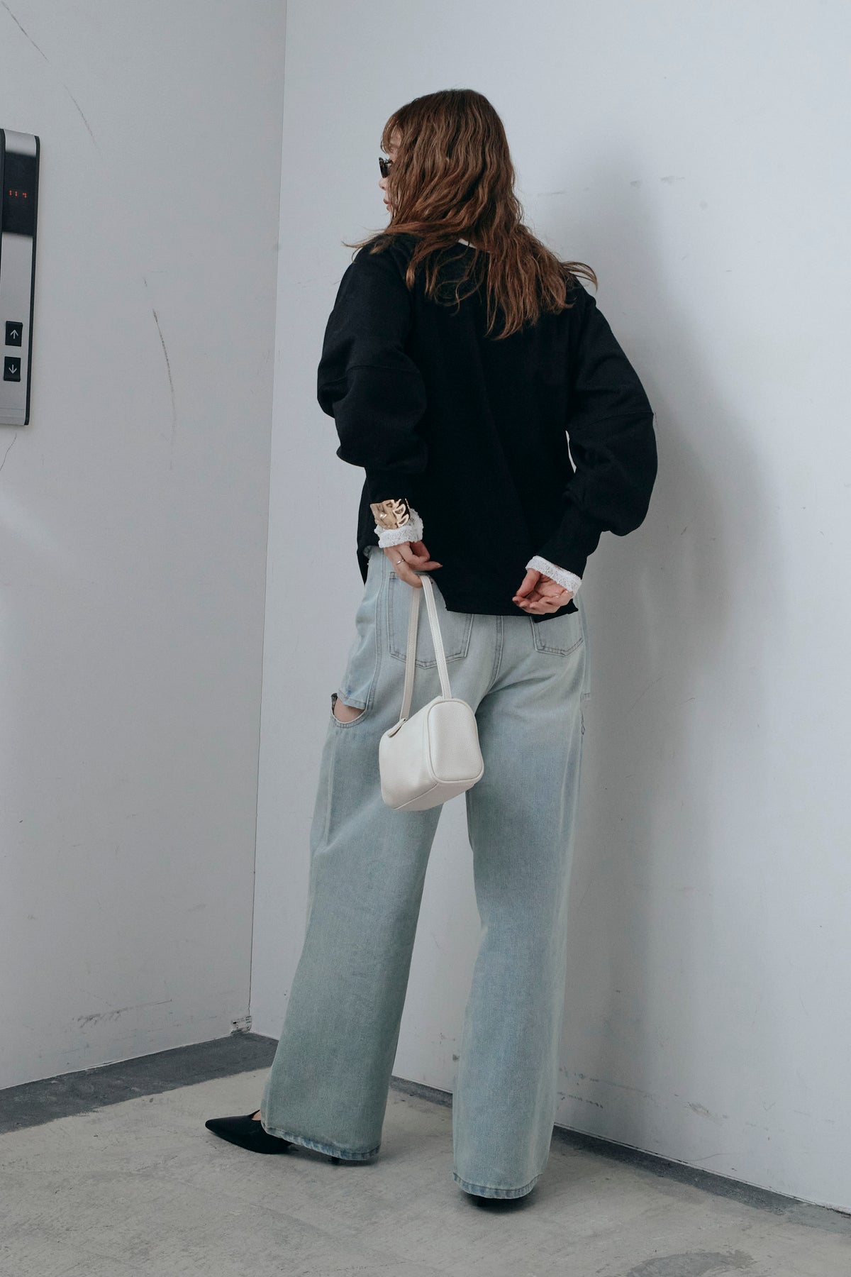 [予約/SET]カットアウトランタンスリーブスウェット+シアーレーストップス(2set)