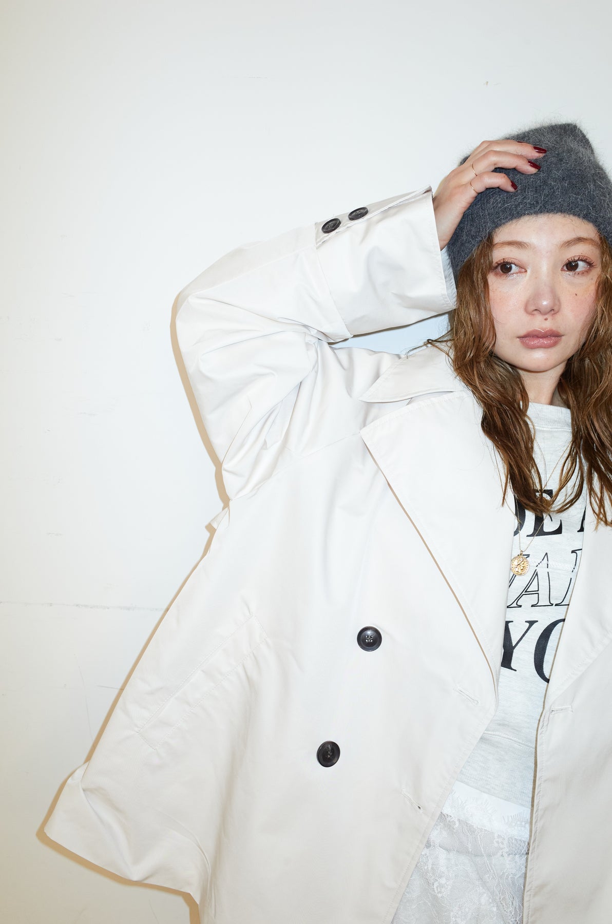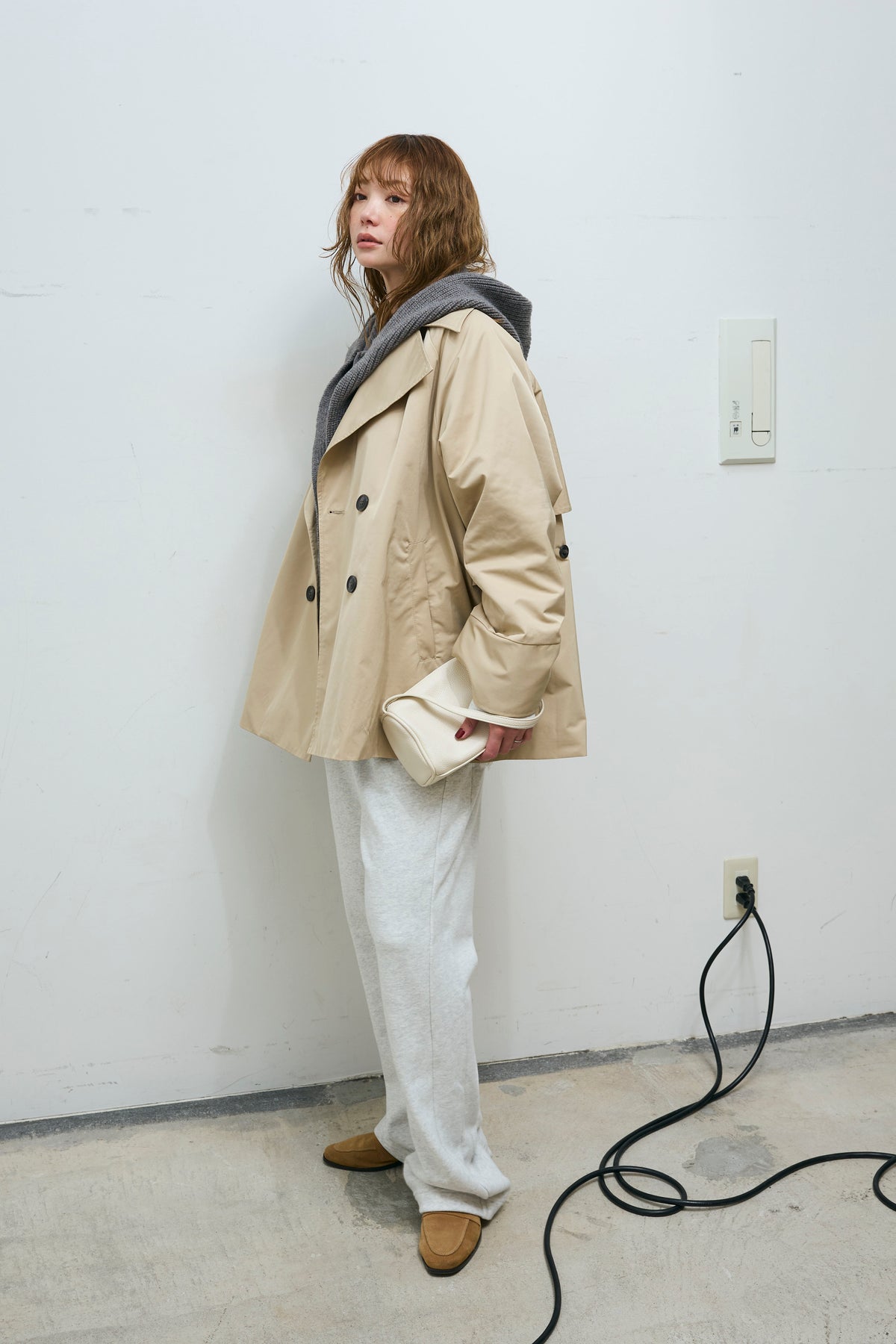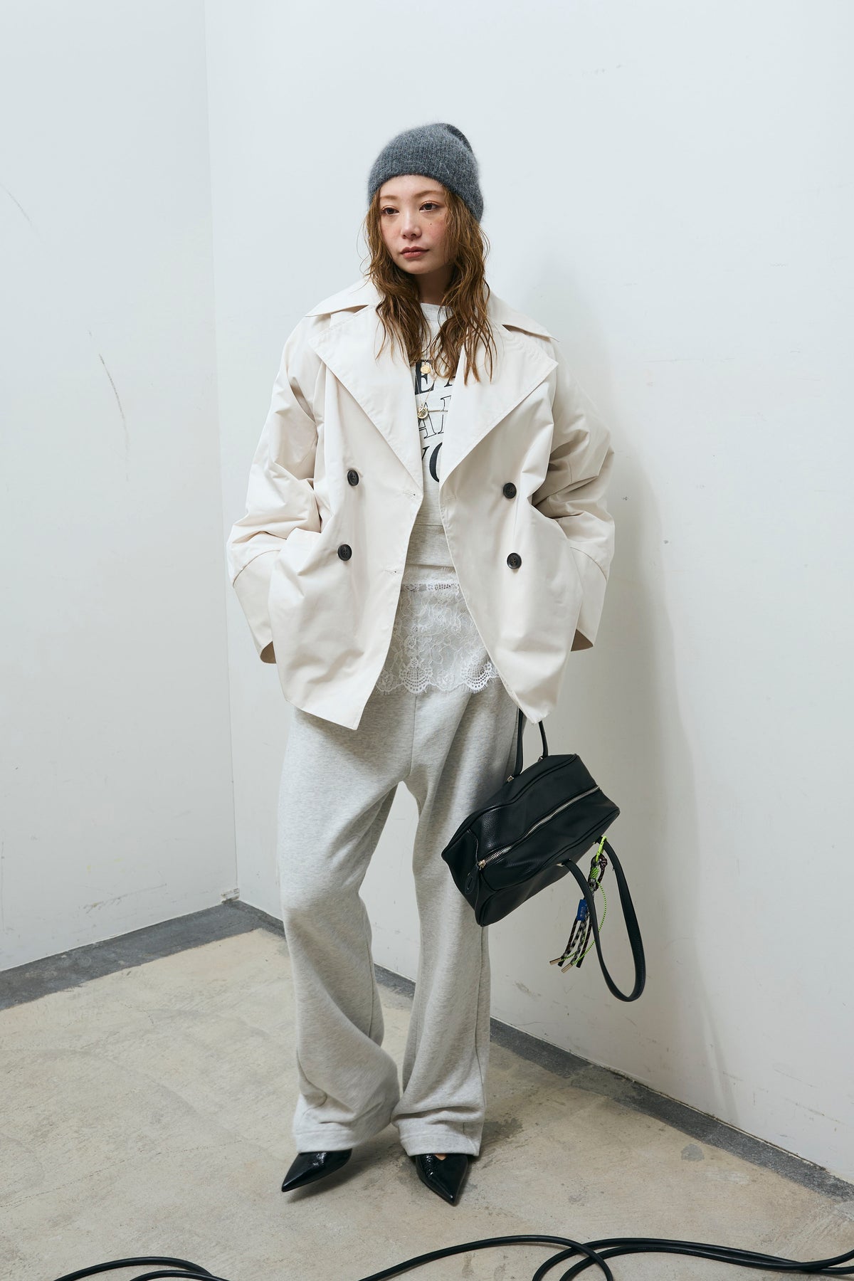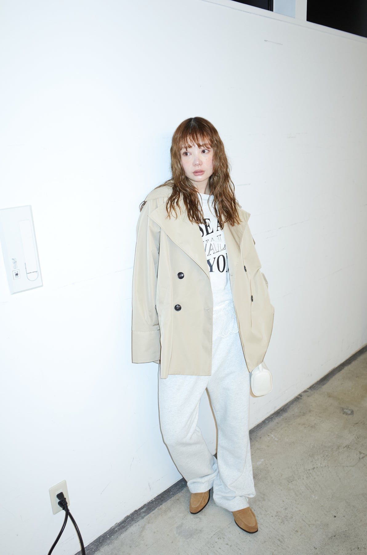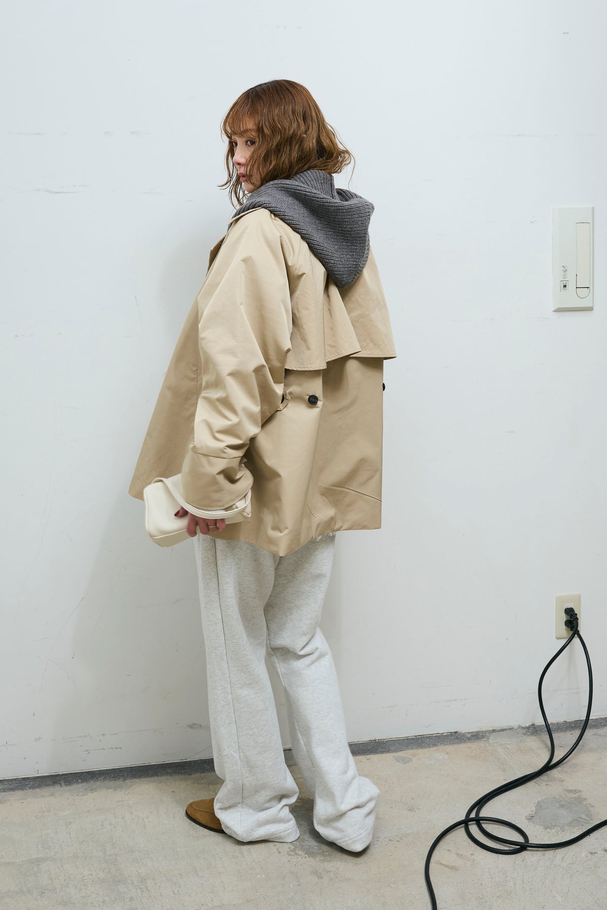 [予約/SET]ナイロンショートトレンチコート+スウェットフレアパンツ(2set)