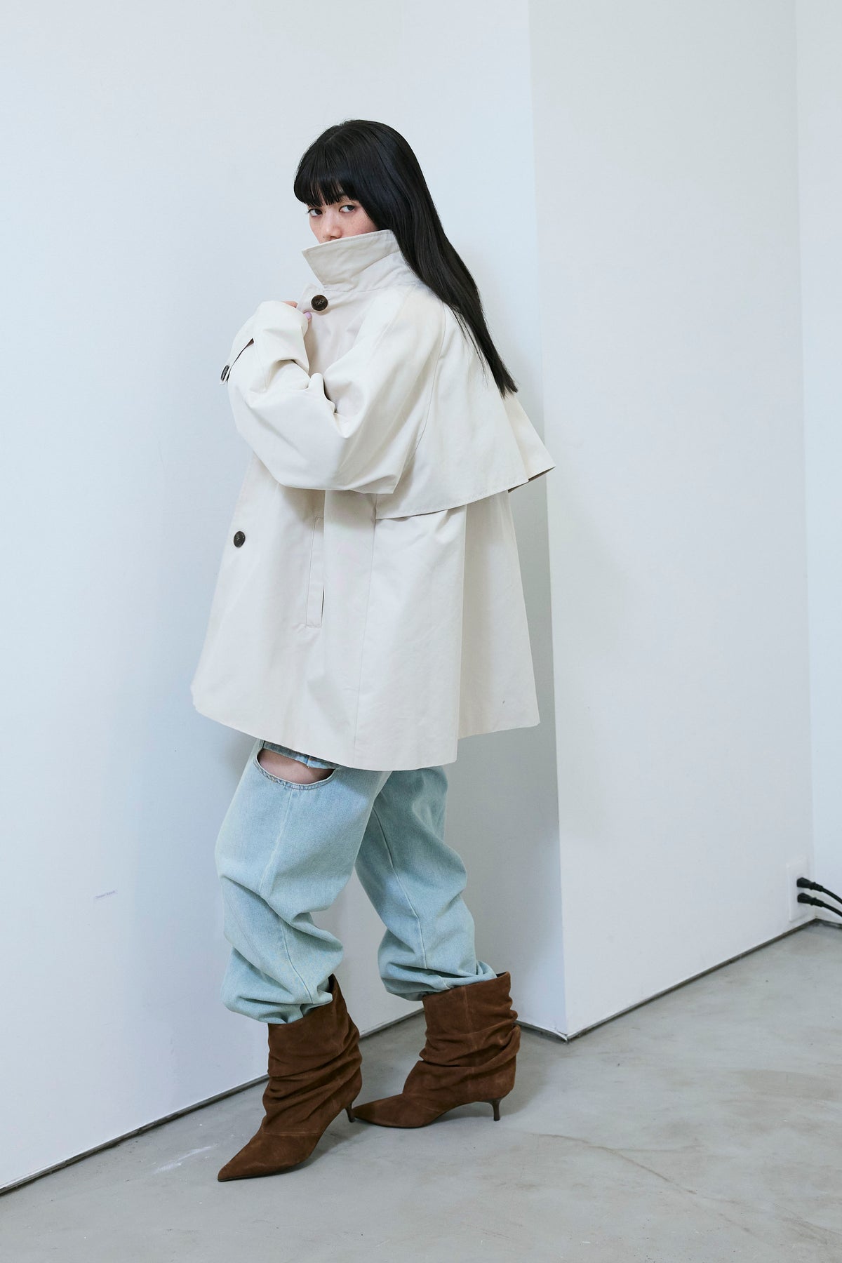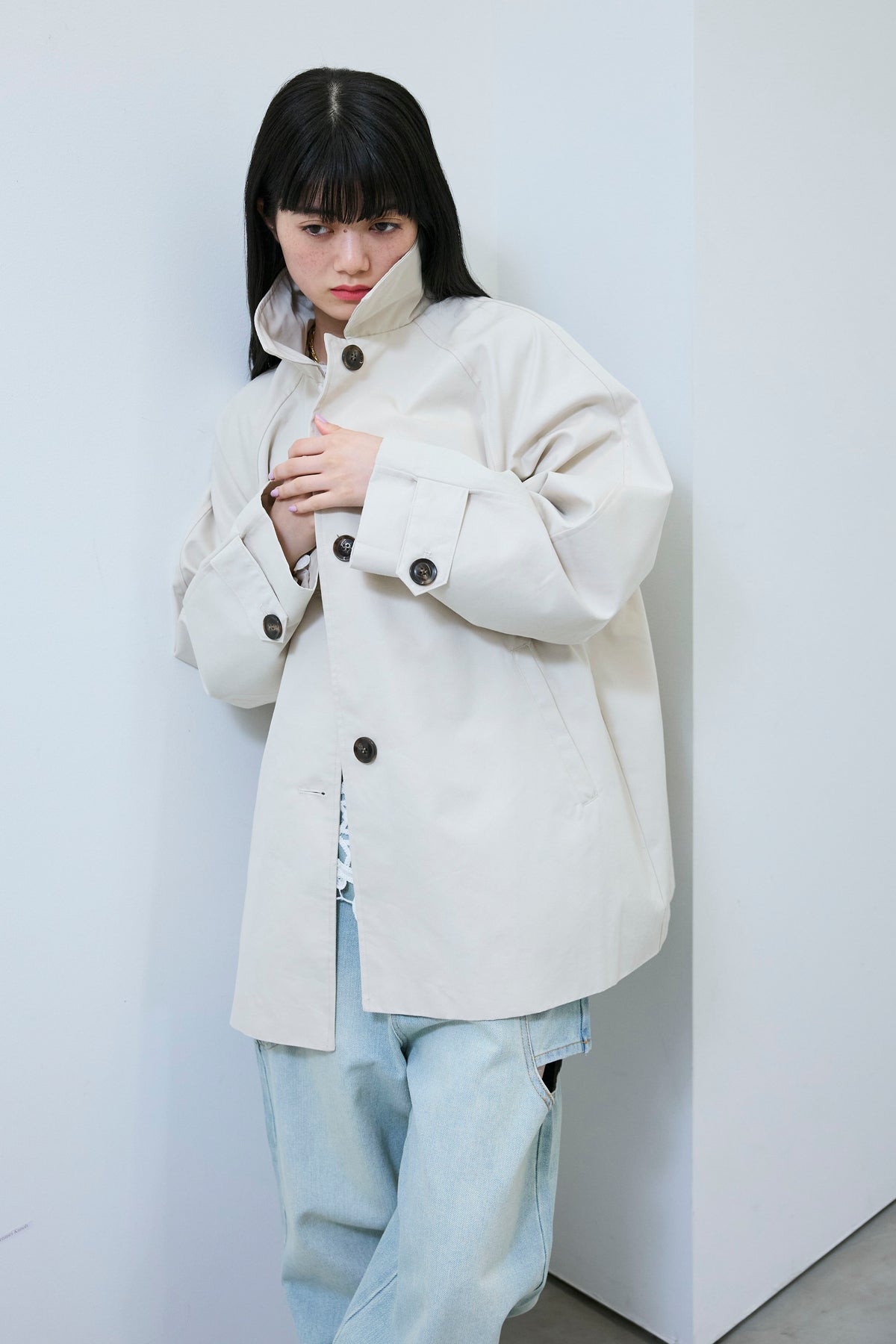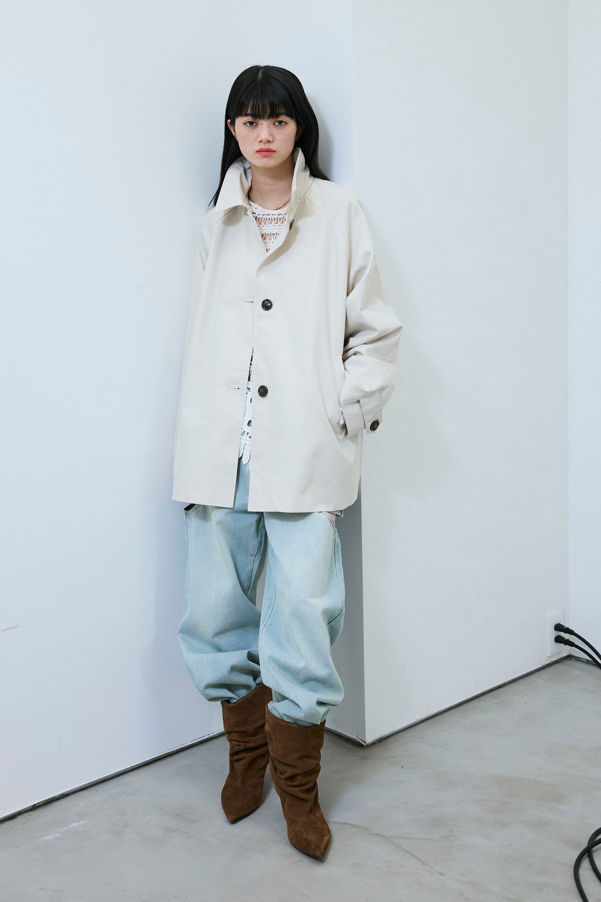 [予約/SET]TRツイルAラインショートトレンチ+スラッシュカットデニム(2set)
