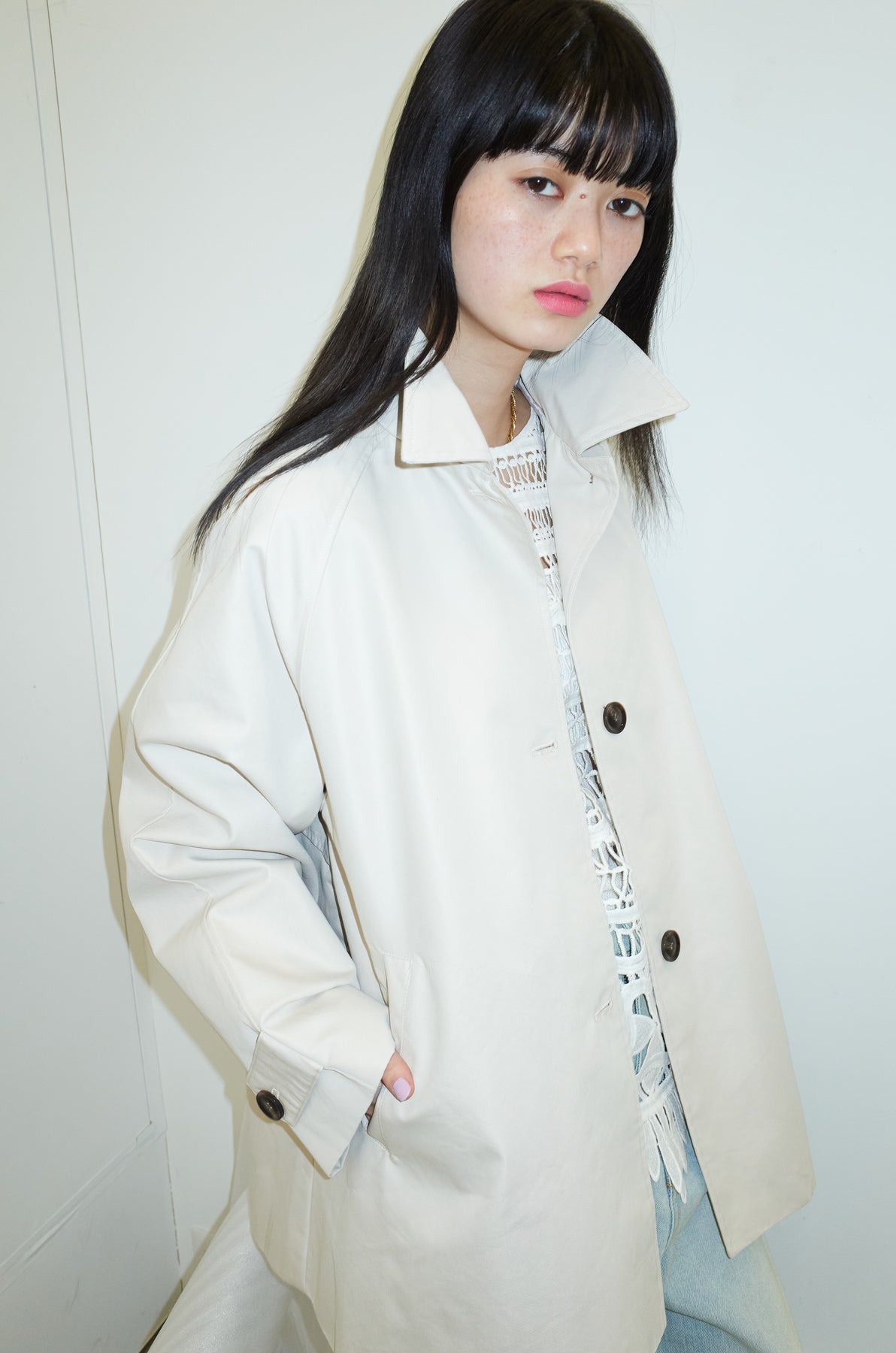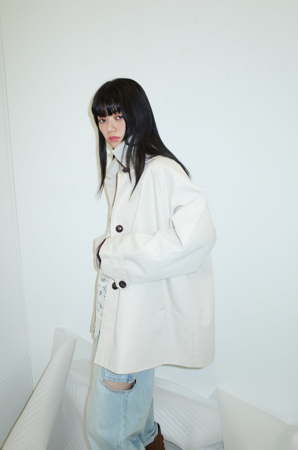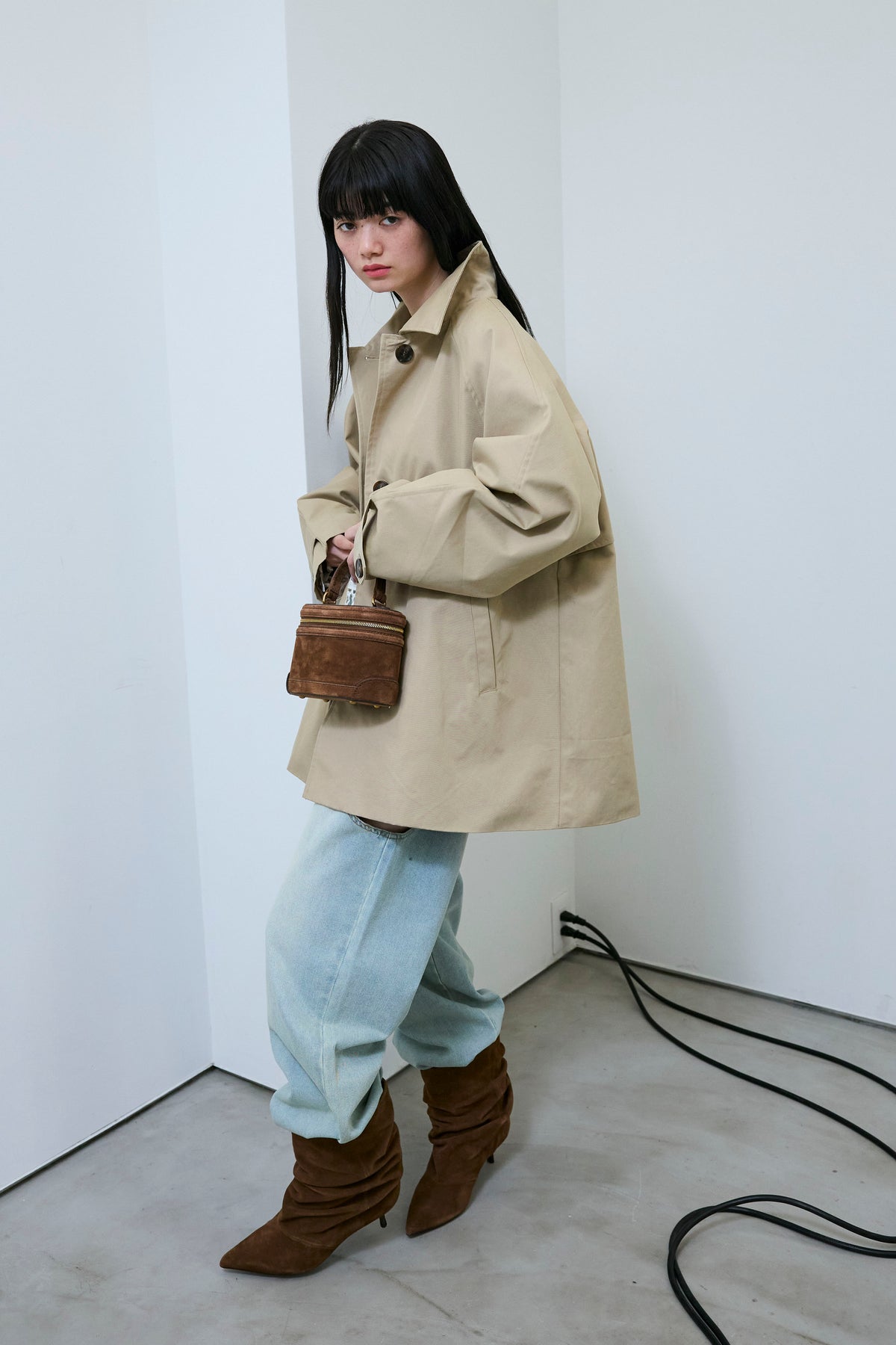 [予約/SET]TRツイルAラインショートトレンチ+スラッシュカットデニム(2set)