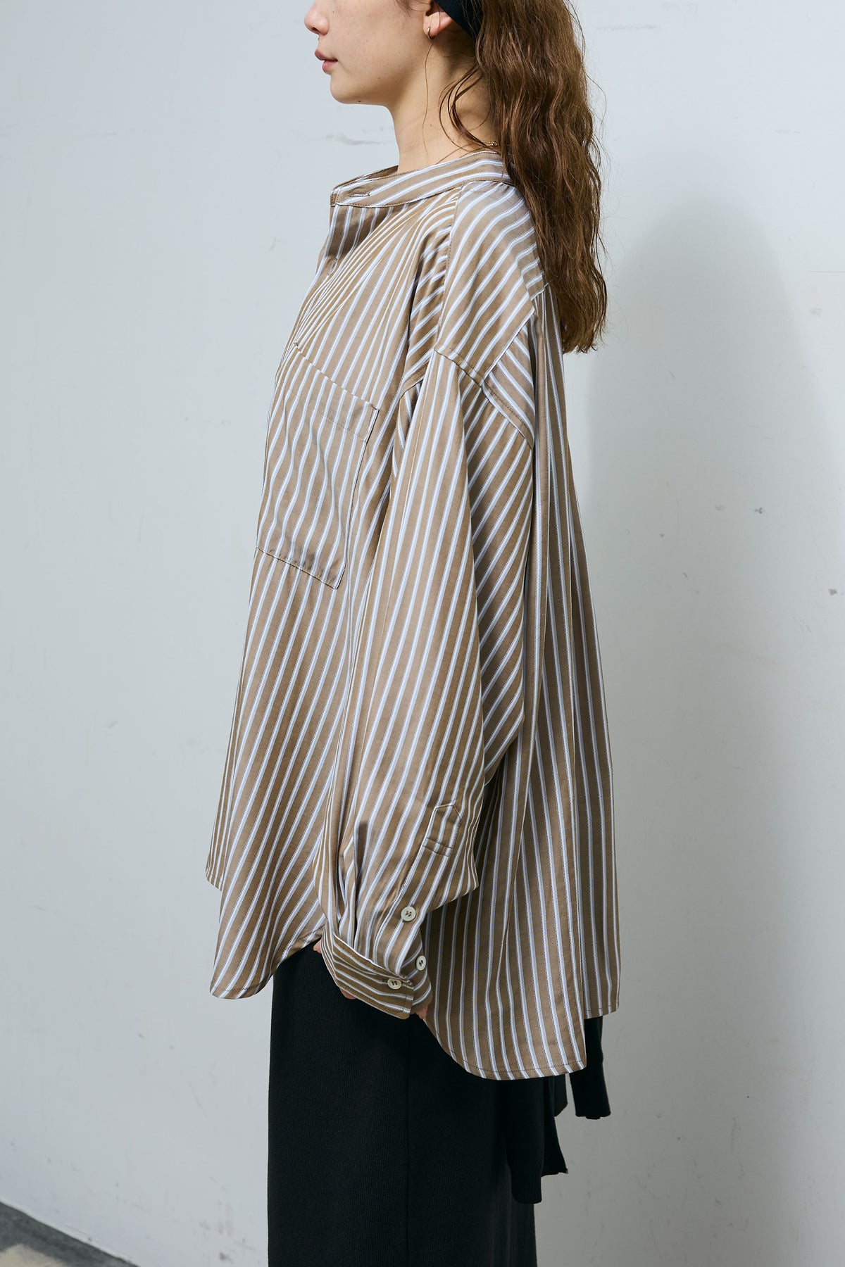 ◆ レーヨンストライプバンドカラーシャツ
