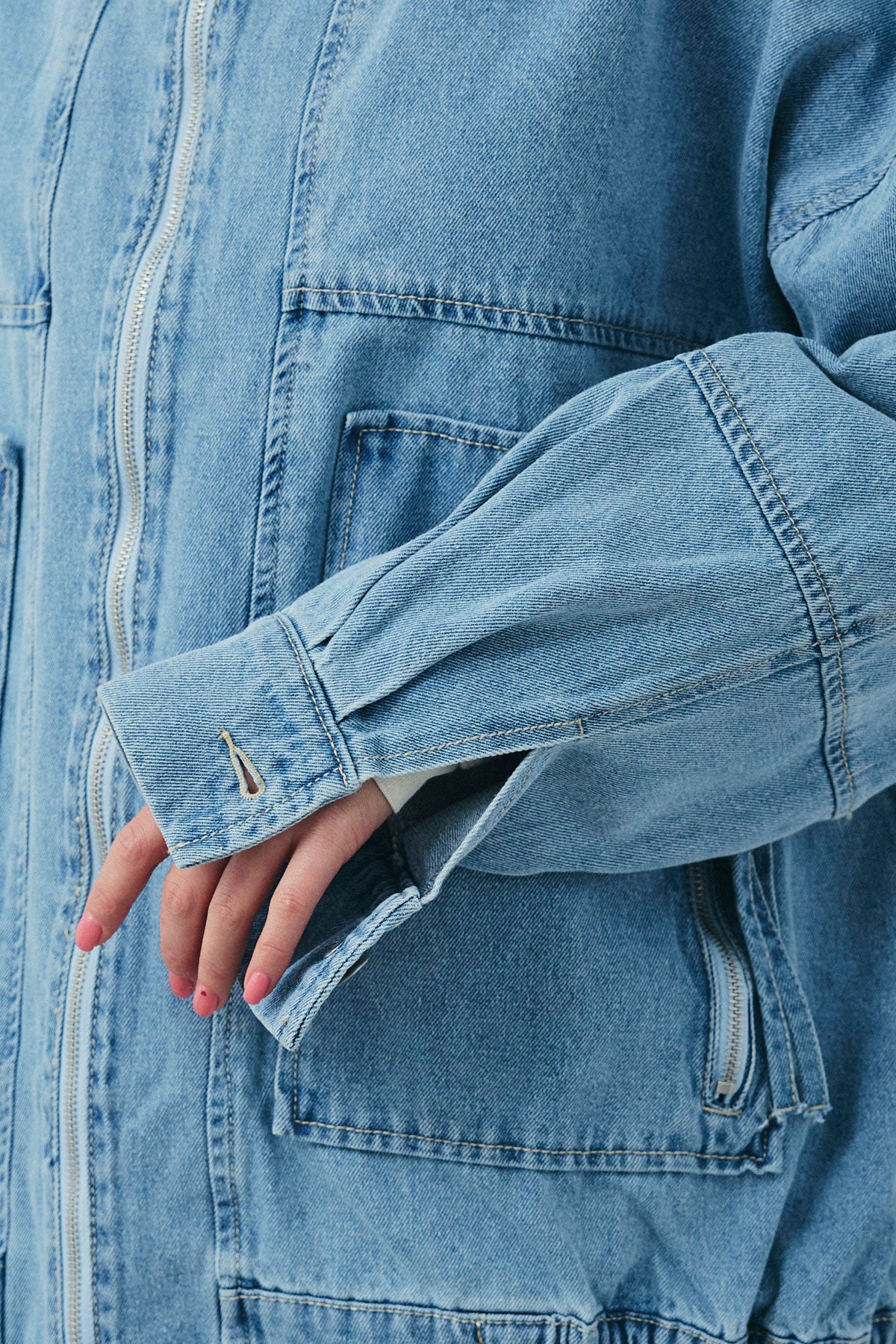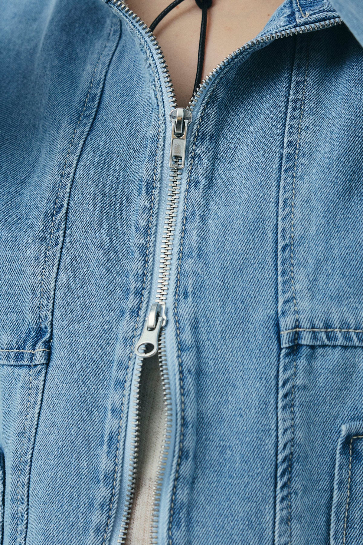 ◆ ダブルジップスタンドカラーデニムブルゾン
