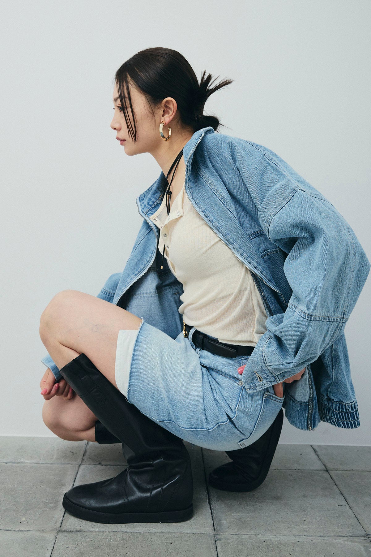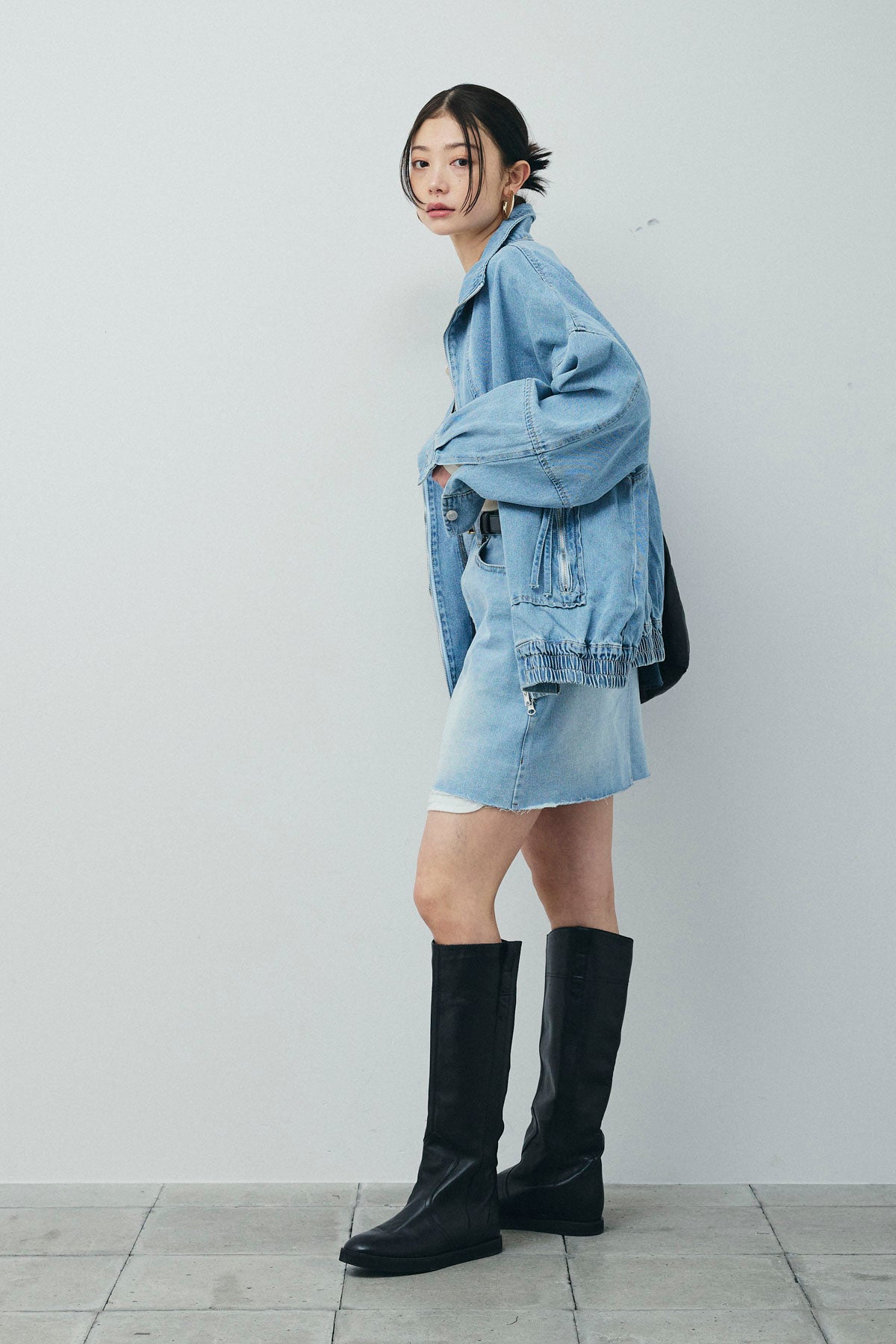 [予約]ダブルジップスタンドカラーデニムブルゾン