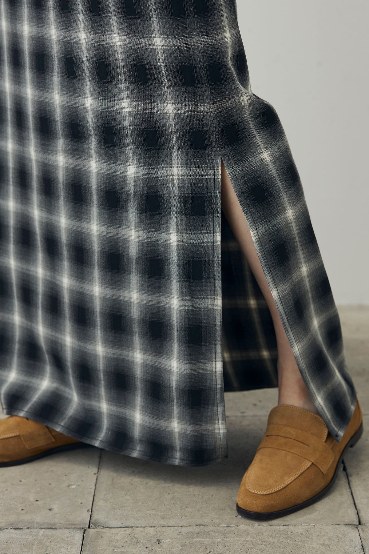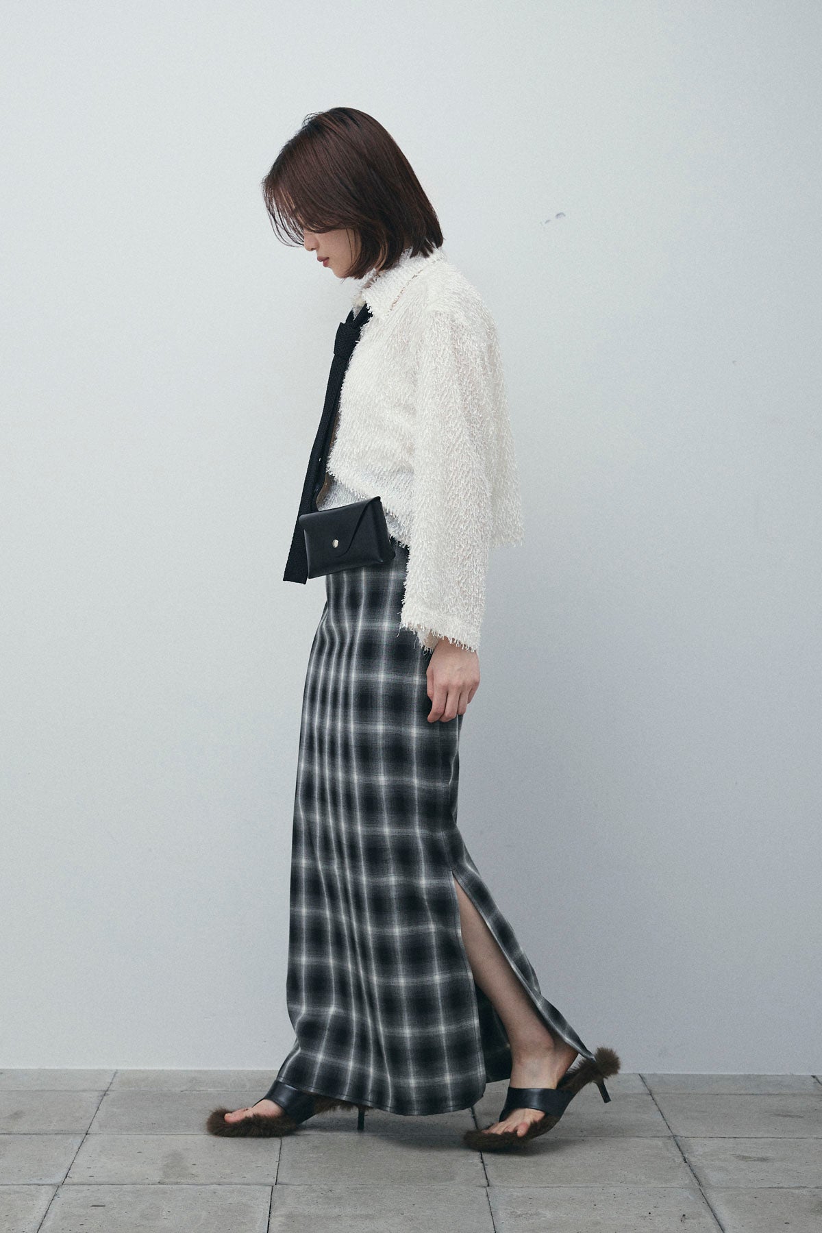 [予約/SET]フェザークロップドシャツ+チェックストレートスカート(2set)
