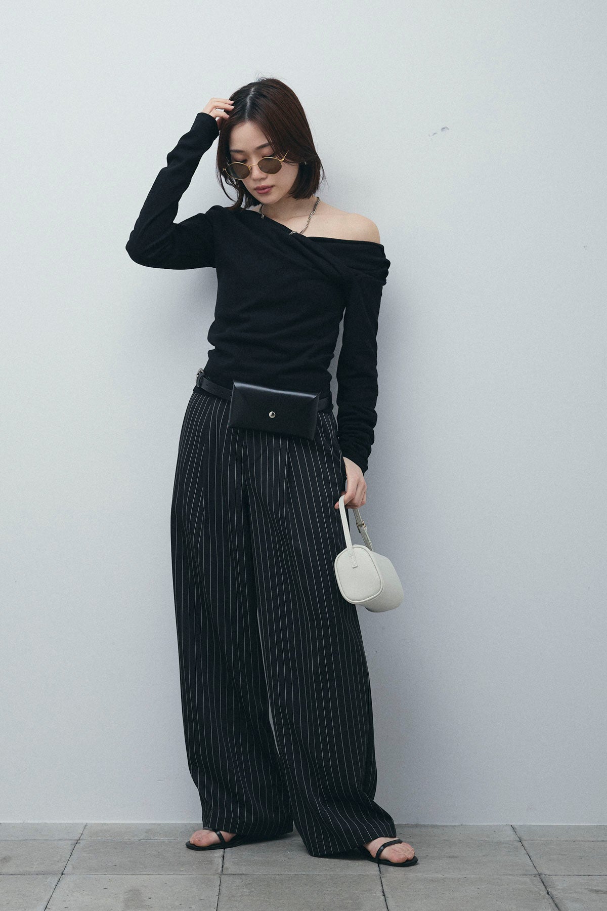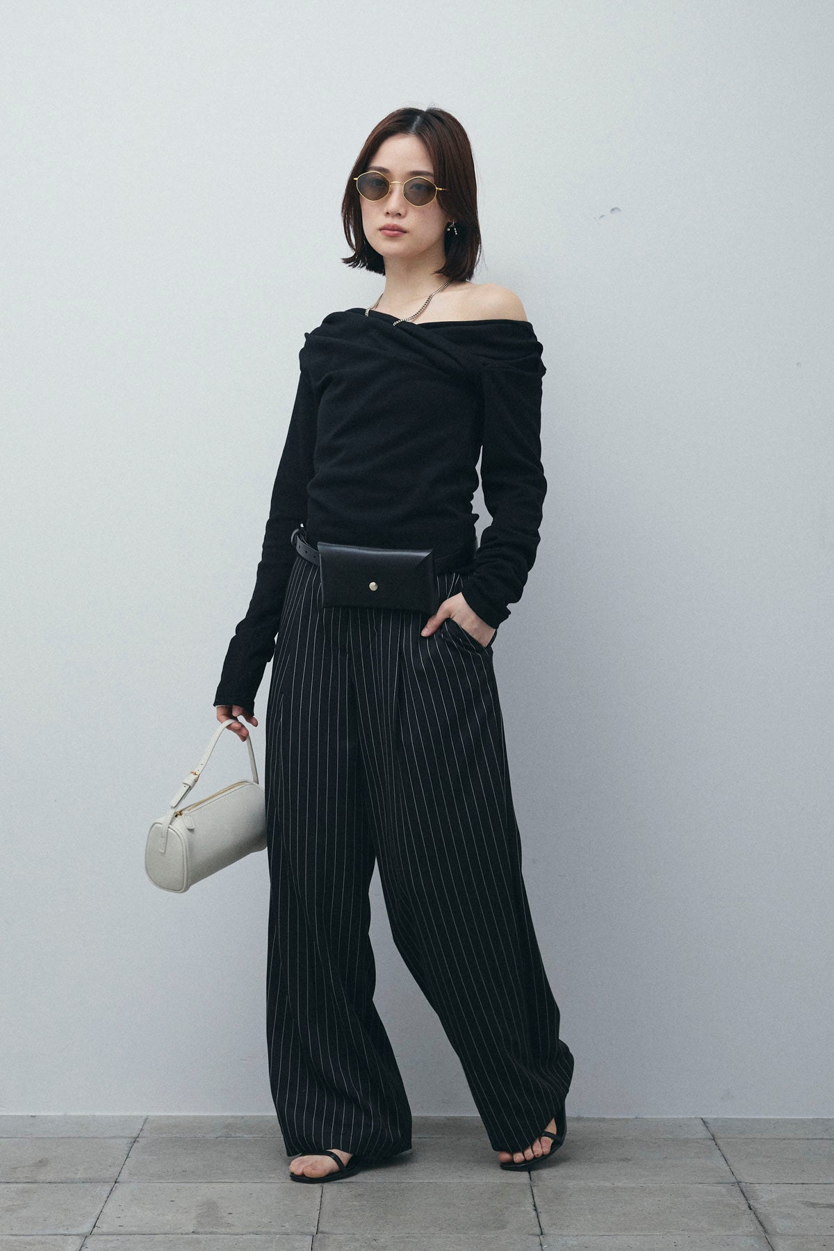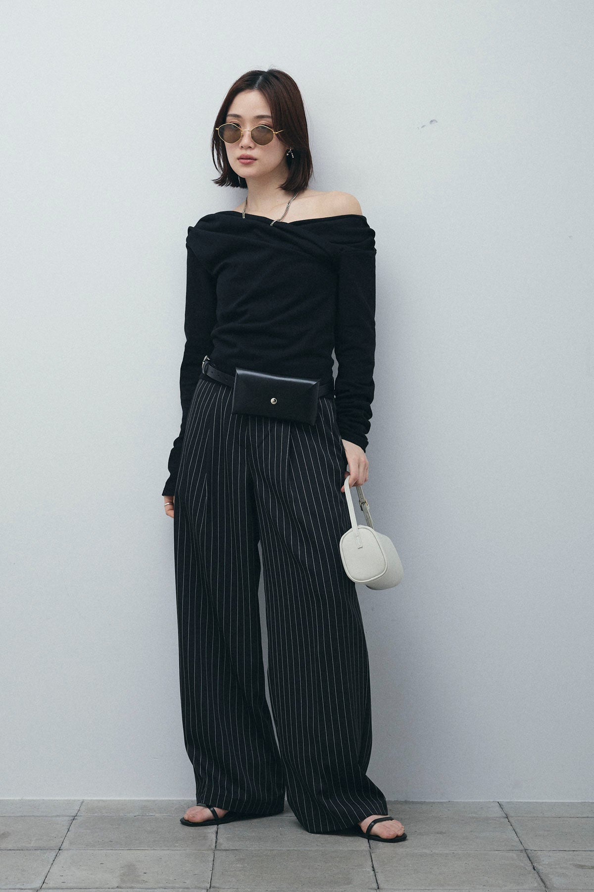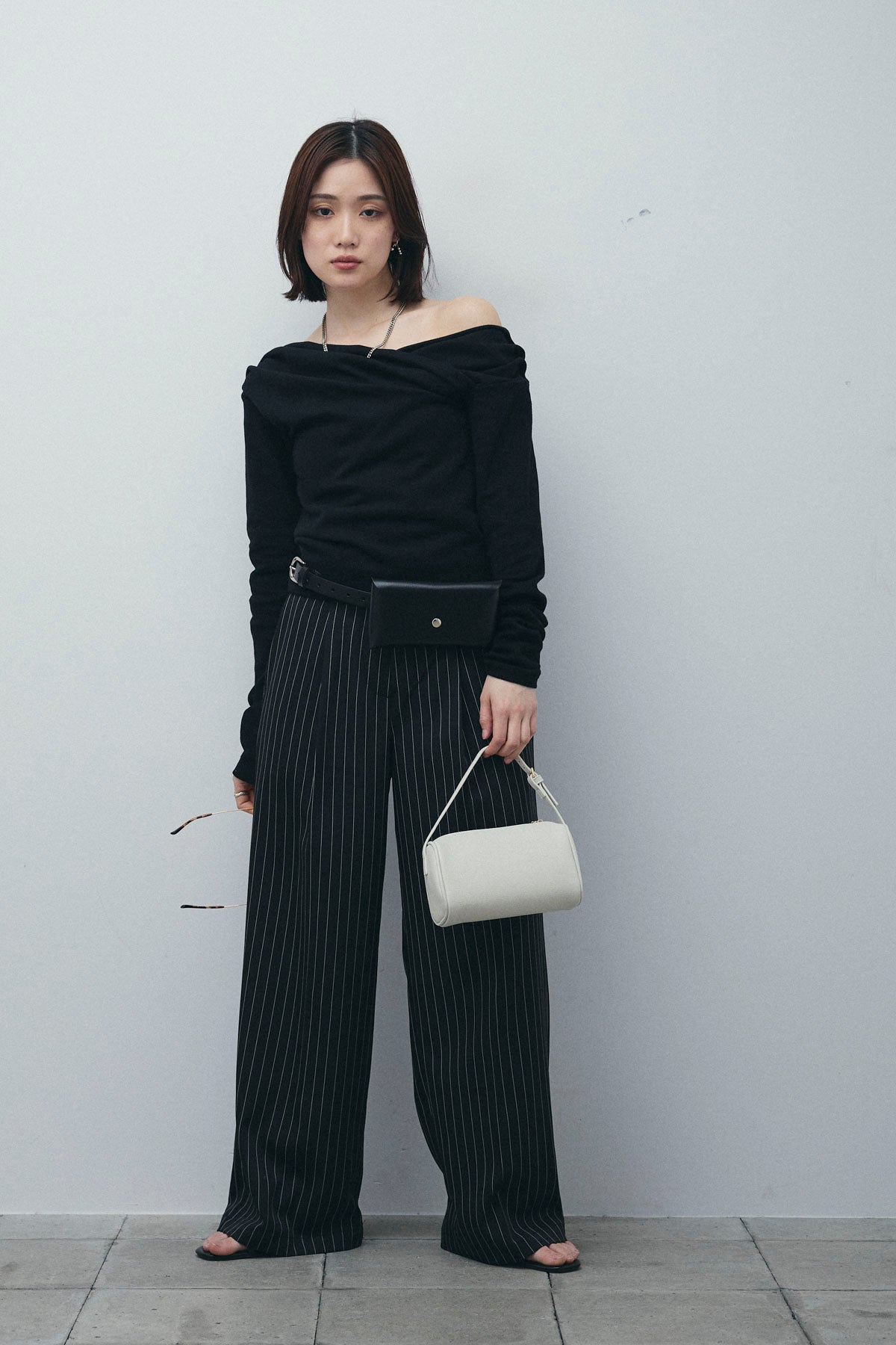 [予約/SET]オフショルプルオーバー+ダブルウエストピンストライプパンツ(2set)