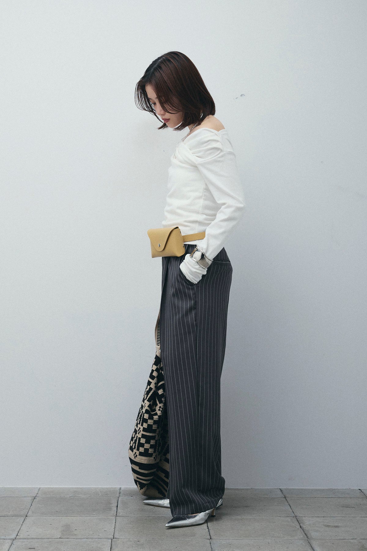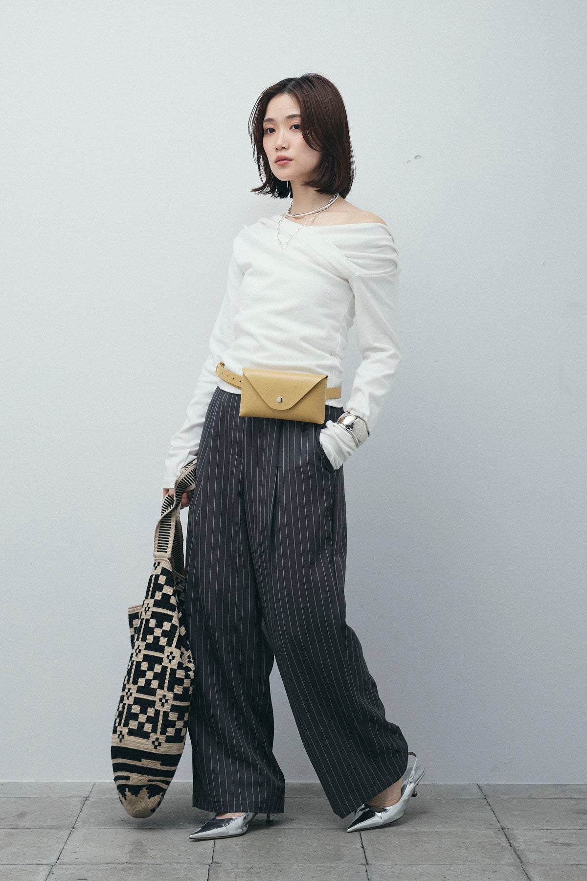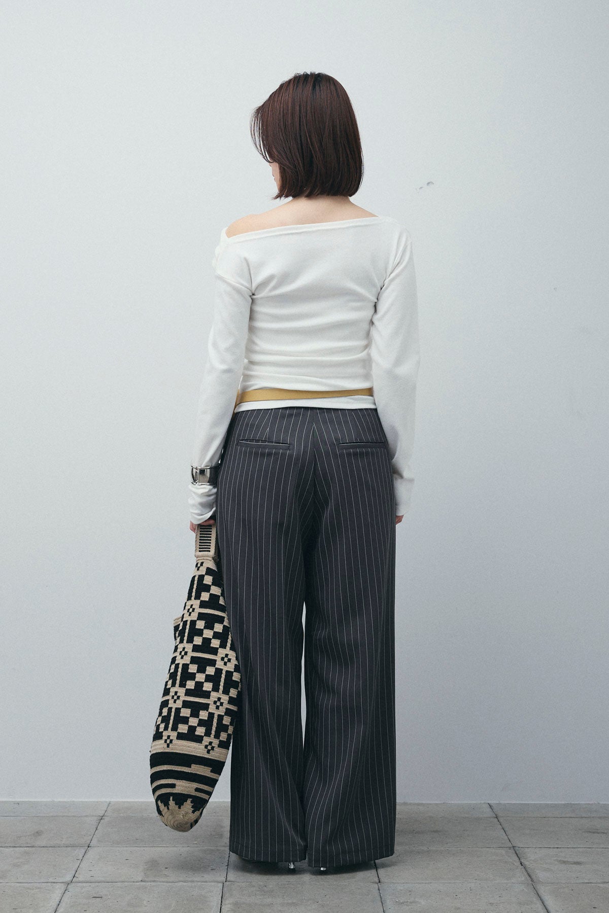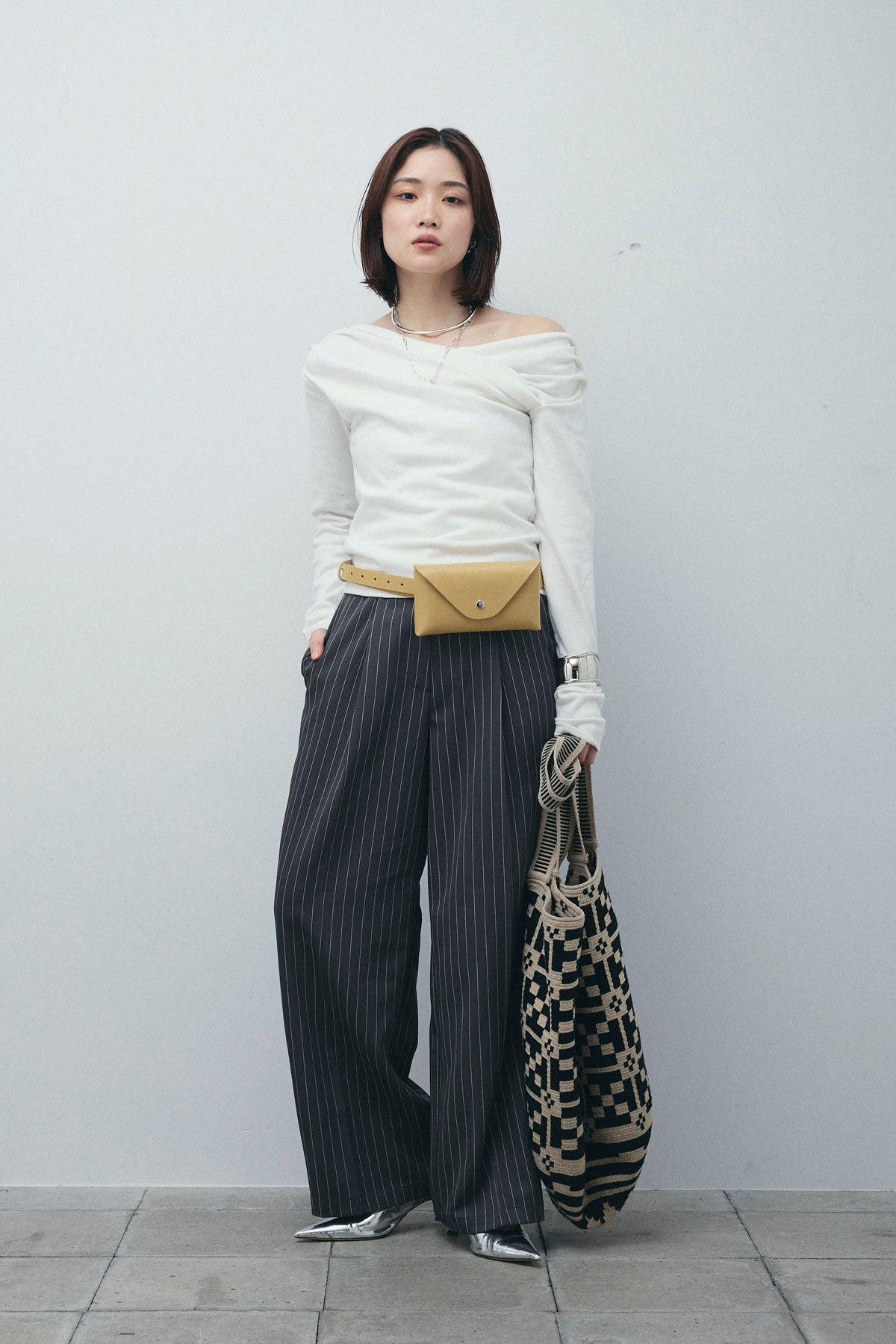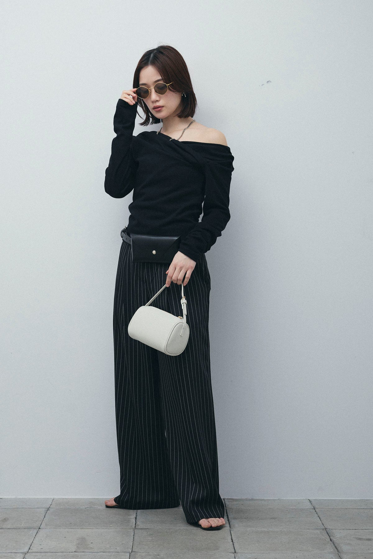 [予約/SET]オフショルプルオーバー+ダブルウエストピンストライプパンツ(2set)