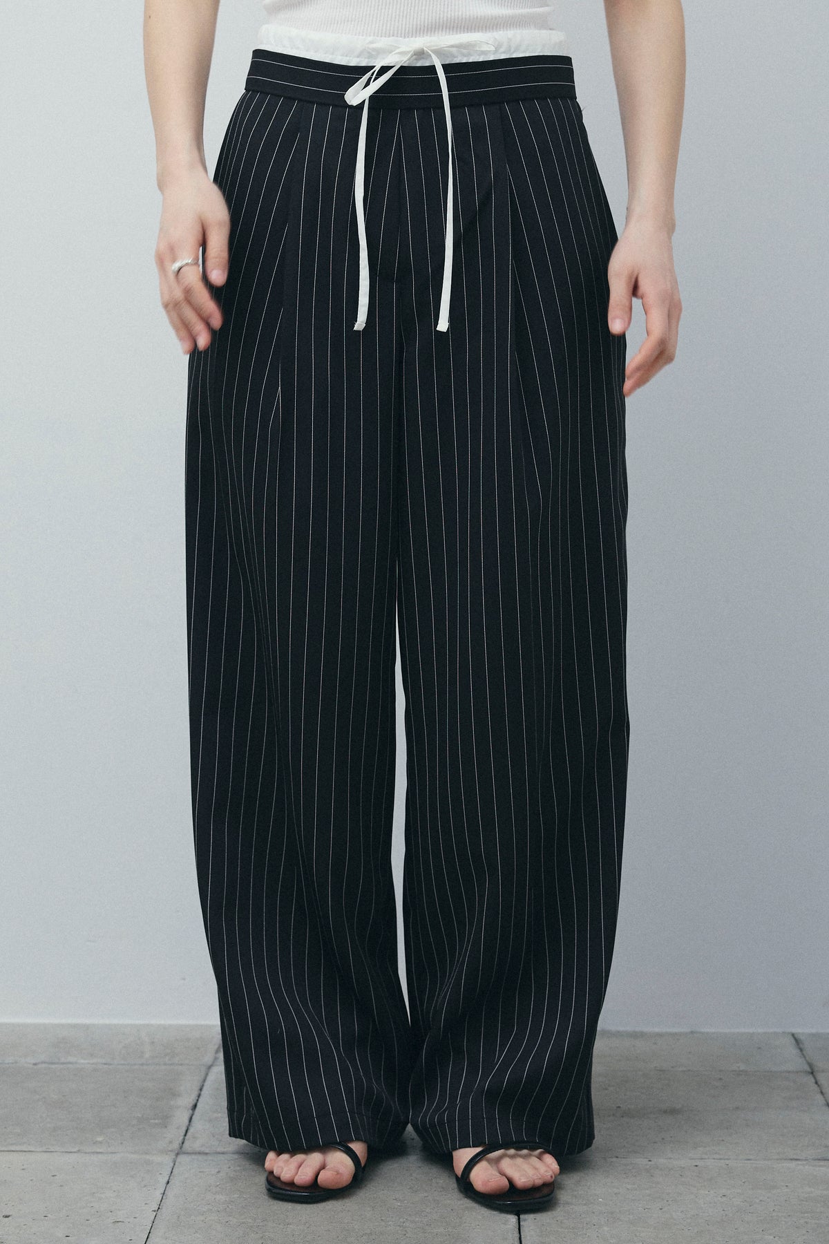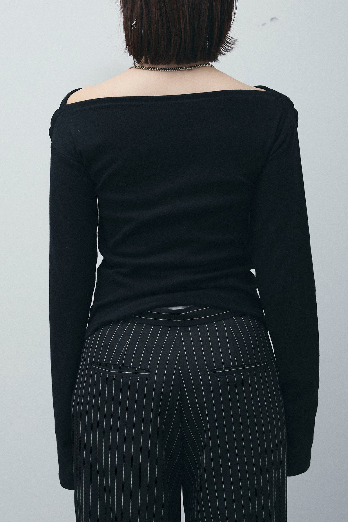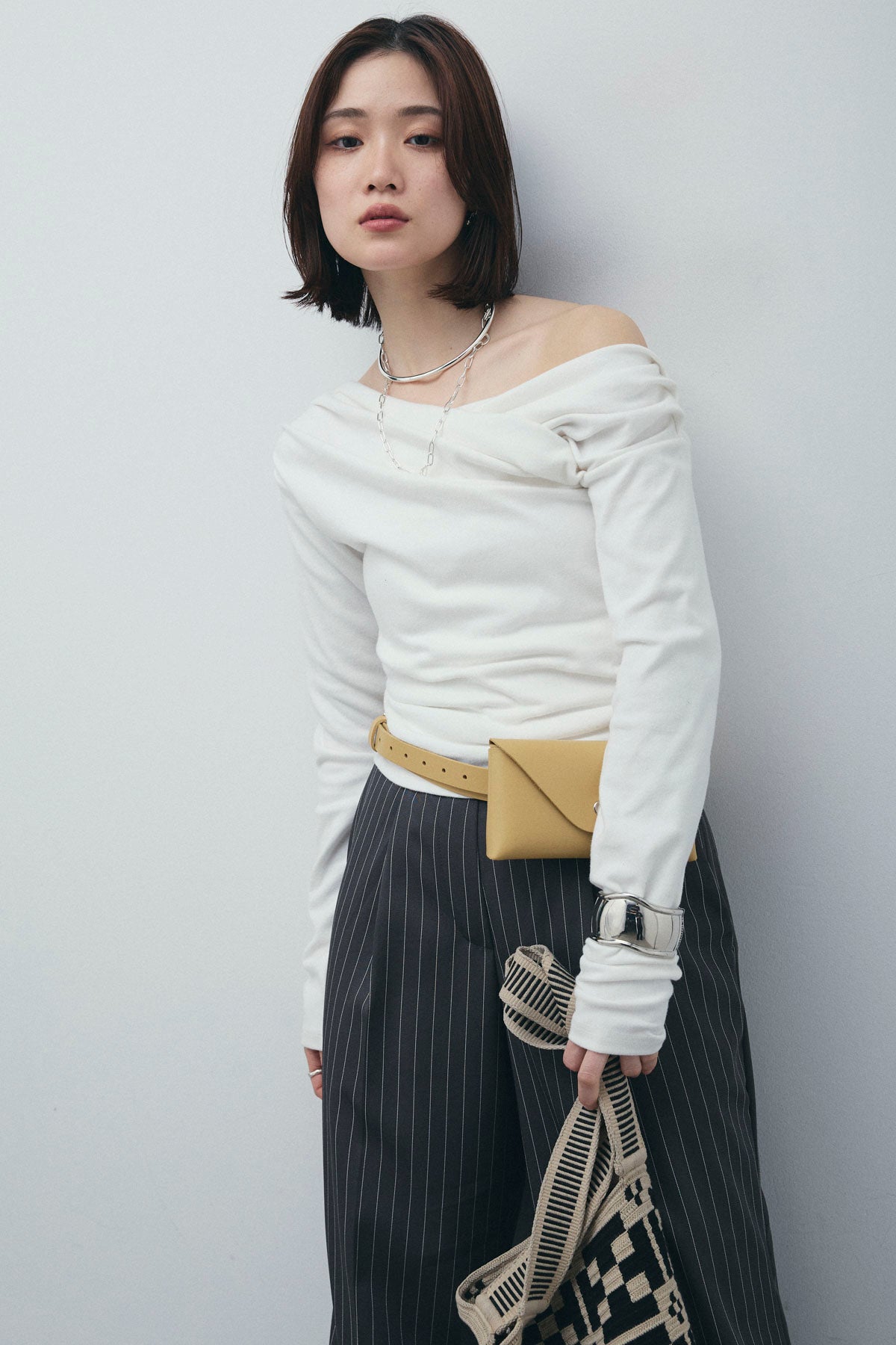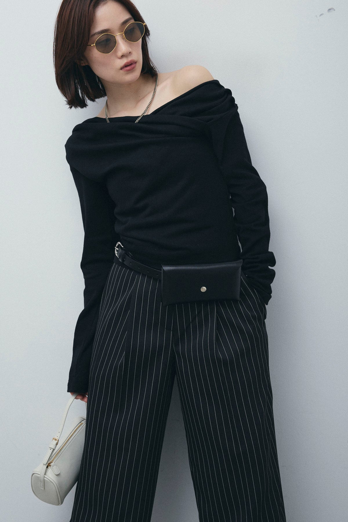 [予約/SET]オフショルプルオーバー+ダブルウエストピンストライプパンツ(2set)