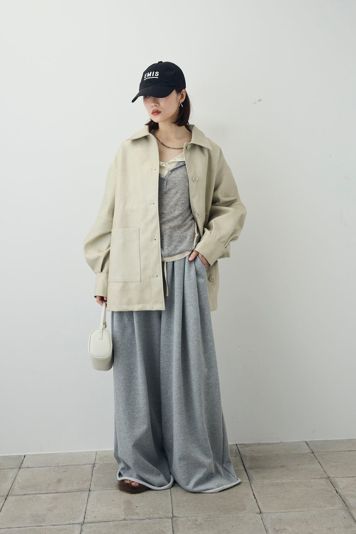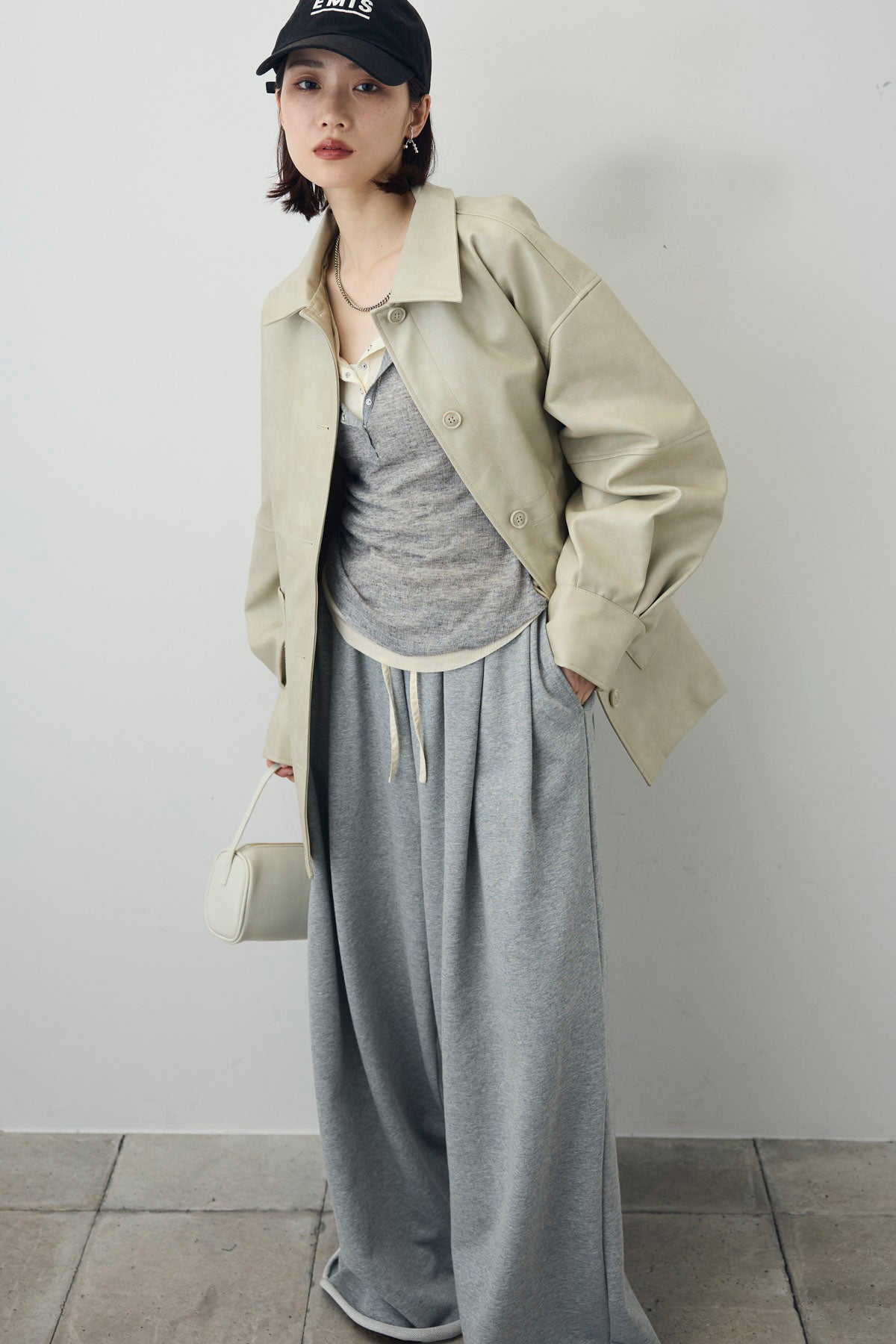 [予約/SET]ダブルウエストスウェットパンツ+フェイクレザー オーバーサイズ ダブルジップ ブルゾン(2set)