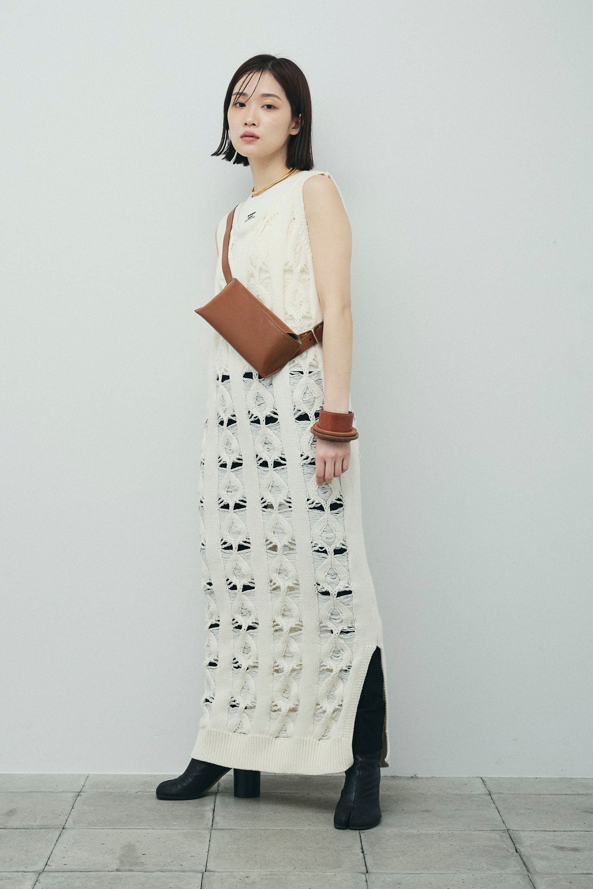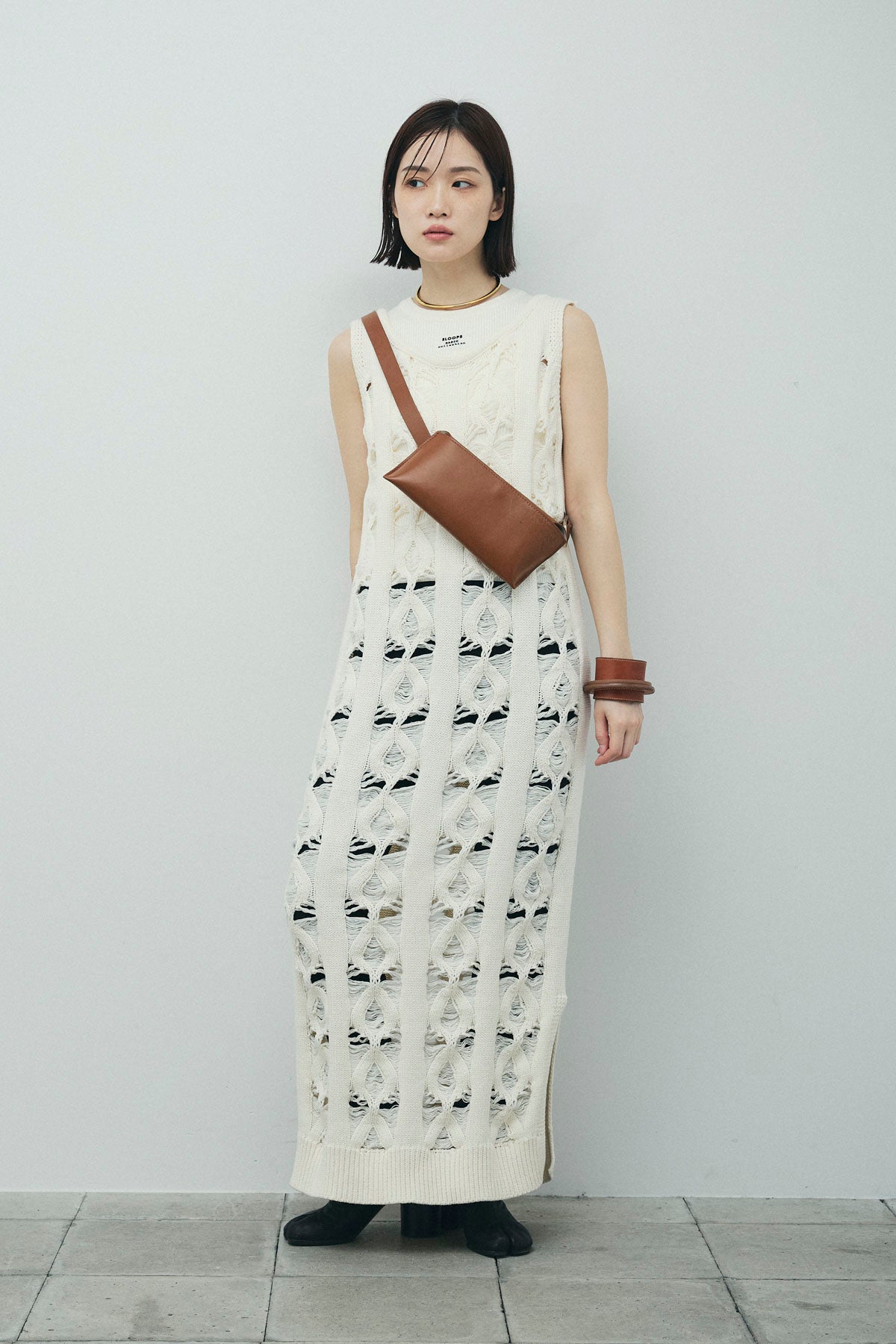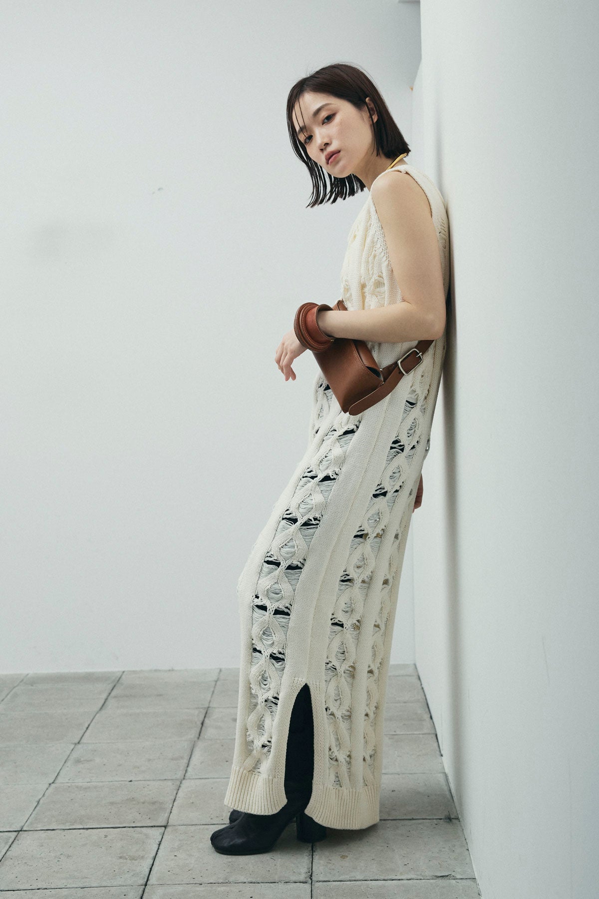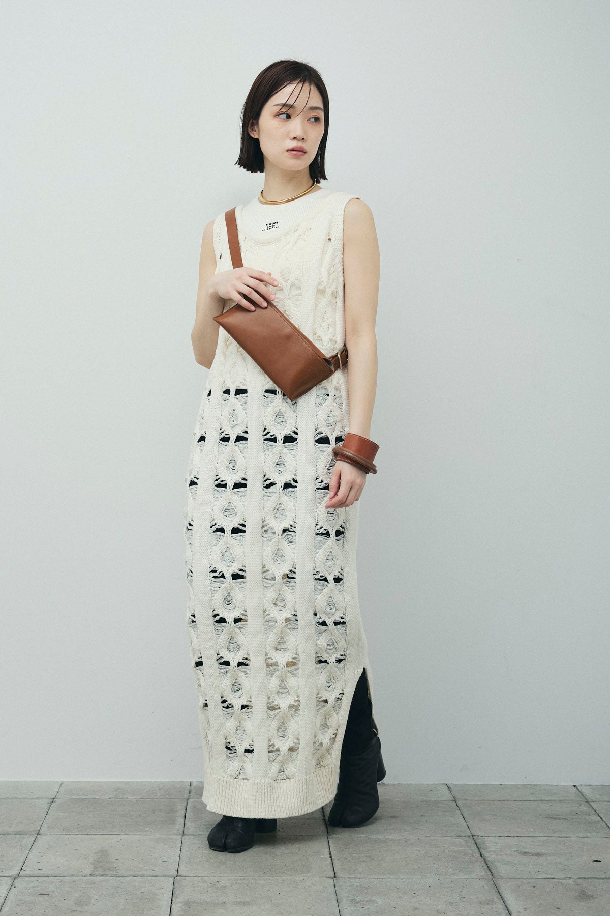 [予約/SET]ミックス編みニットワンピース+フロントロゴ入りリブタンクトップ+ハイウエストスキニーレギンス(3set)