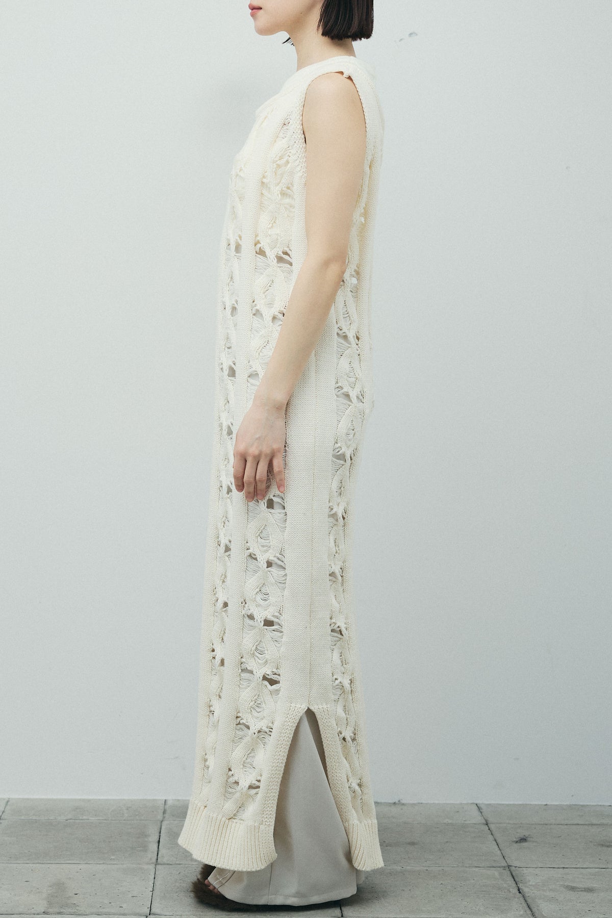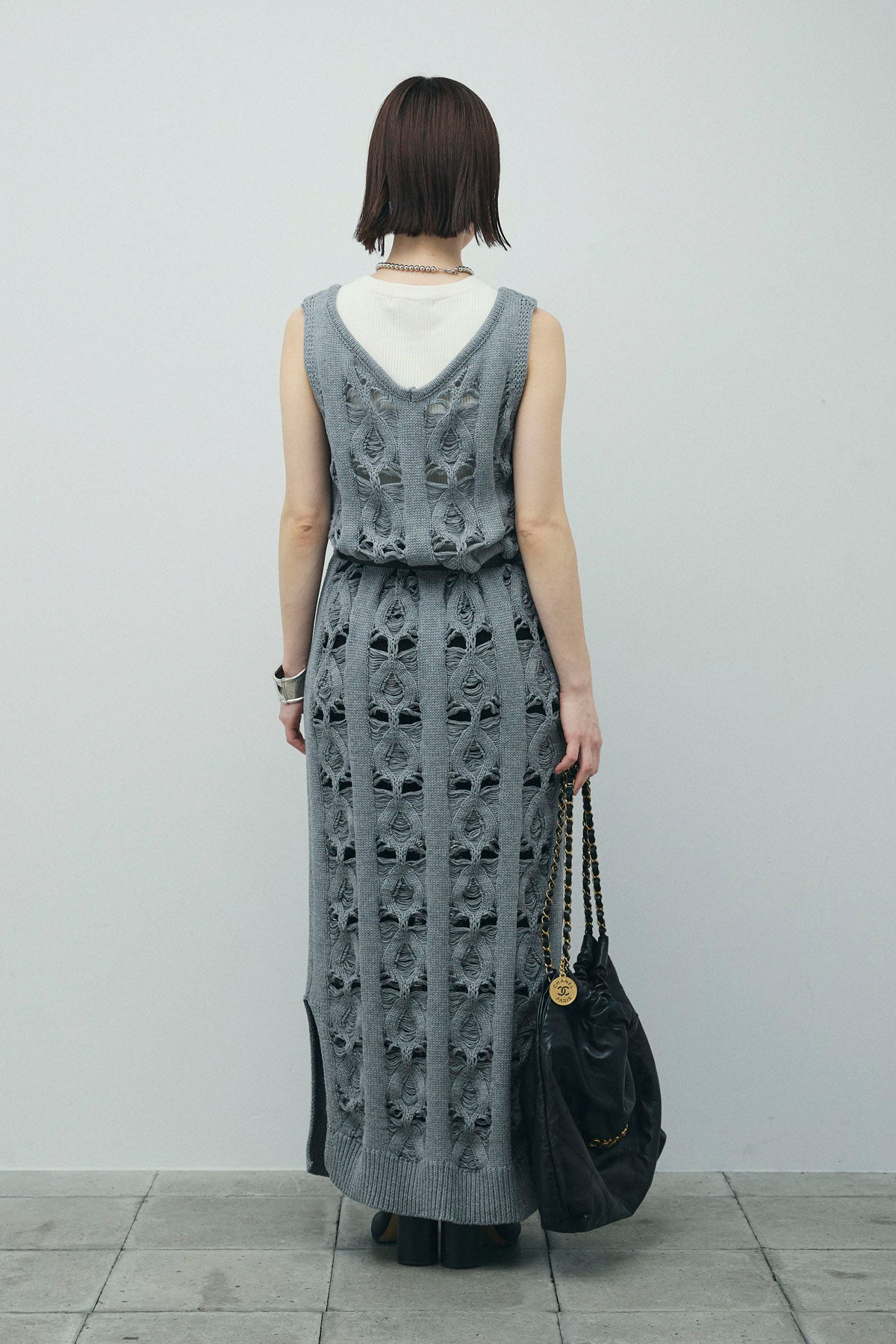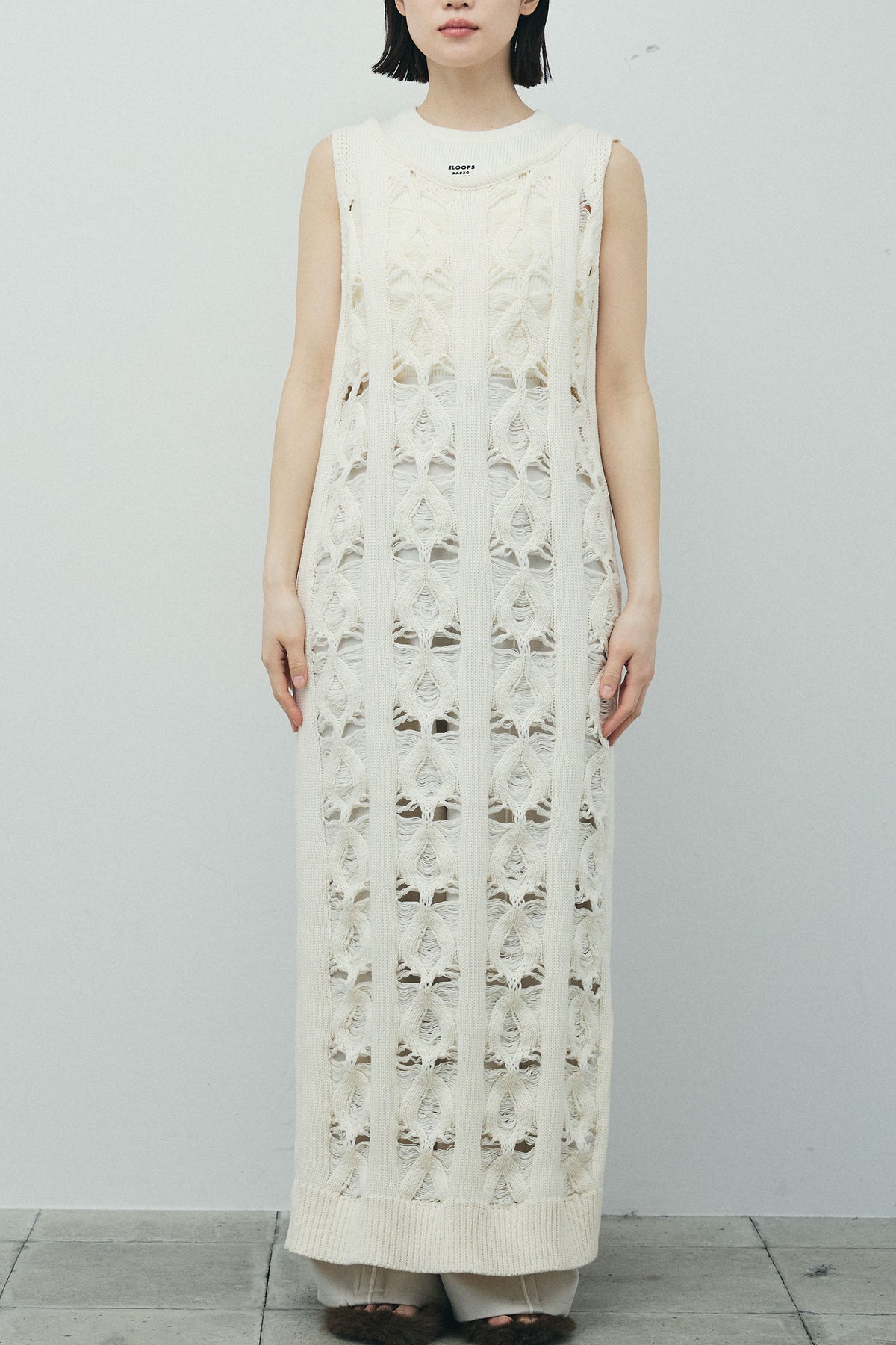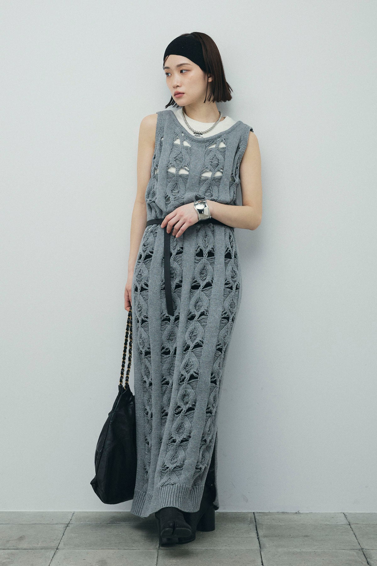 [予約/SET]ミックス編みニットワンピース+フロントロゴ入りリブタンクトップ+ハイウエストスキニーレギンス(3set)