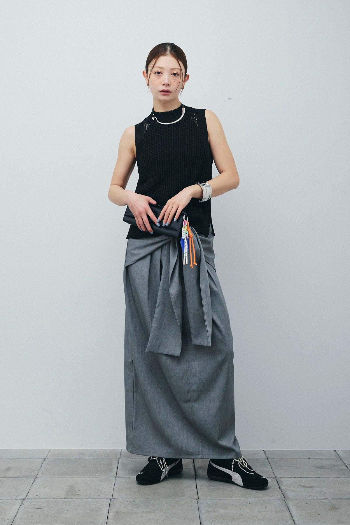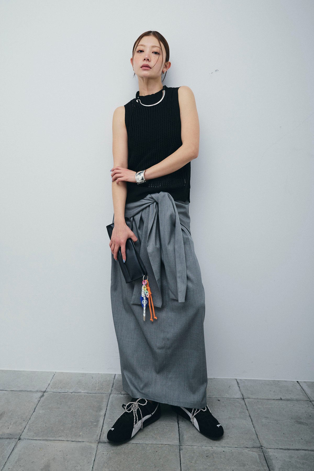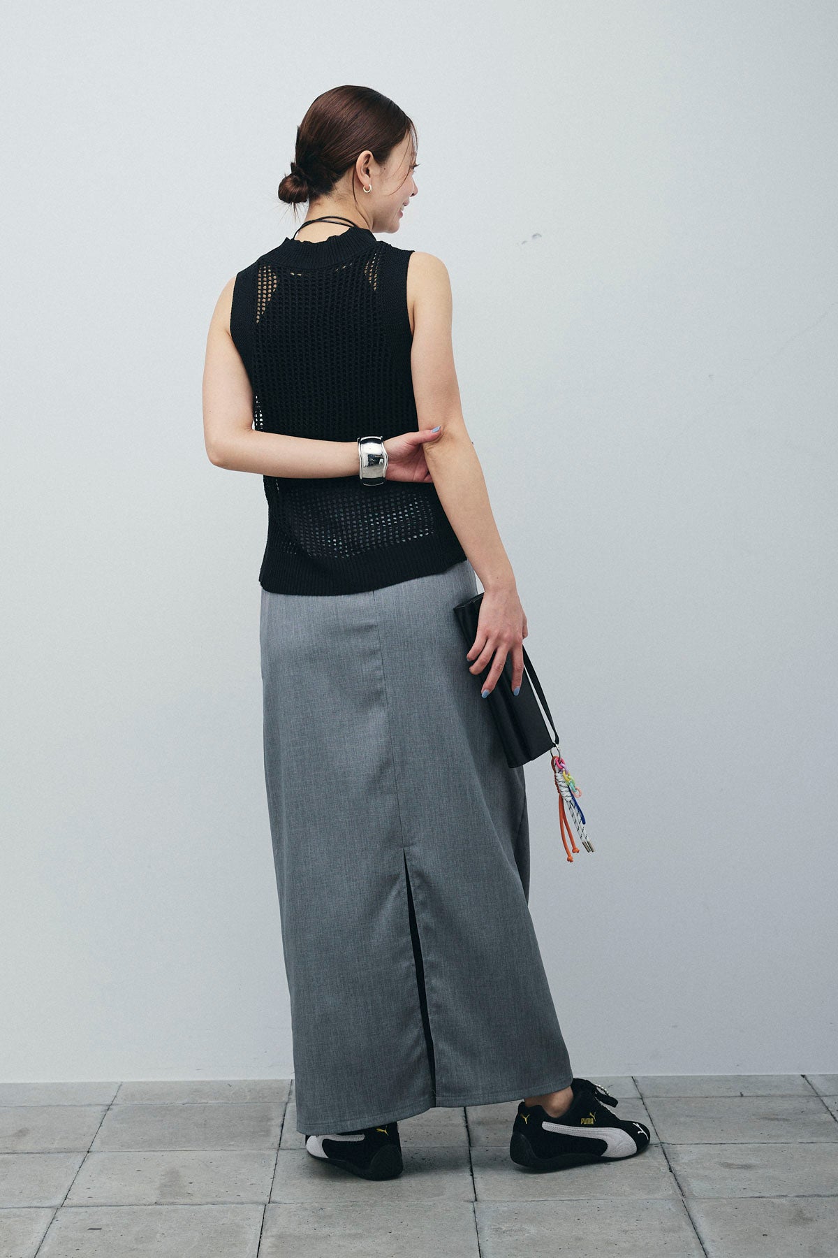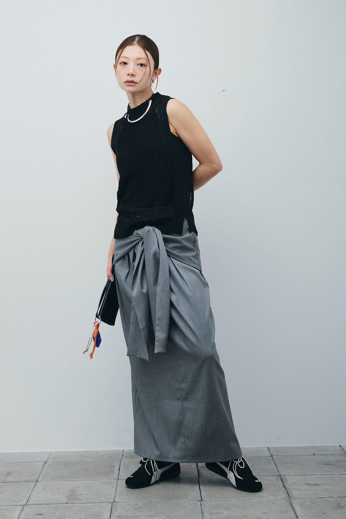 [予約/SET]フィッシュネットノースリーブニット+フロントクロスタイトスカート(2set)