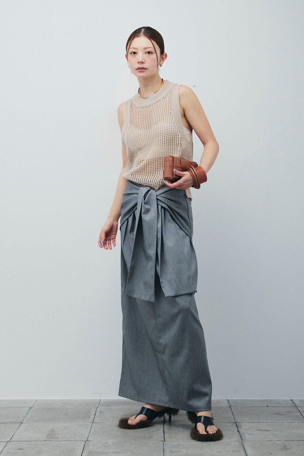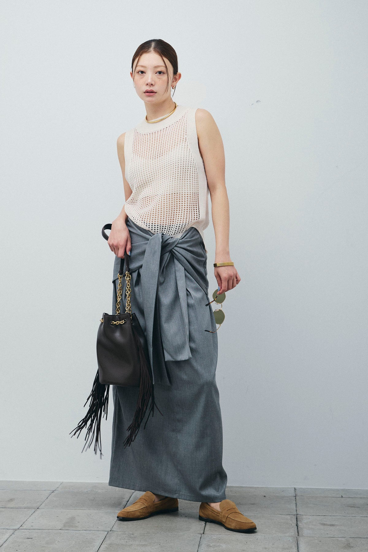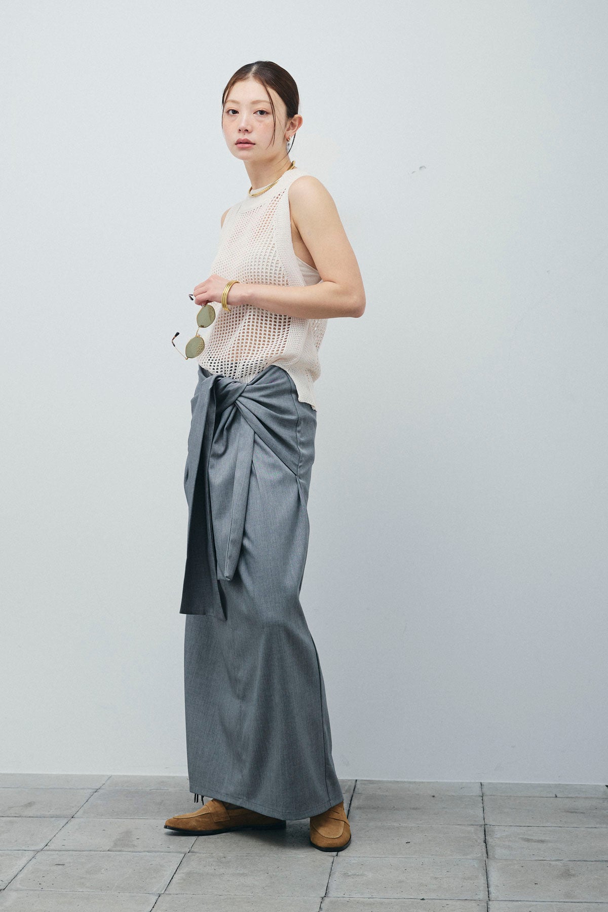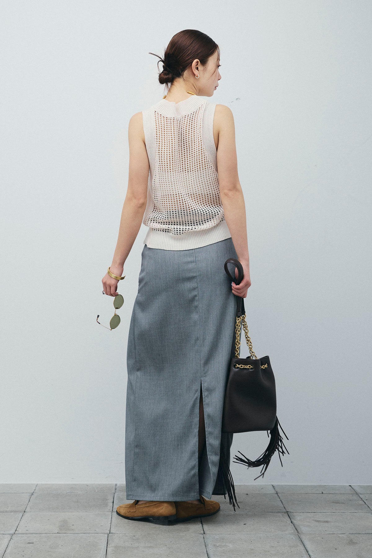 [予約/SET]フィッシュネットノースリーブニット+フロントクロスタイトスカート(2set)