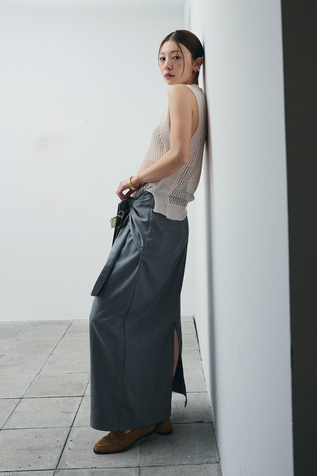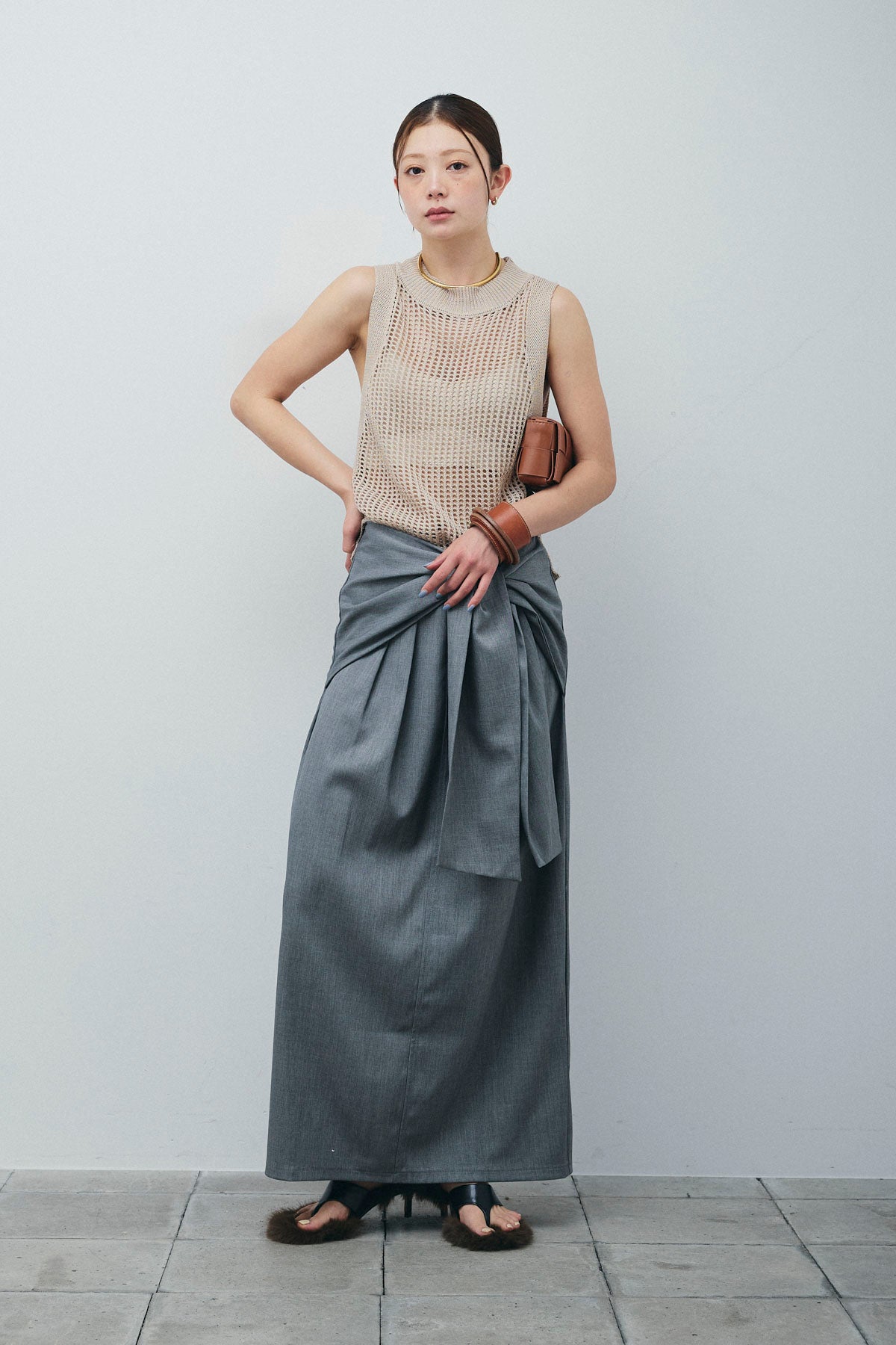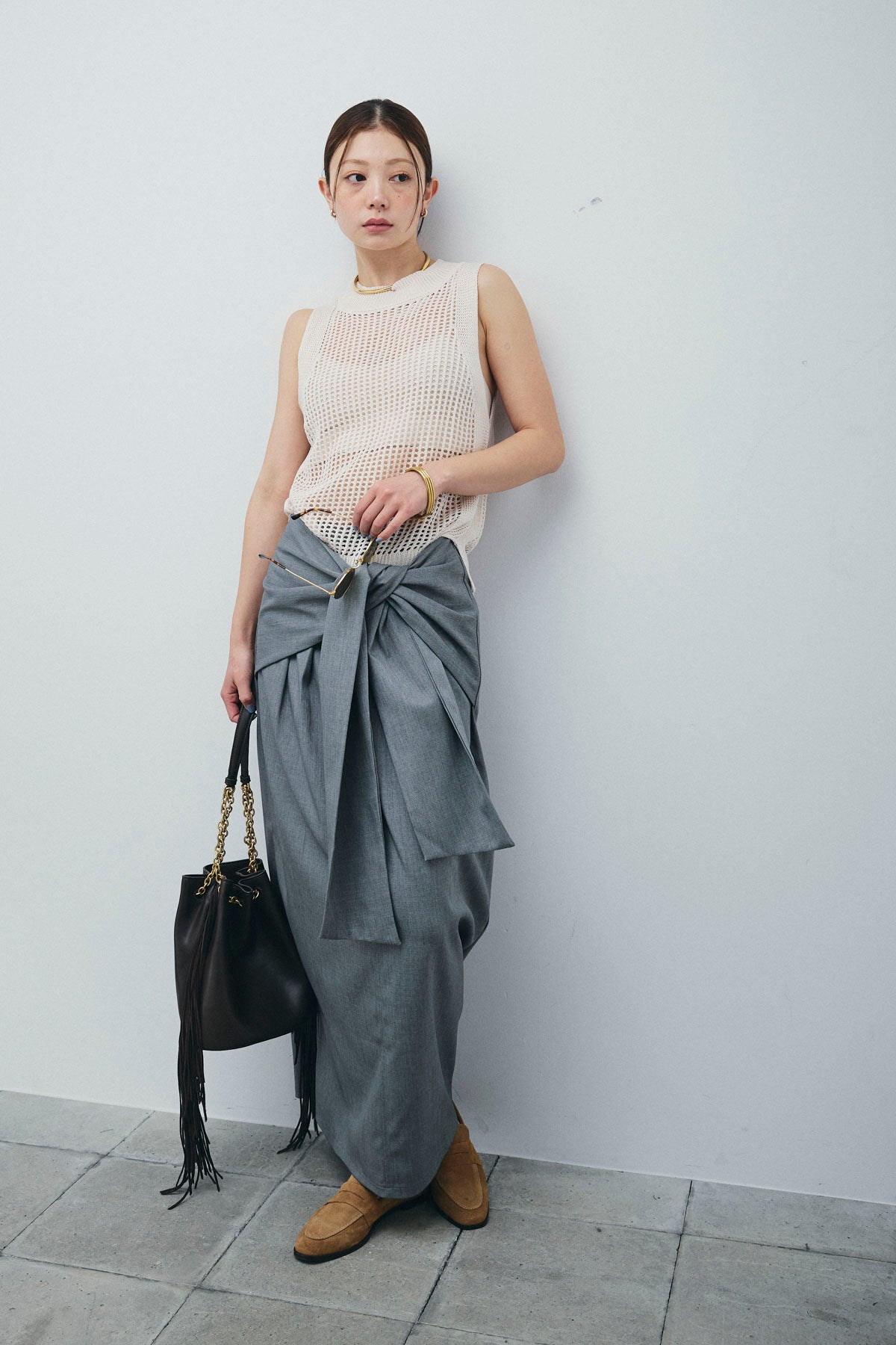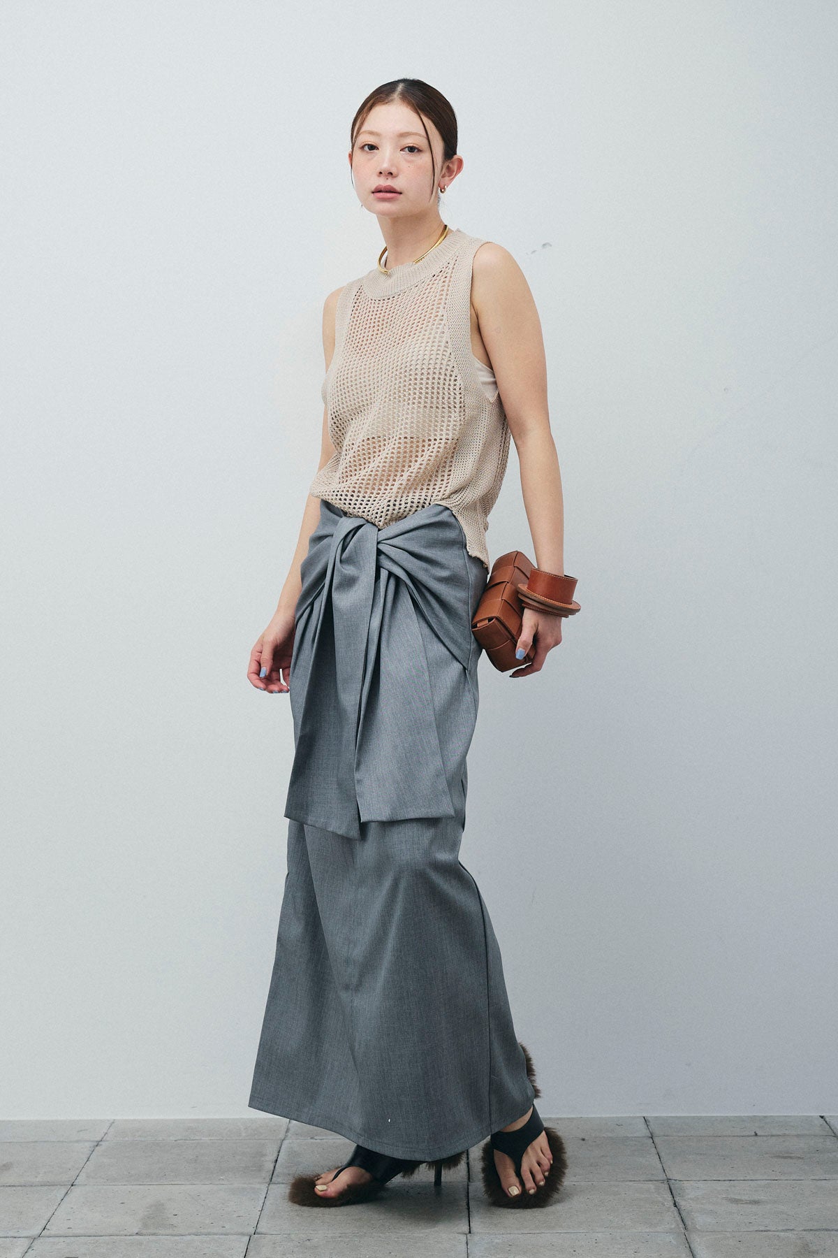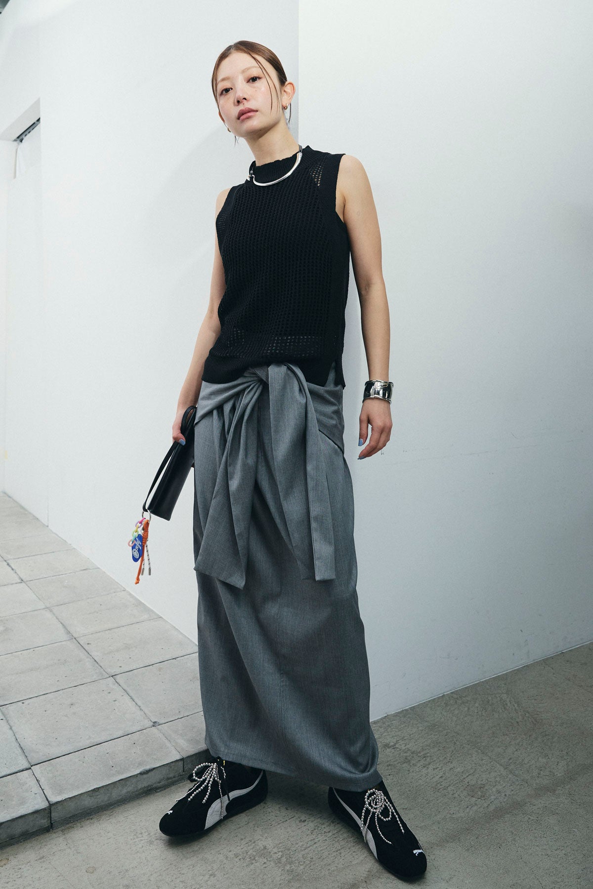 [予約/SET]フィッシュネットノースリーブニット+フロントクロスタイトスカート(2set)