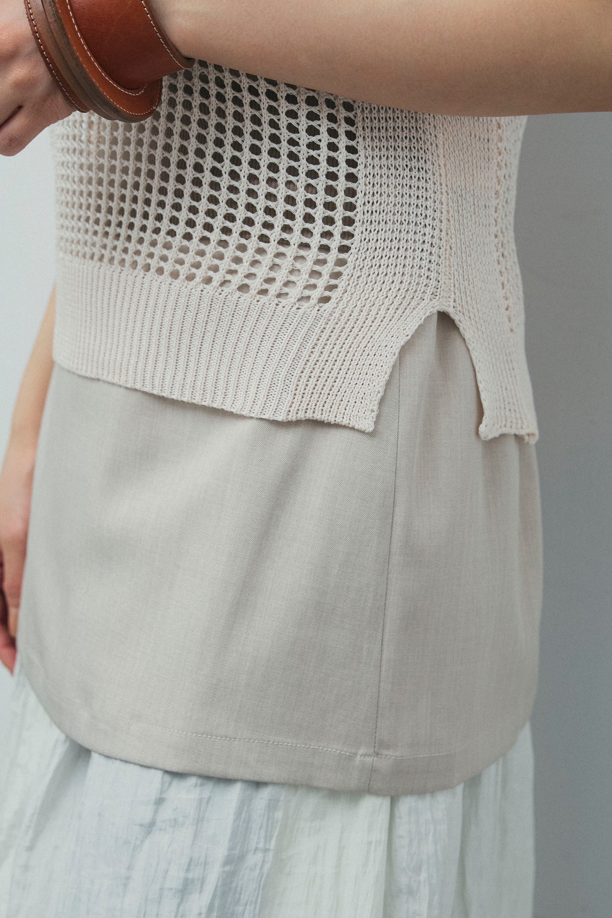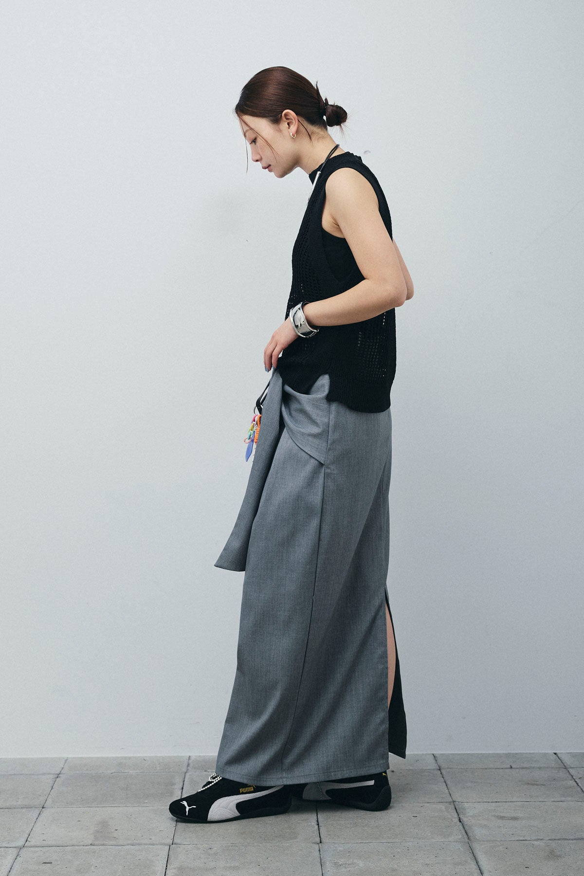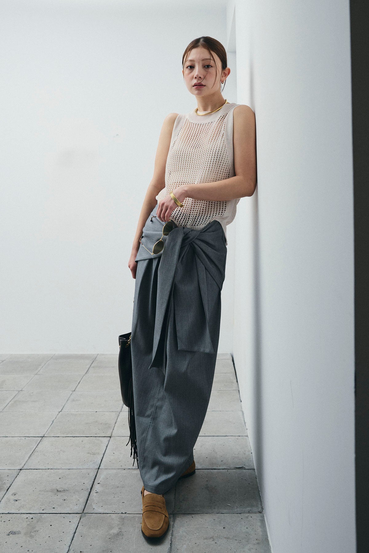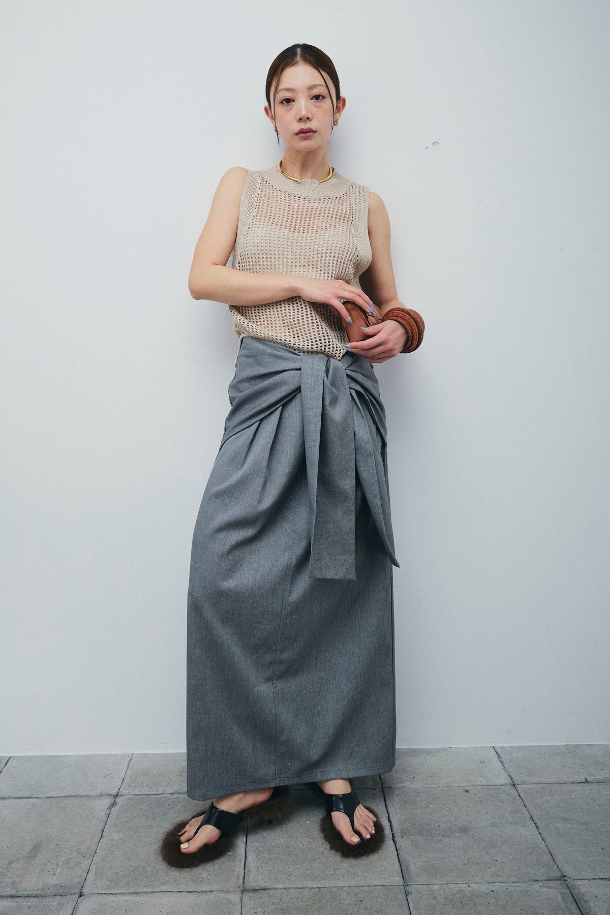 [予約/SET]フィッシュネットノースリーブニット+フロントクロスタイトスカート(2set)