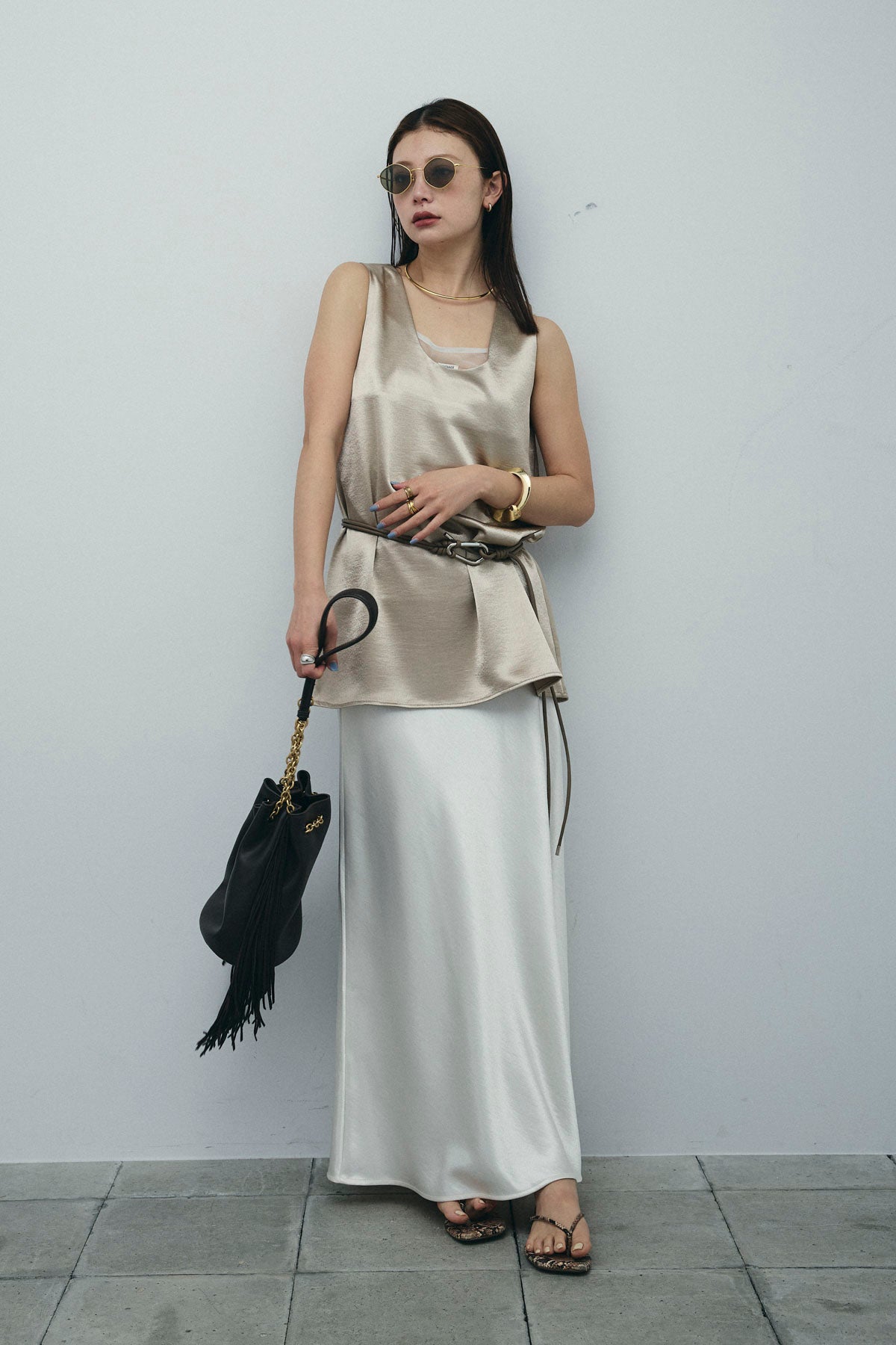 [予約/SET]サテン2wayトップス+サテンナロースカート(2set)