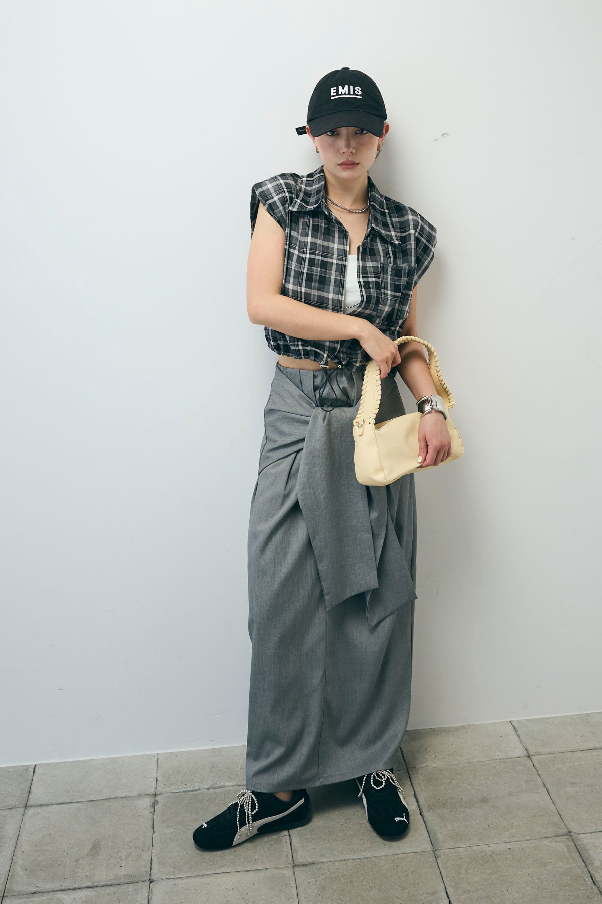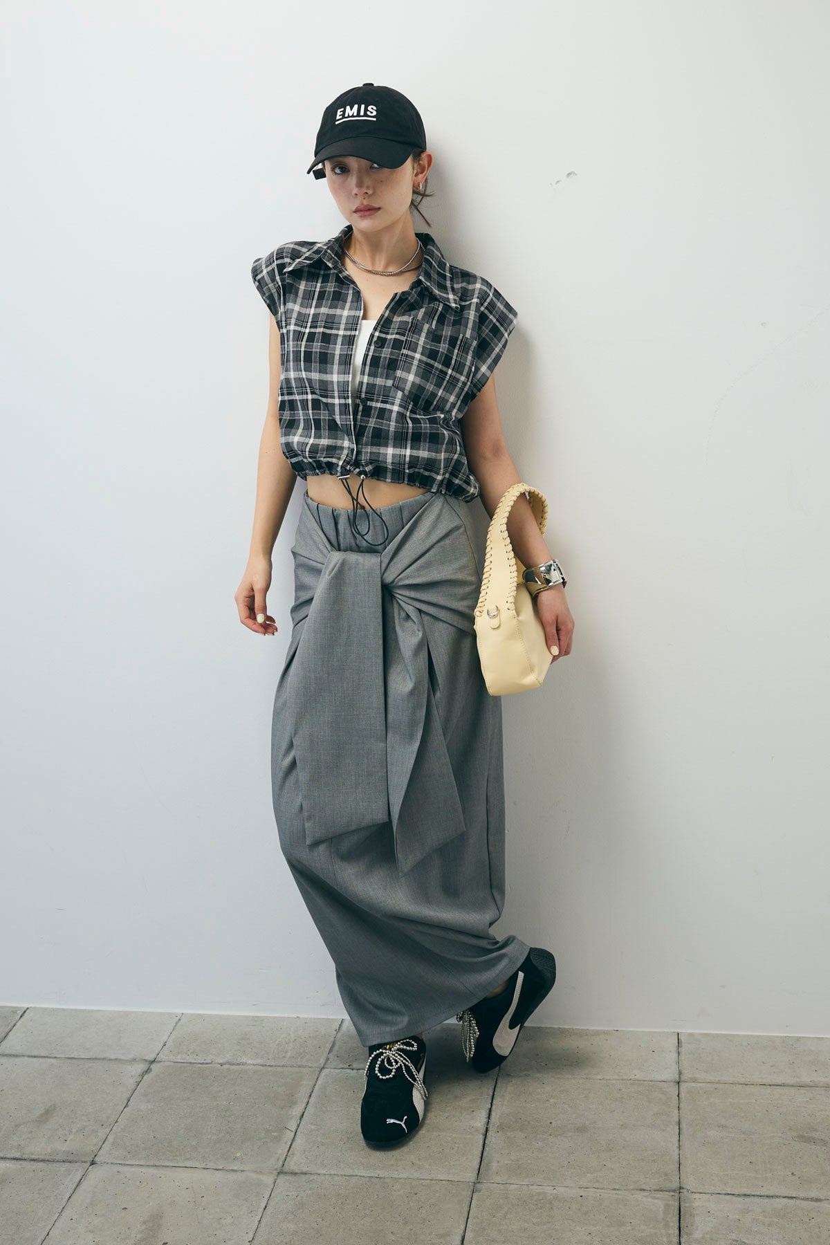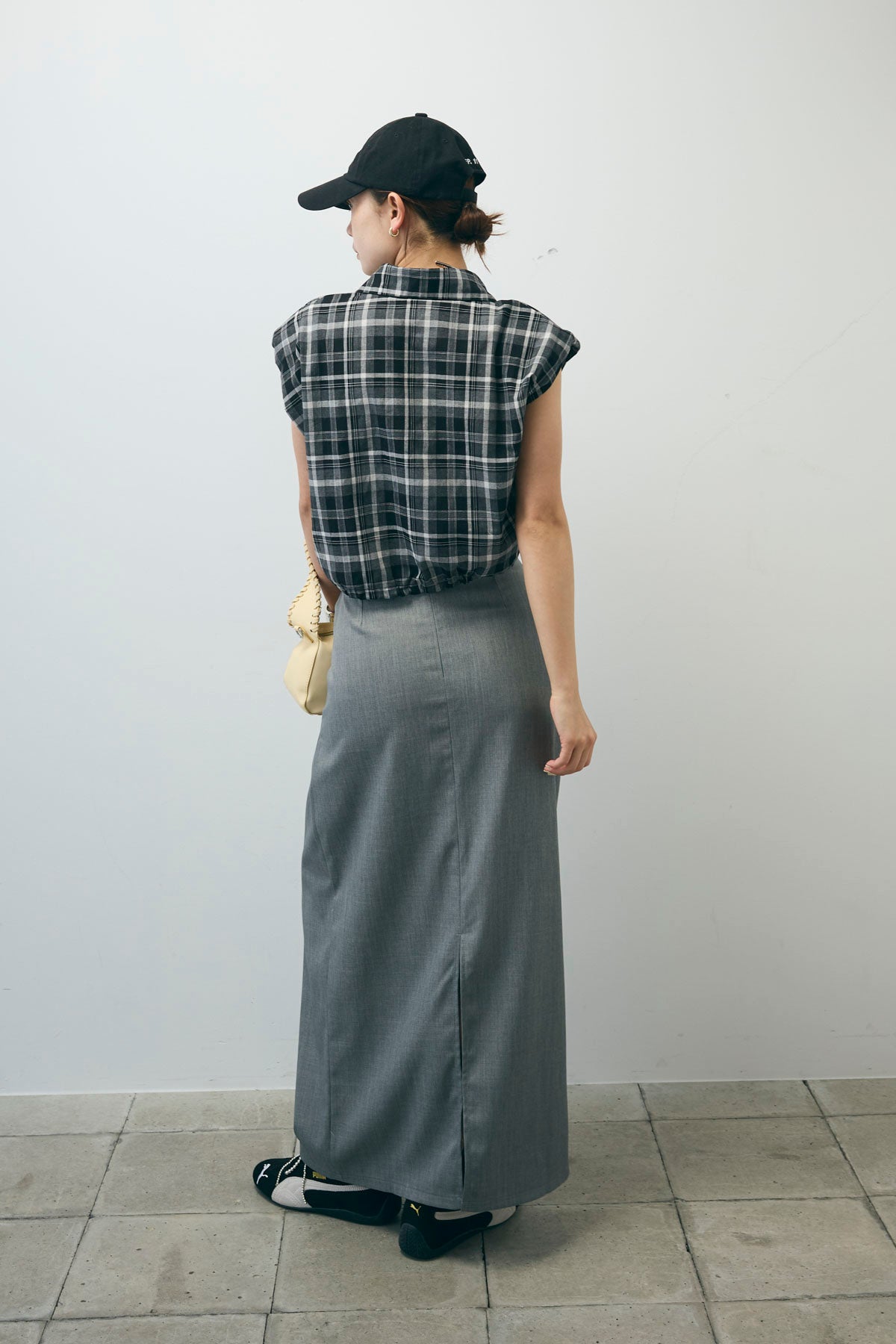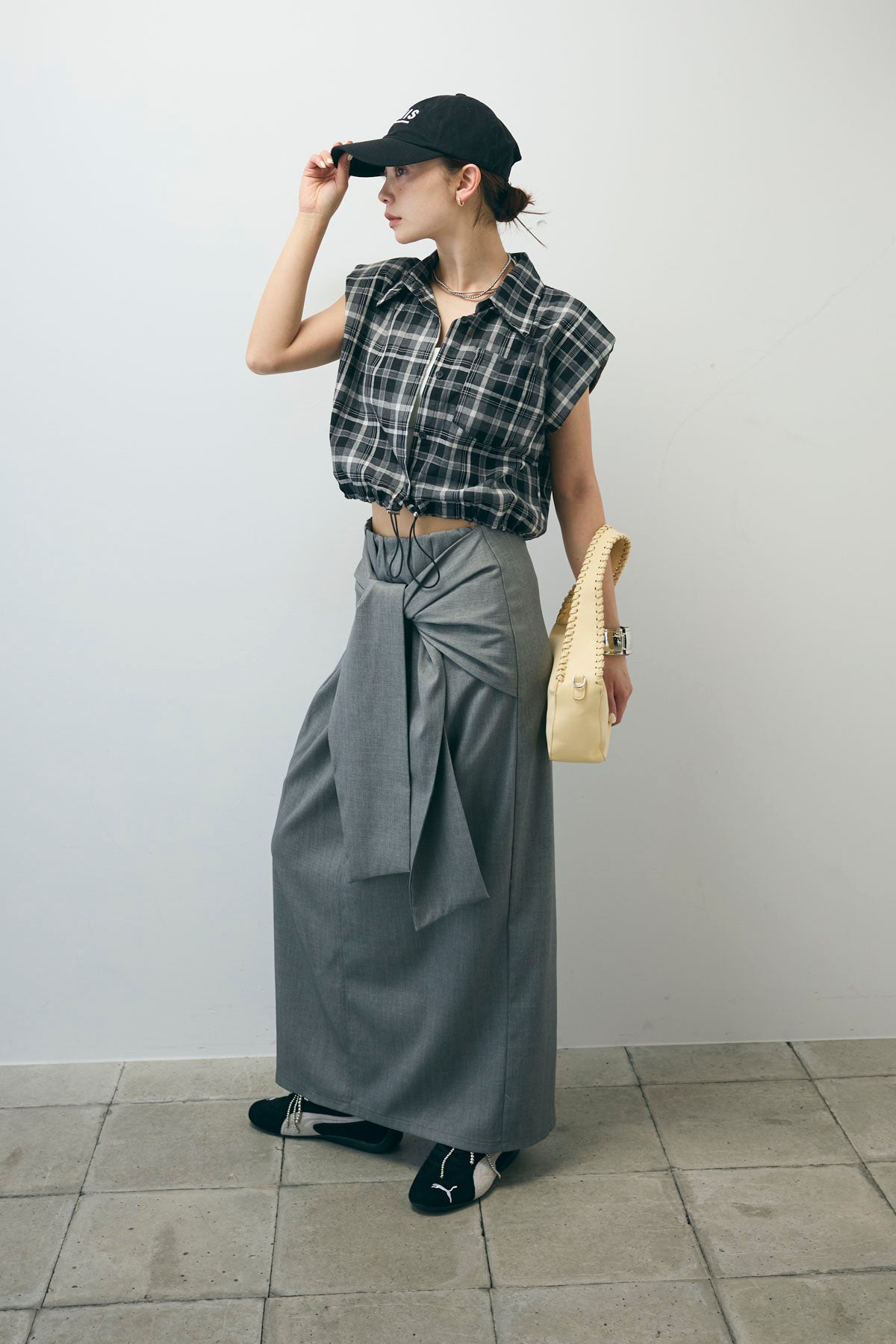 [予約/SET]シアーチェックショート丈ブラウス+フロントクロスタイトスカート(2set)