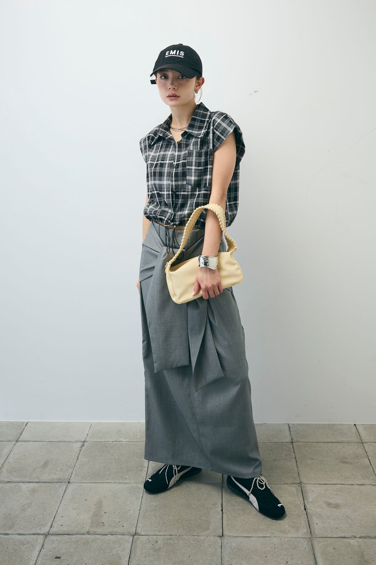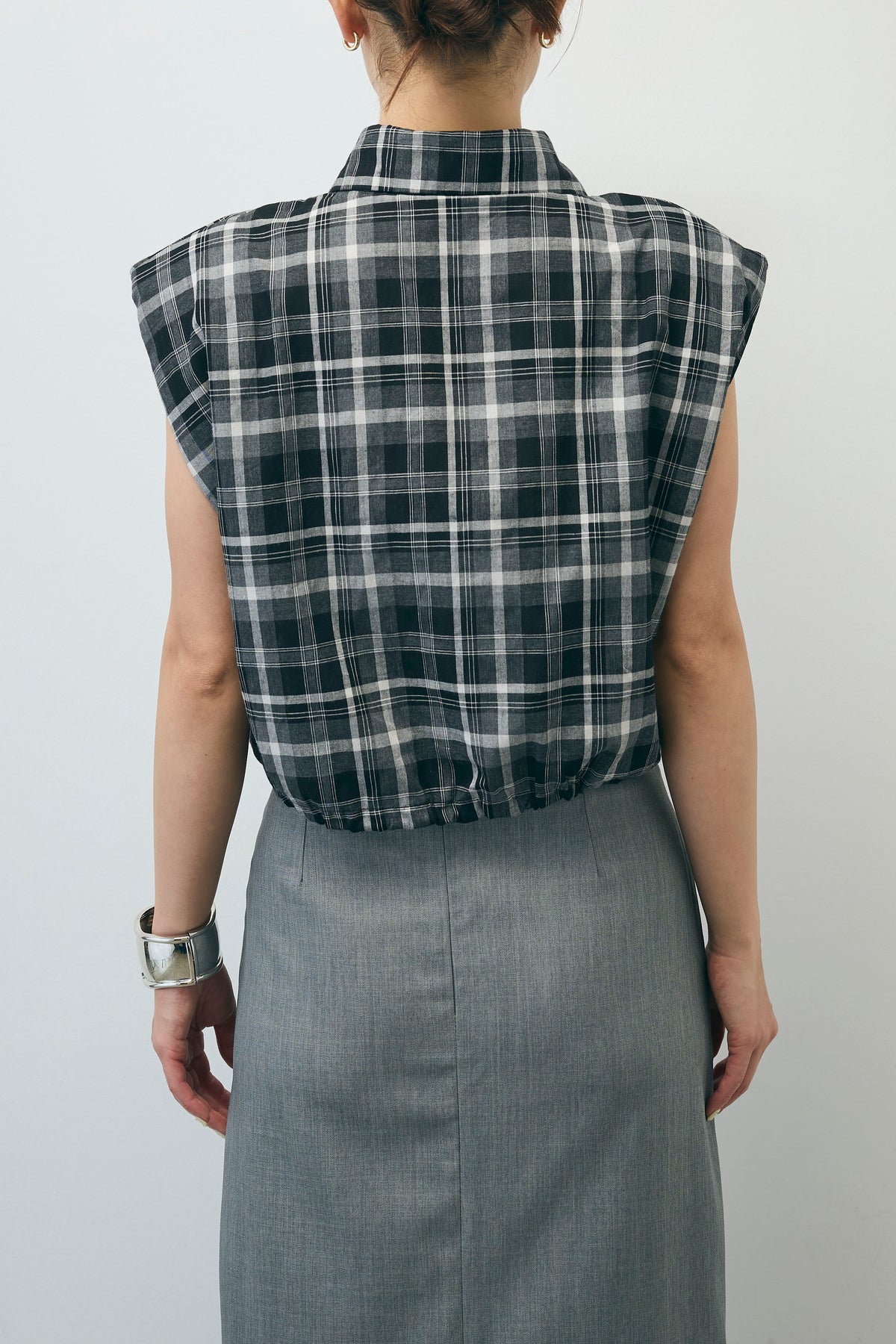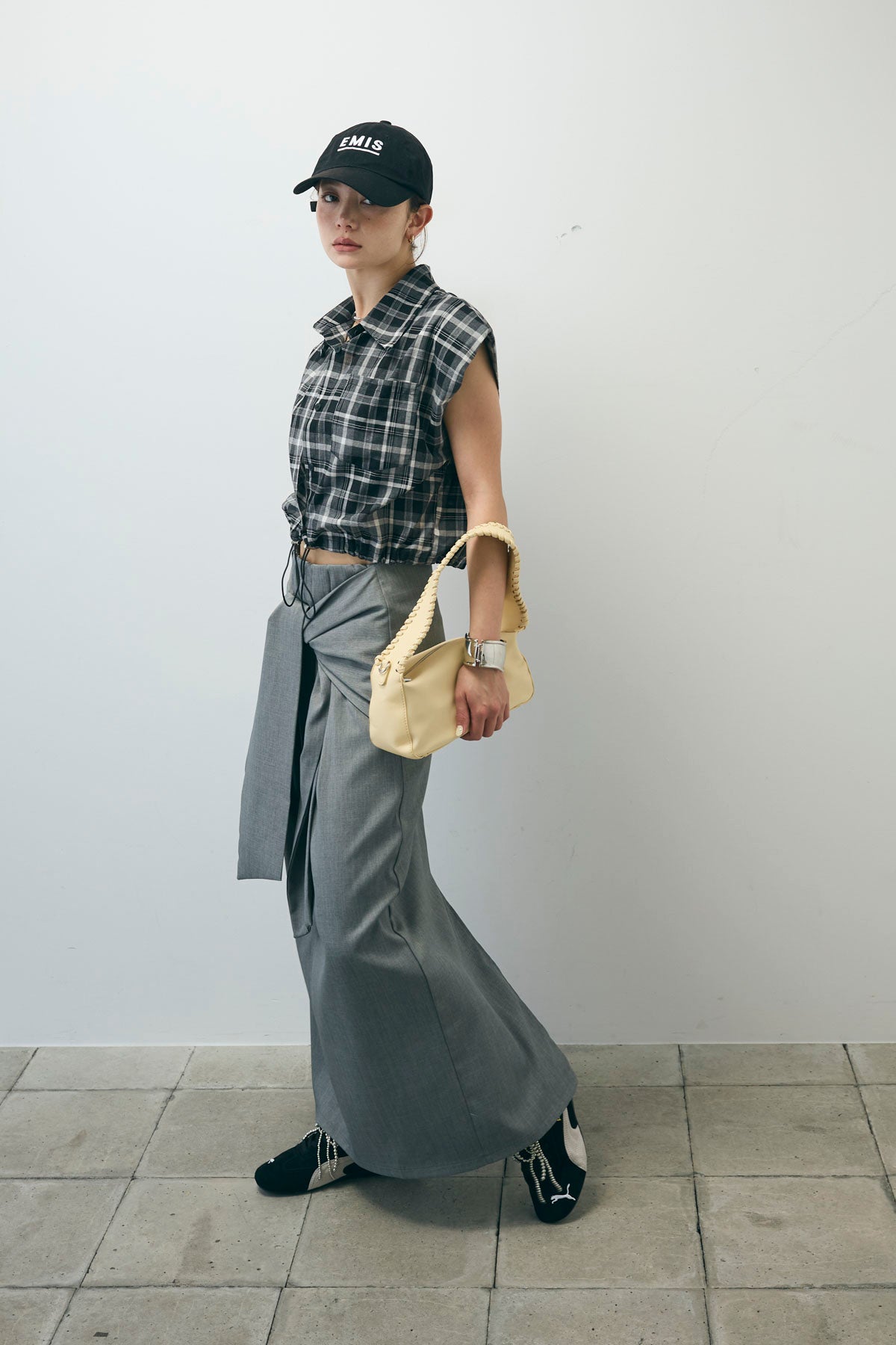 [予約/SET]シアーチェックショート丈ブラウス+フロントクロスタイトスカート(2set)