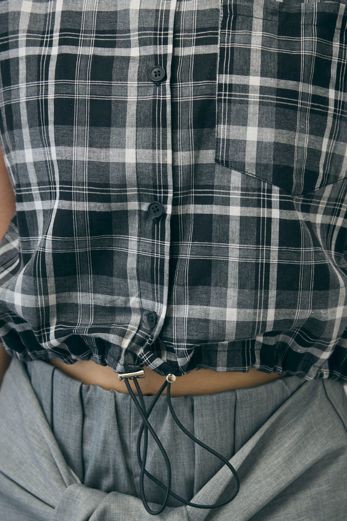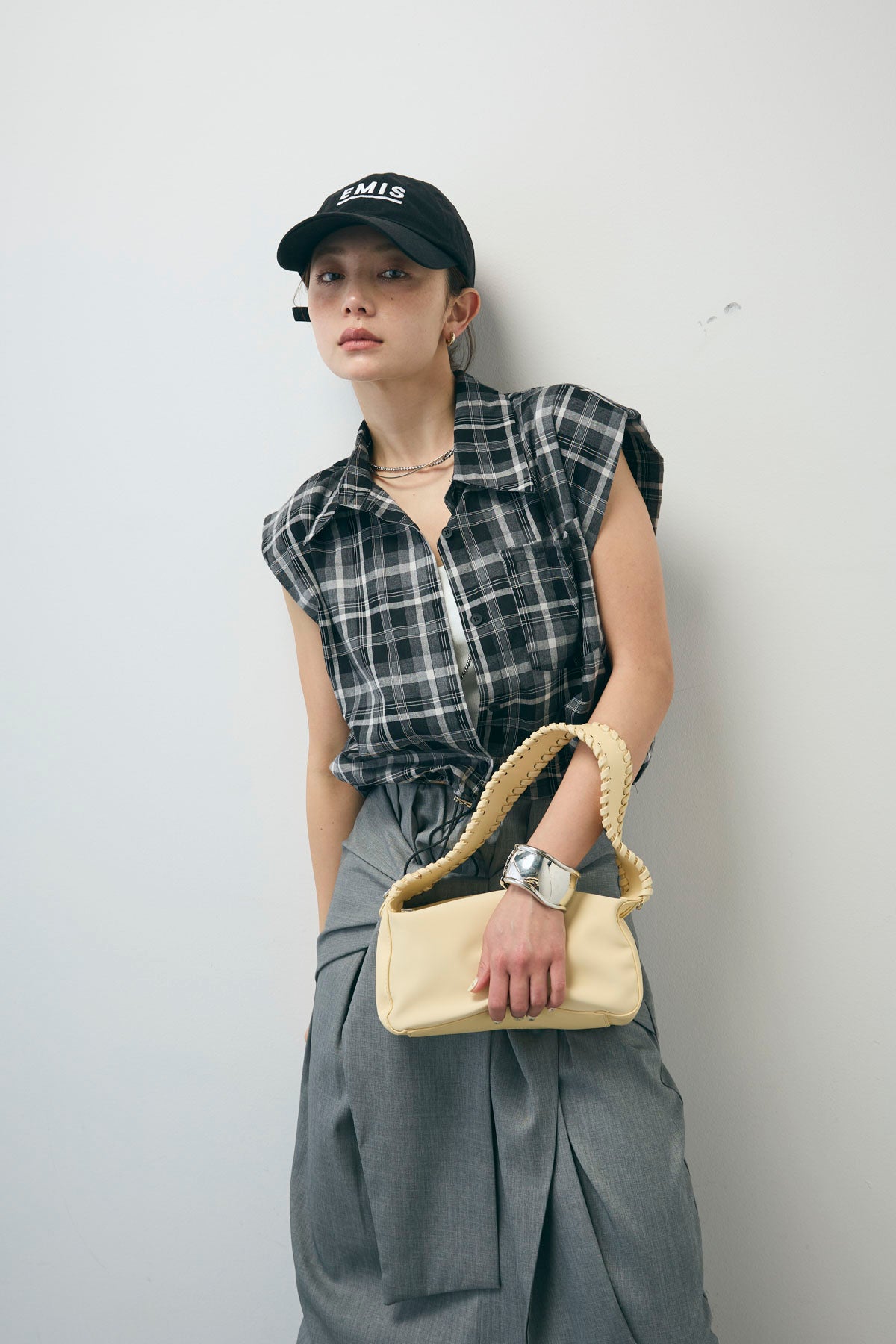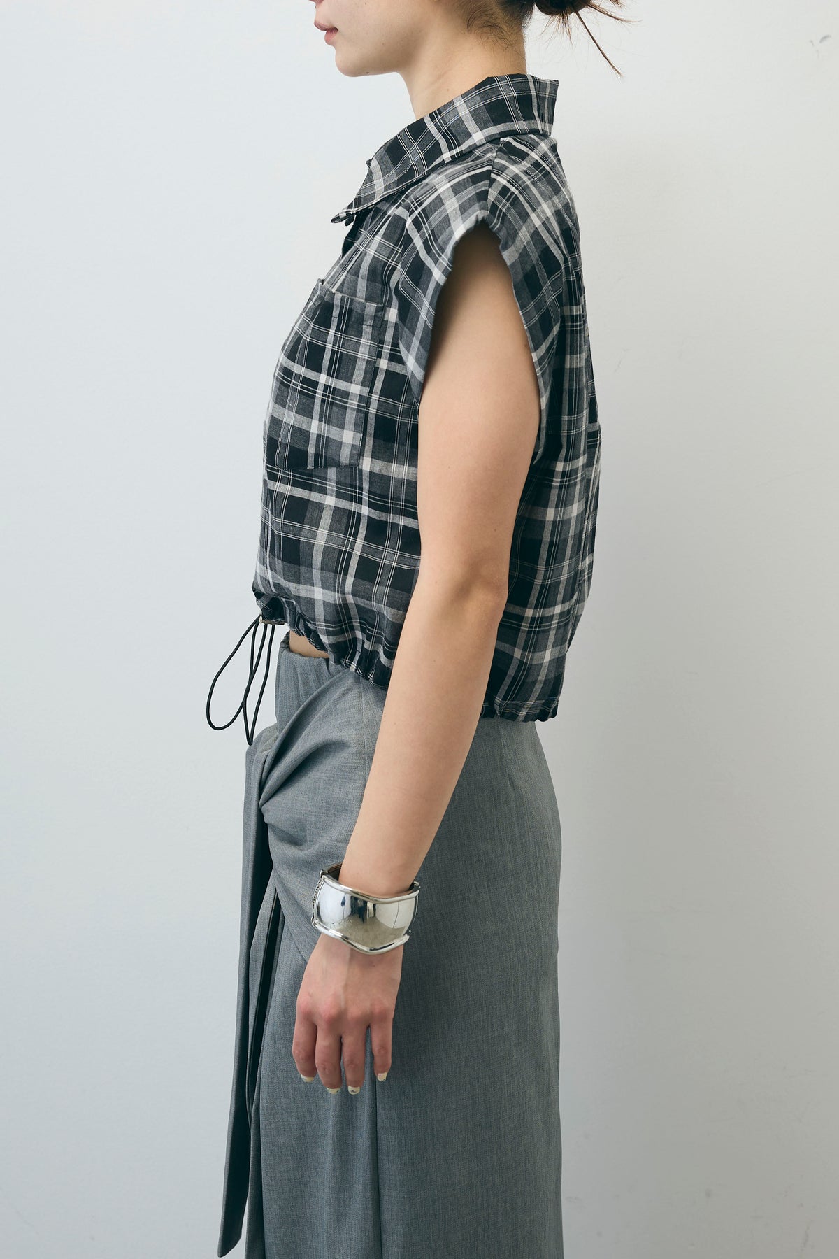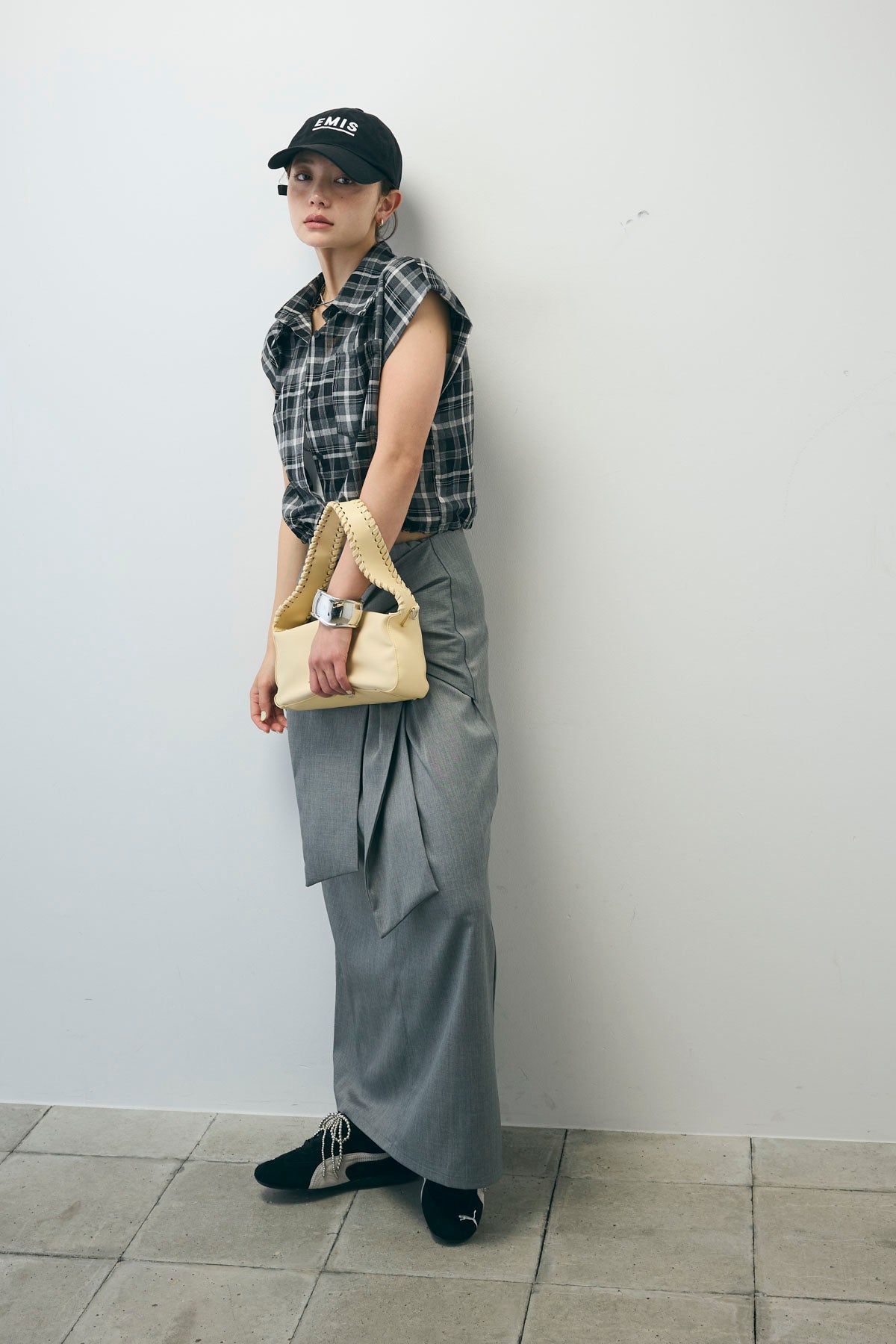 [予約/SET]シアーチェックショート丈ブラウス+フロントクロスタイトスカート(2set)