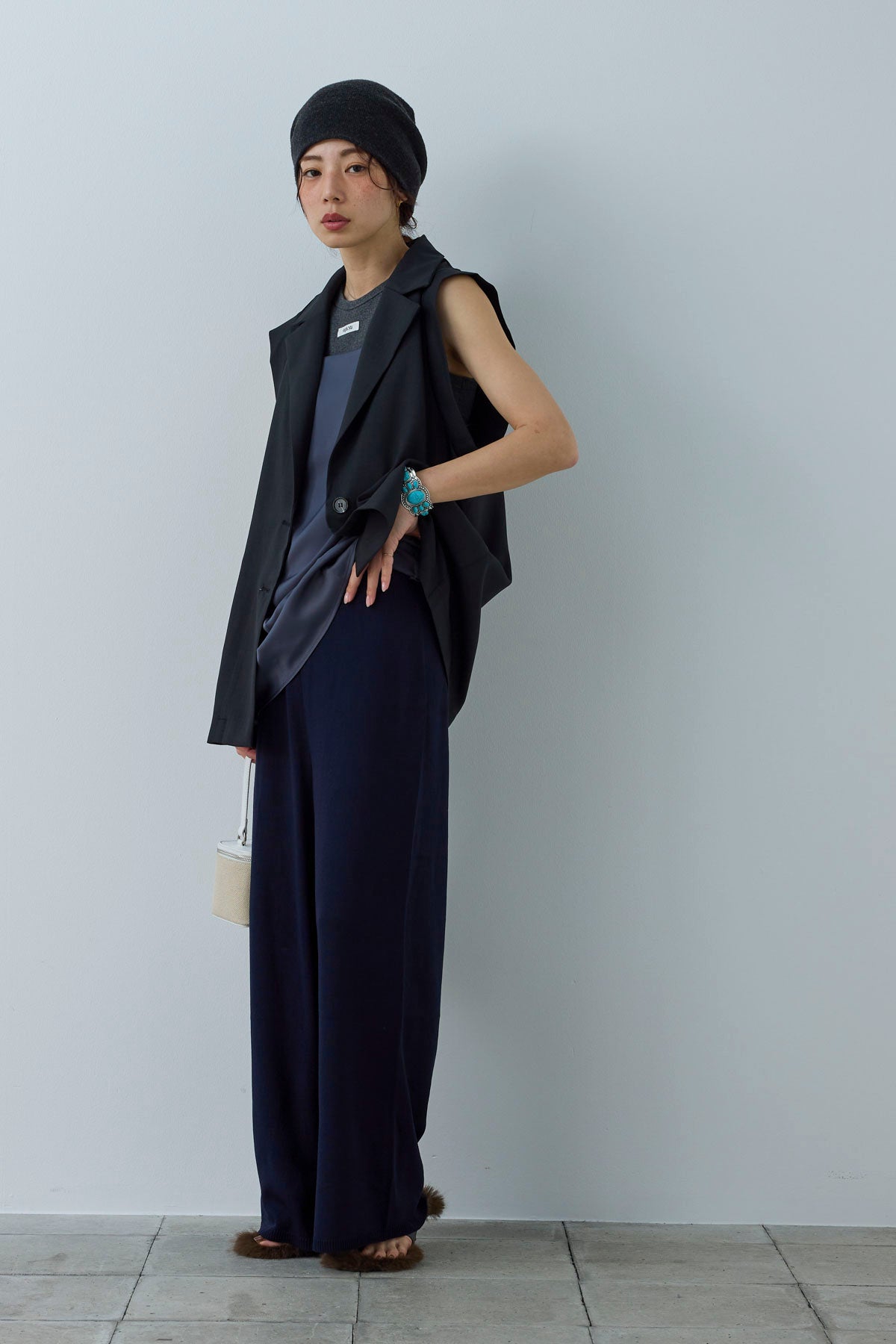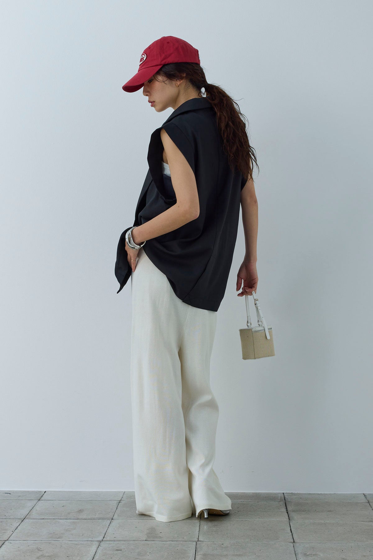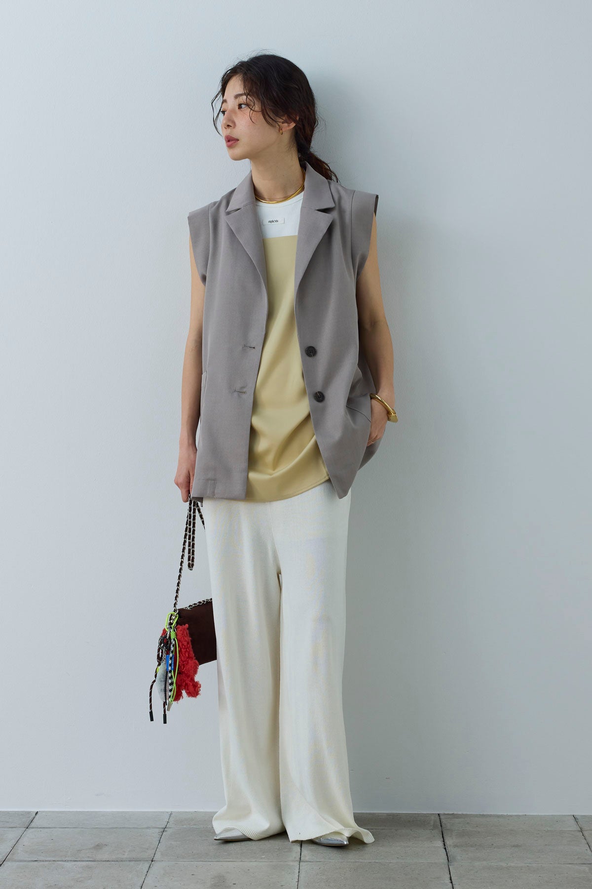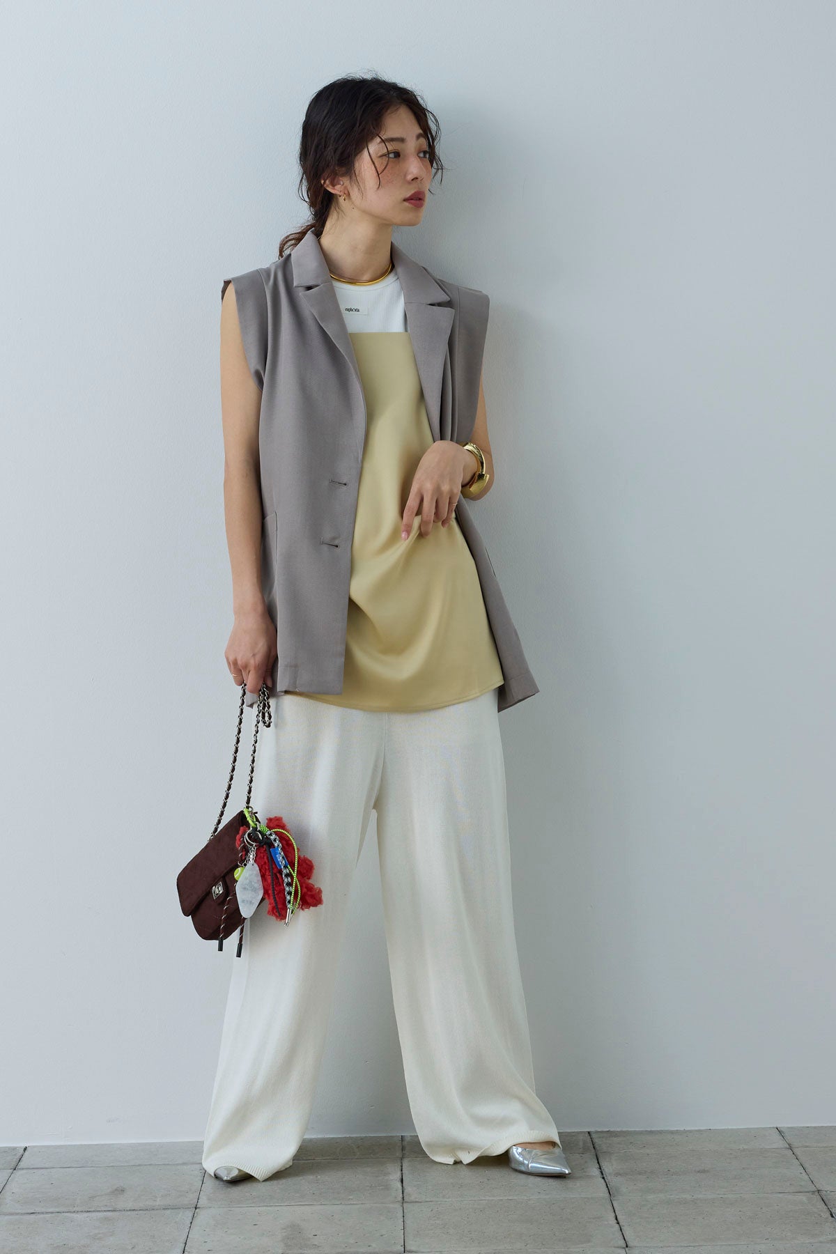[予約/SET]リネンタッチテーラードジレ+マットサテンサイドタックキャミ+ネーム入りアメスリタンク+ニットベア2wayパンツ(4set)