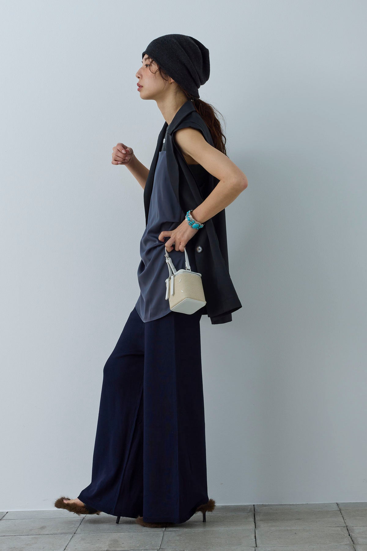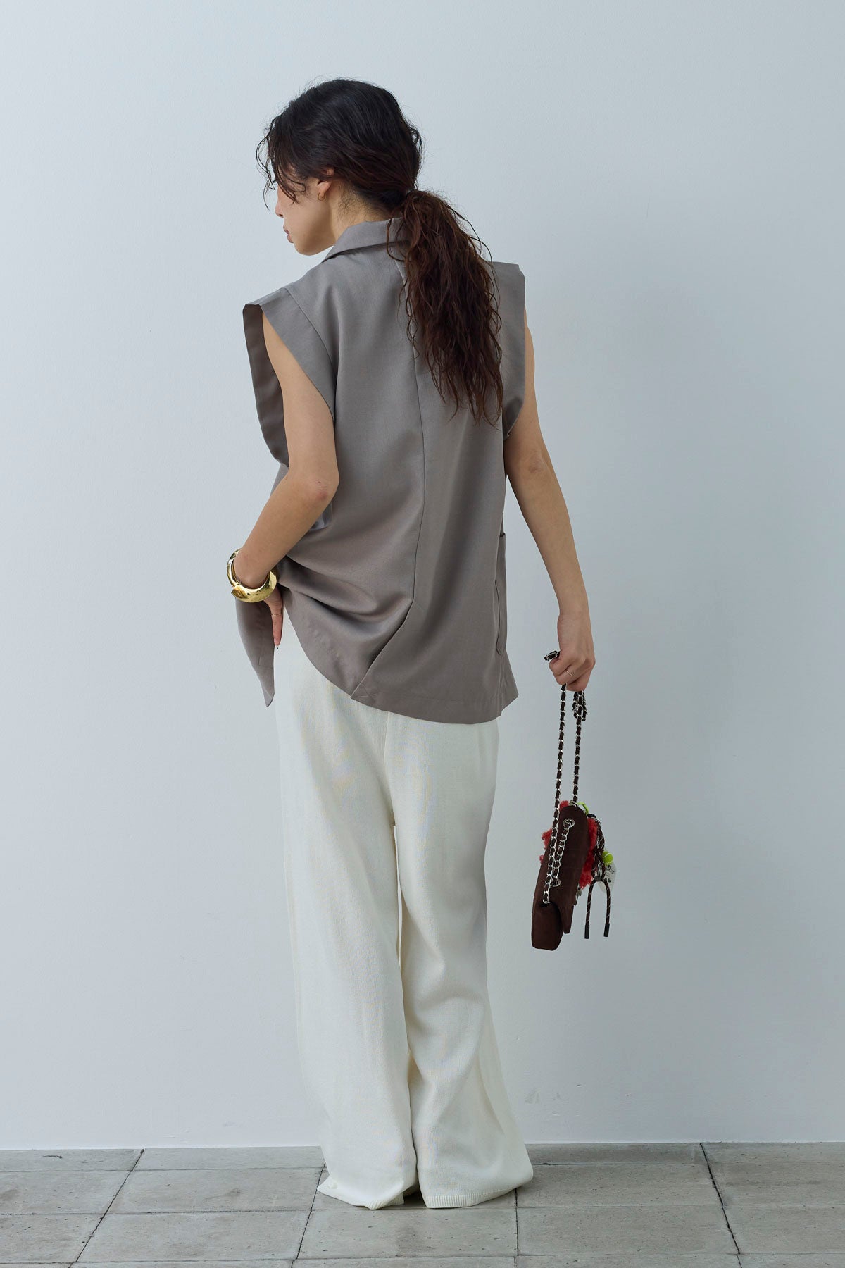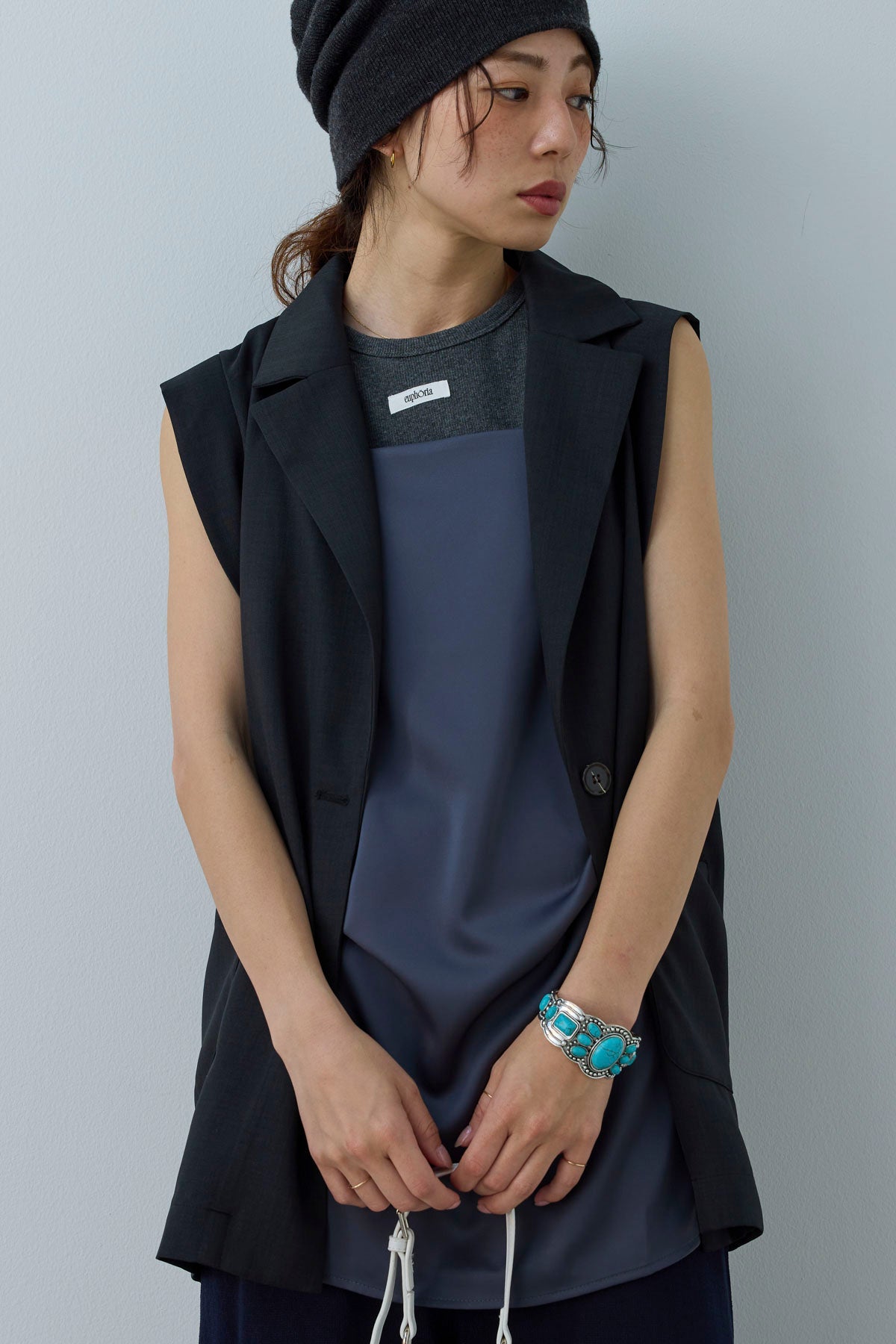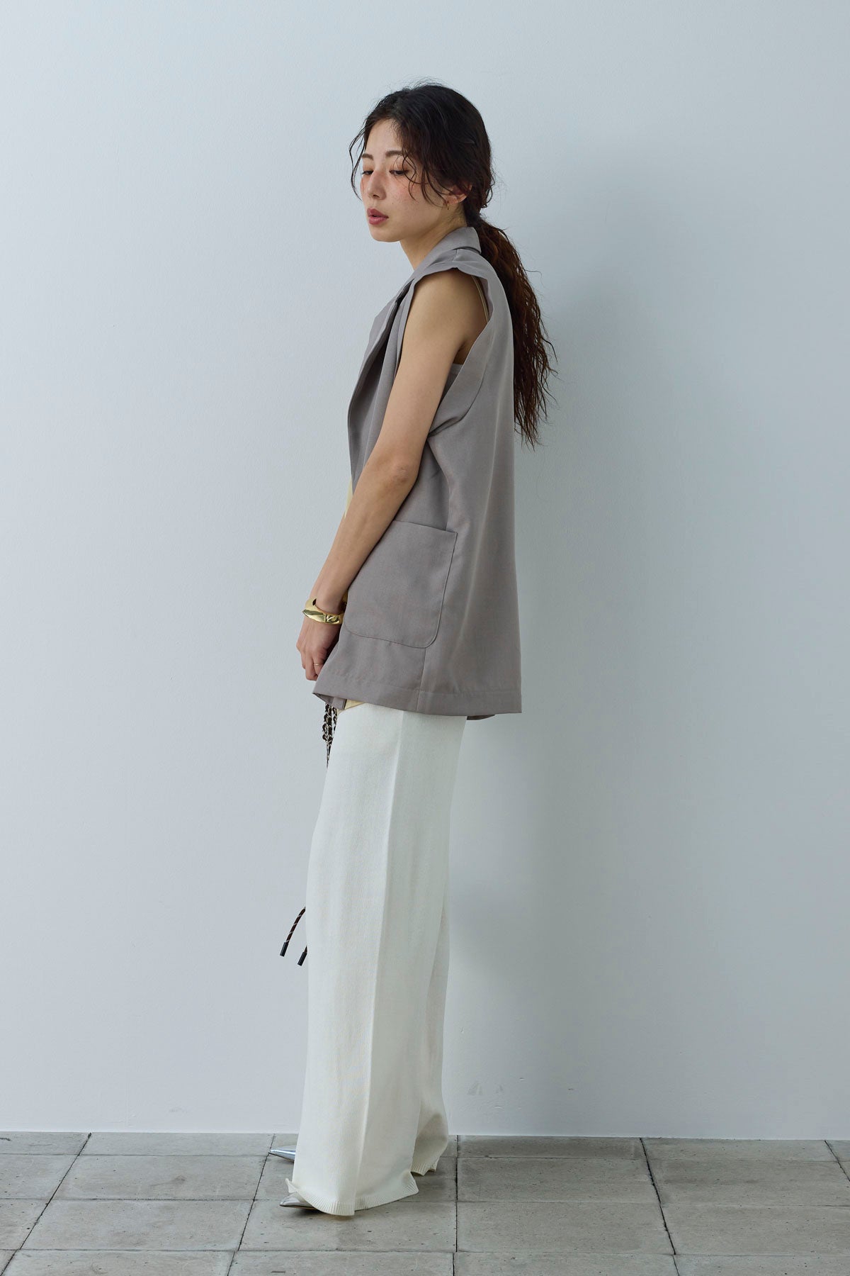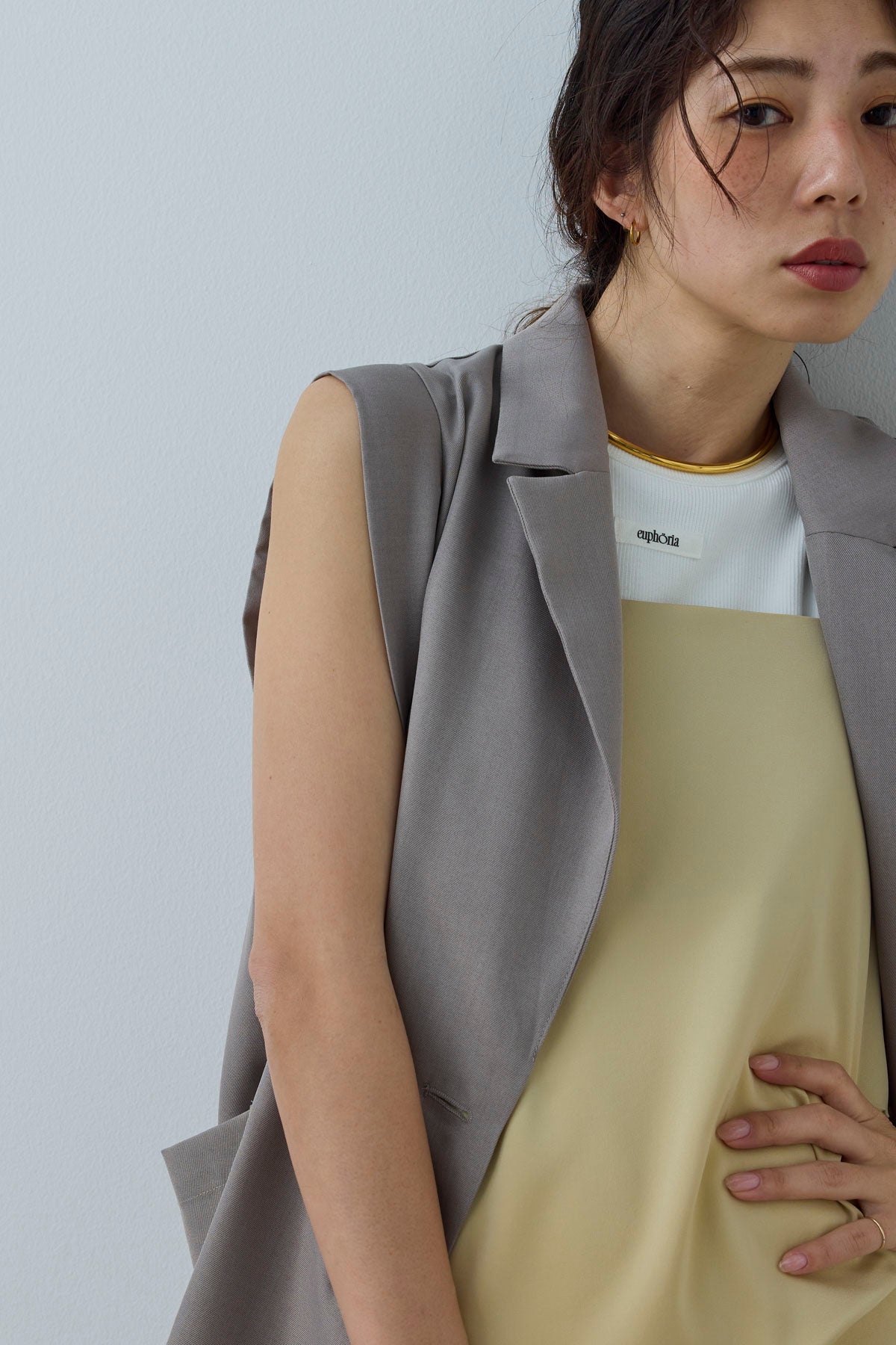 [予約/SET]リネンタッチテーラードジレ+マットサテンサイドタックキャミ+ネーム入りアメスリタンク+ニットベア2wayパンツ(4set)