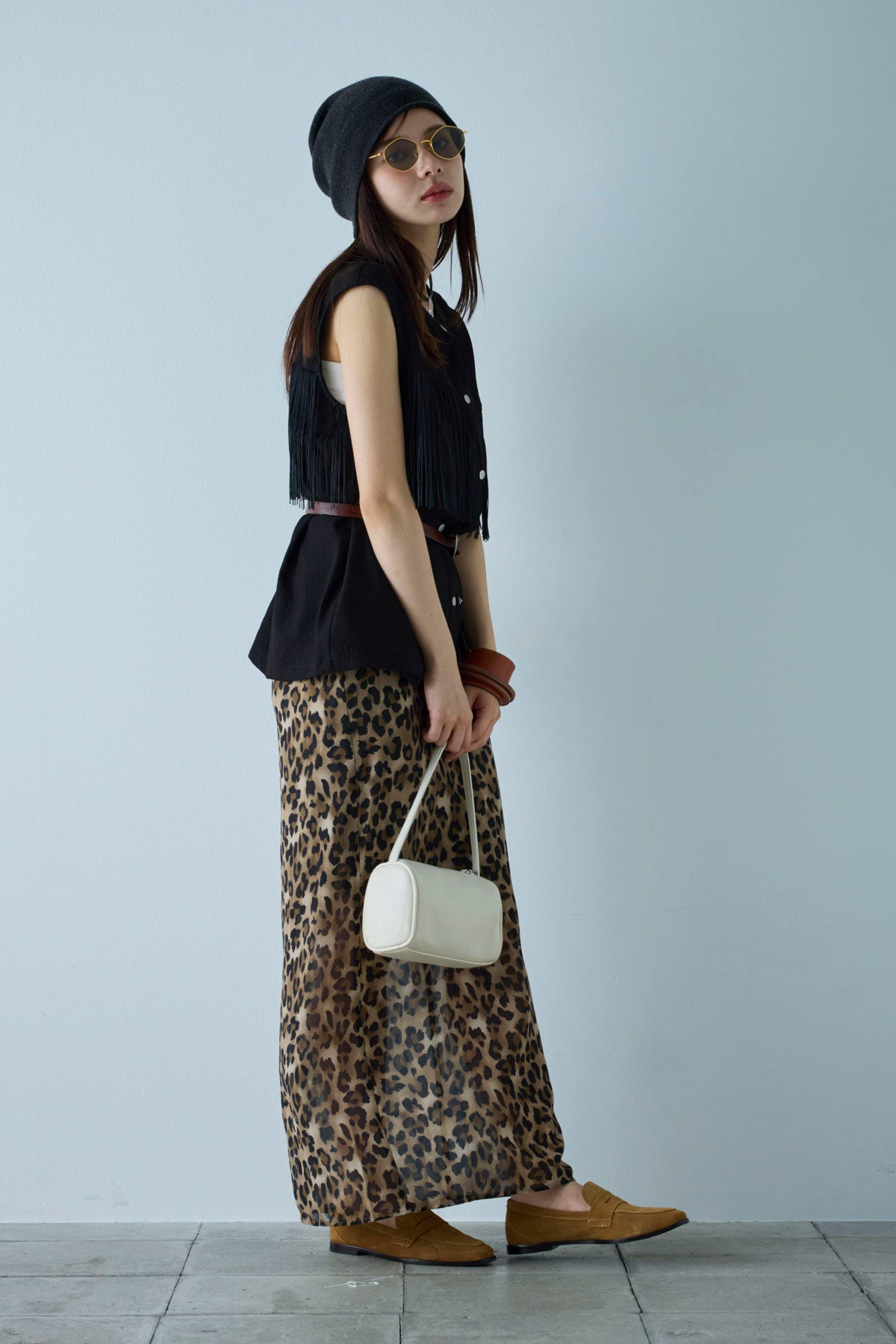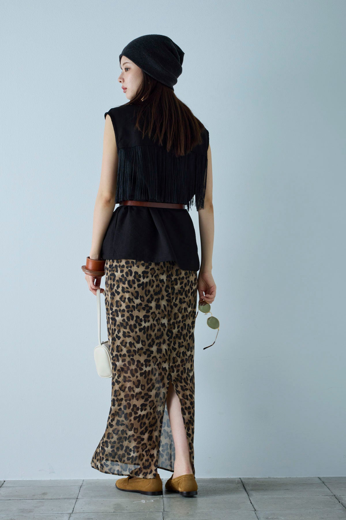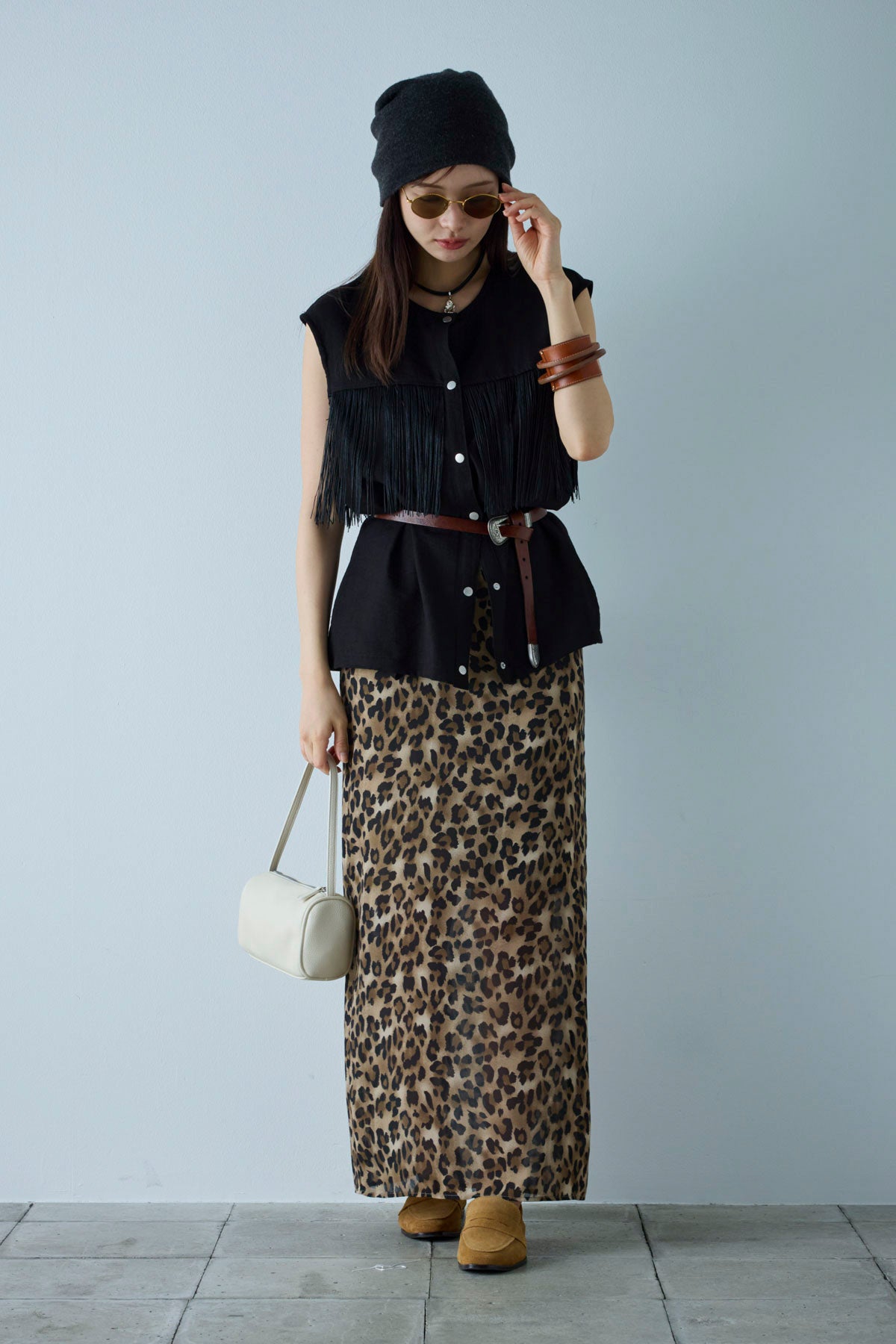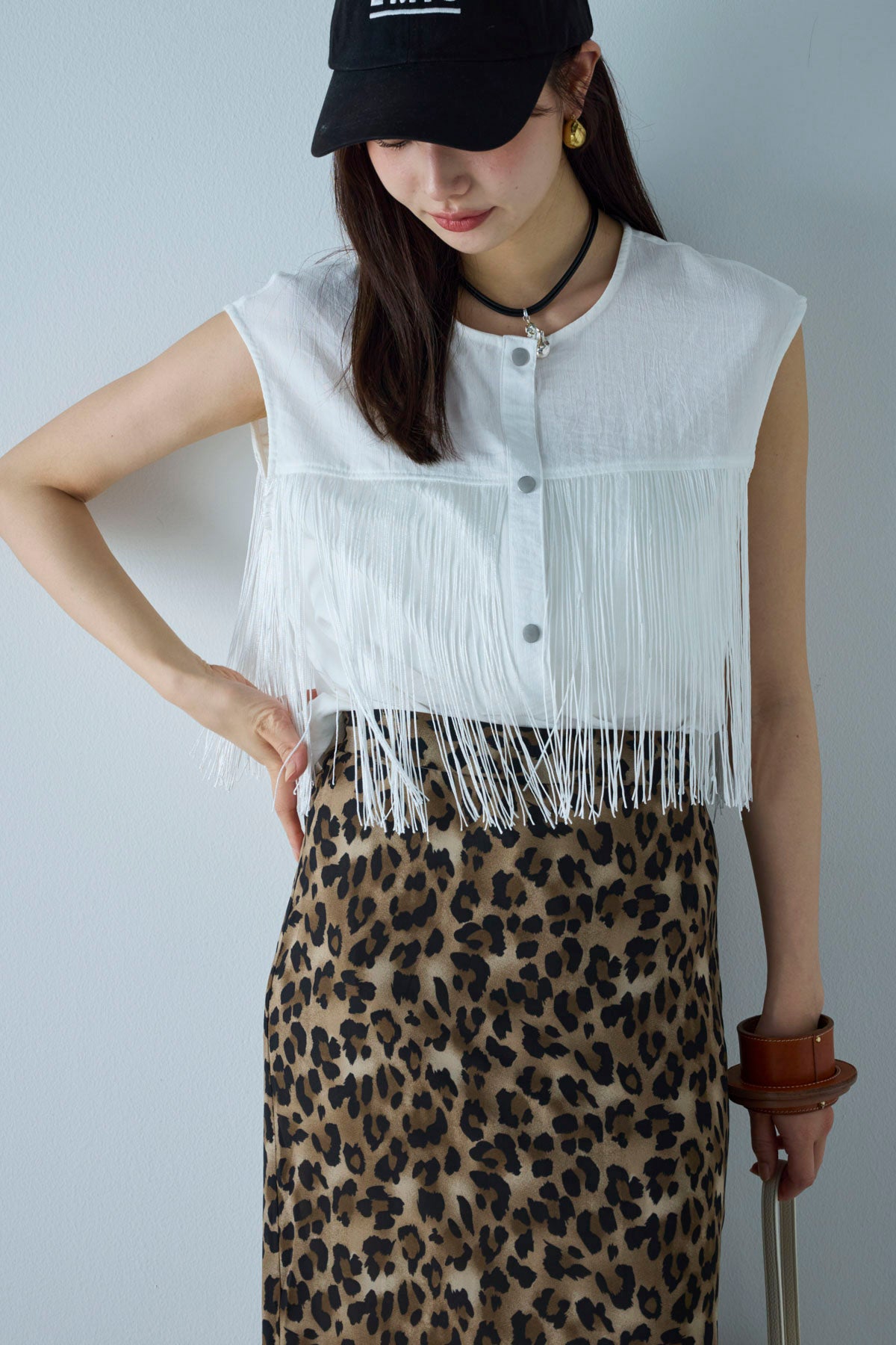 [予約/SET]フリンジデザインノースリーブ+レオパードシアースカート(2set)