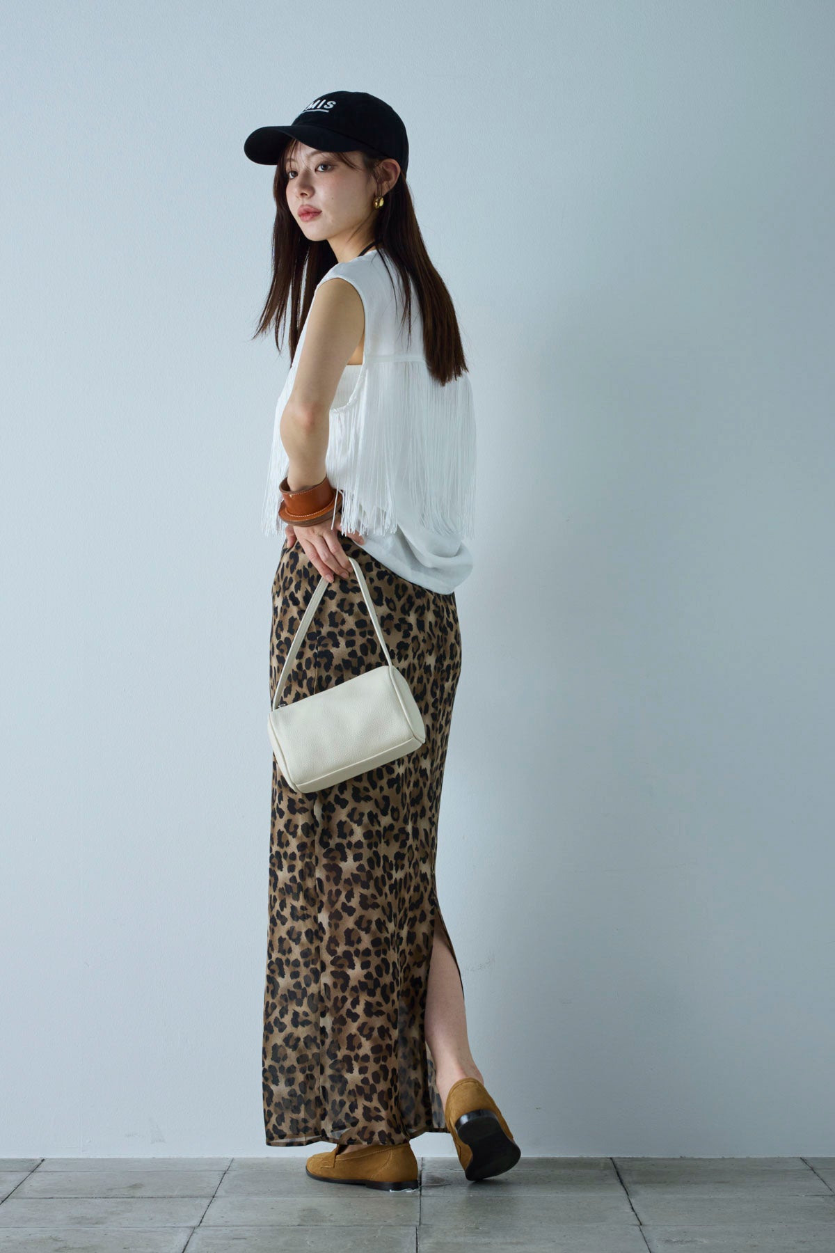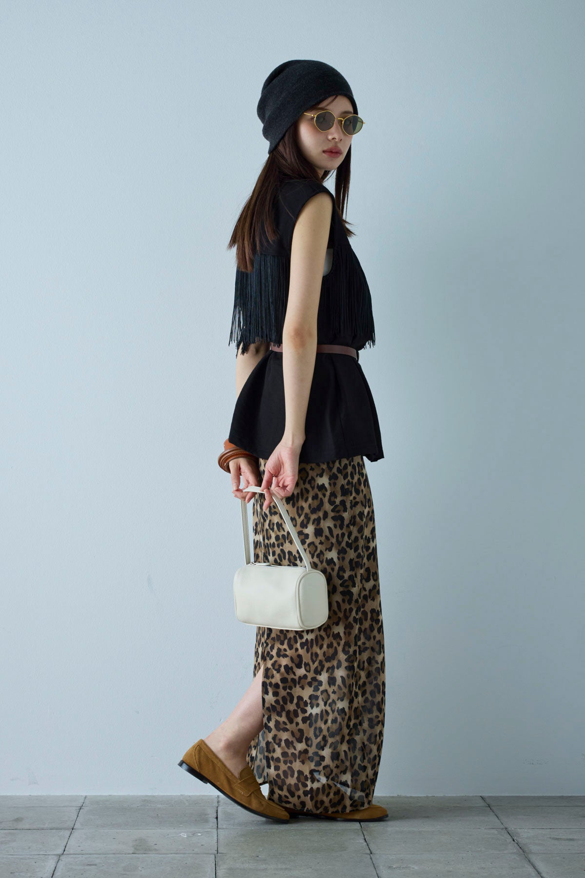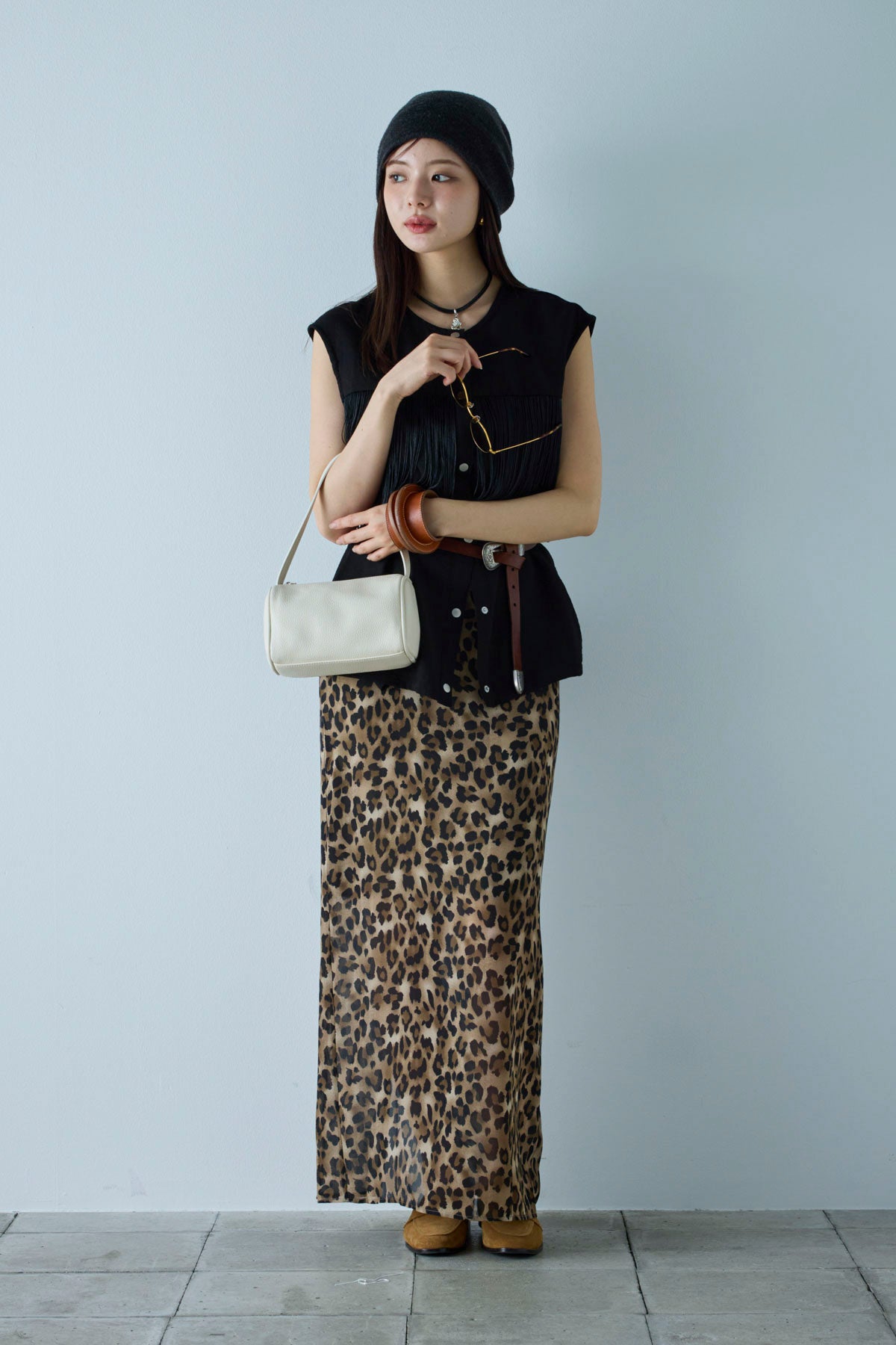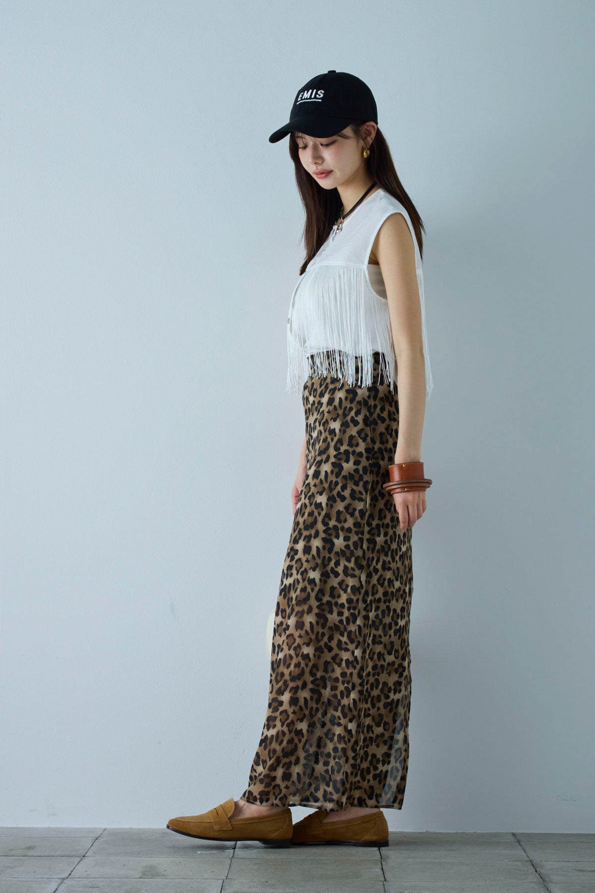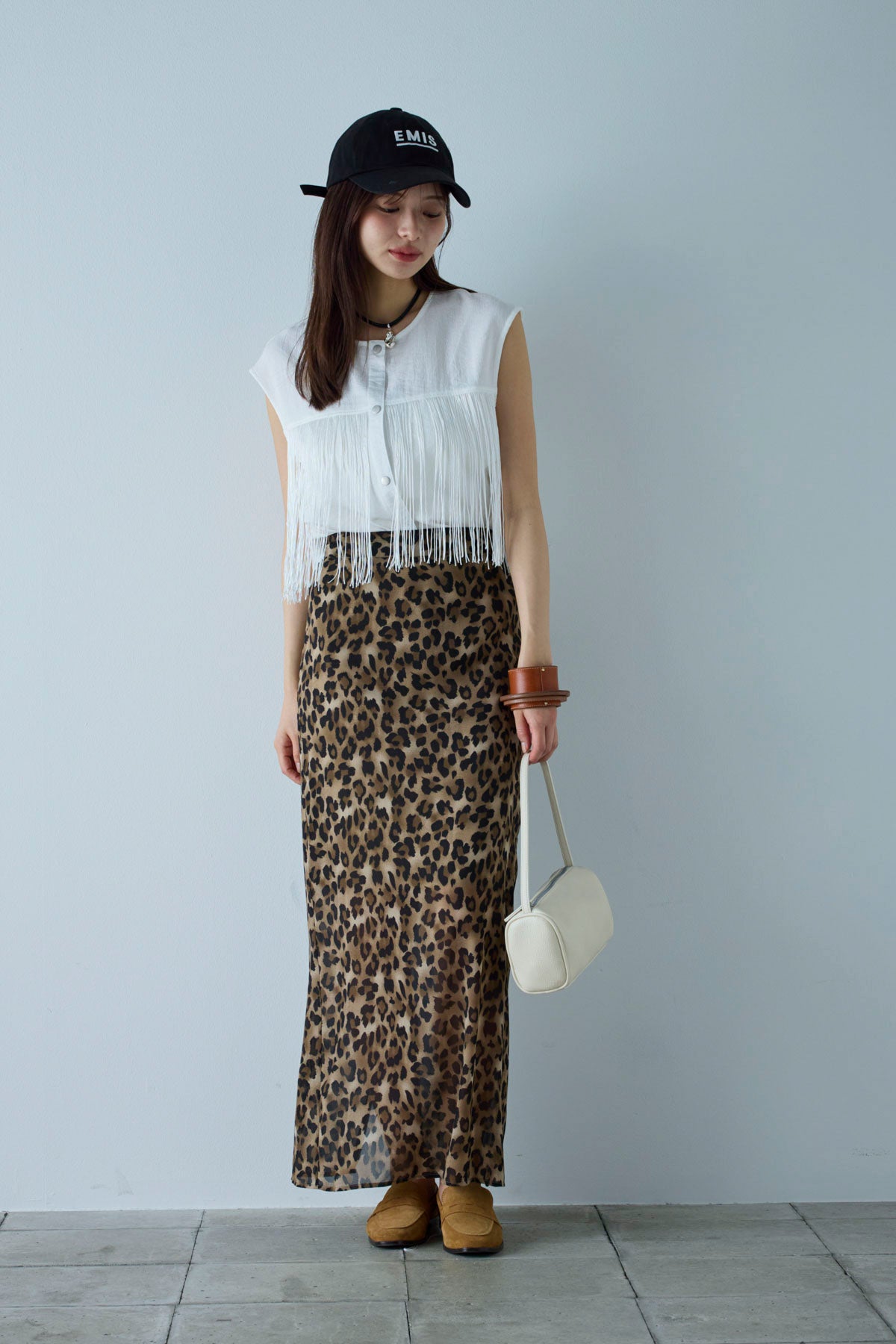 [予約/SET]フリンジデザインノースリーブ+レオパードシアースカート(2set)