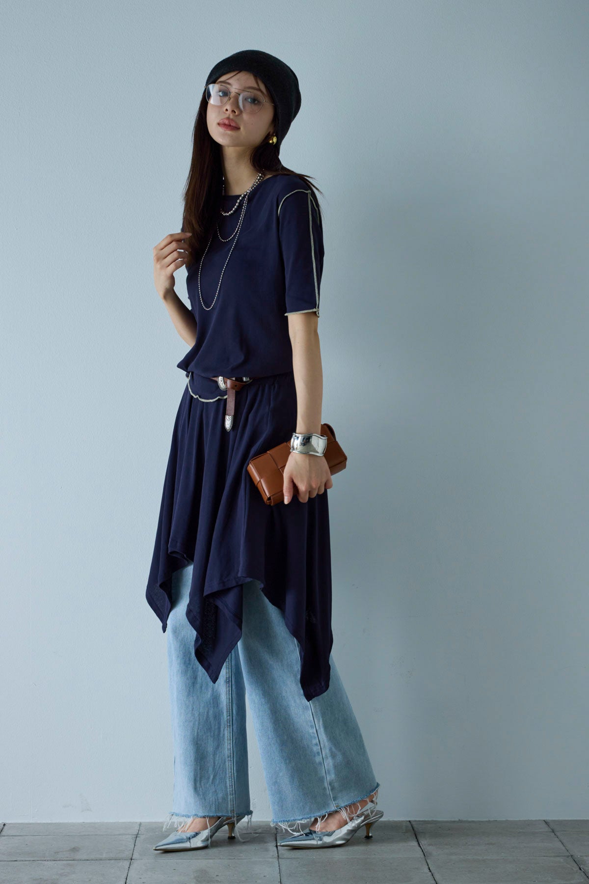 [予約/SET]パイピングラウンドヘムカットソー+レイヤードイレヘムSK(2set)