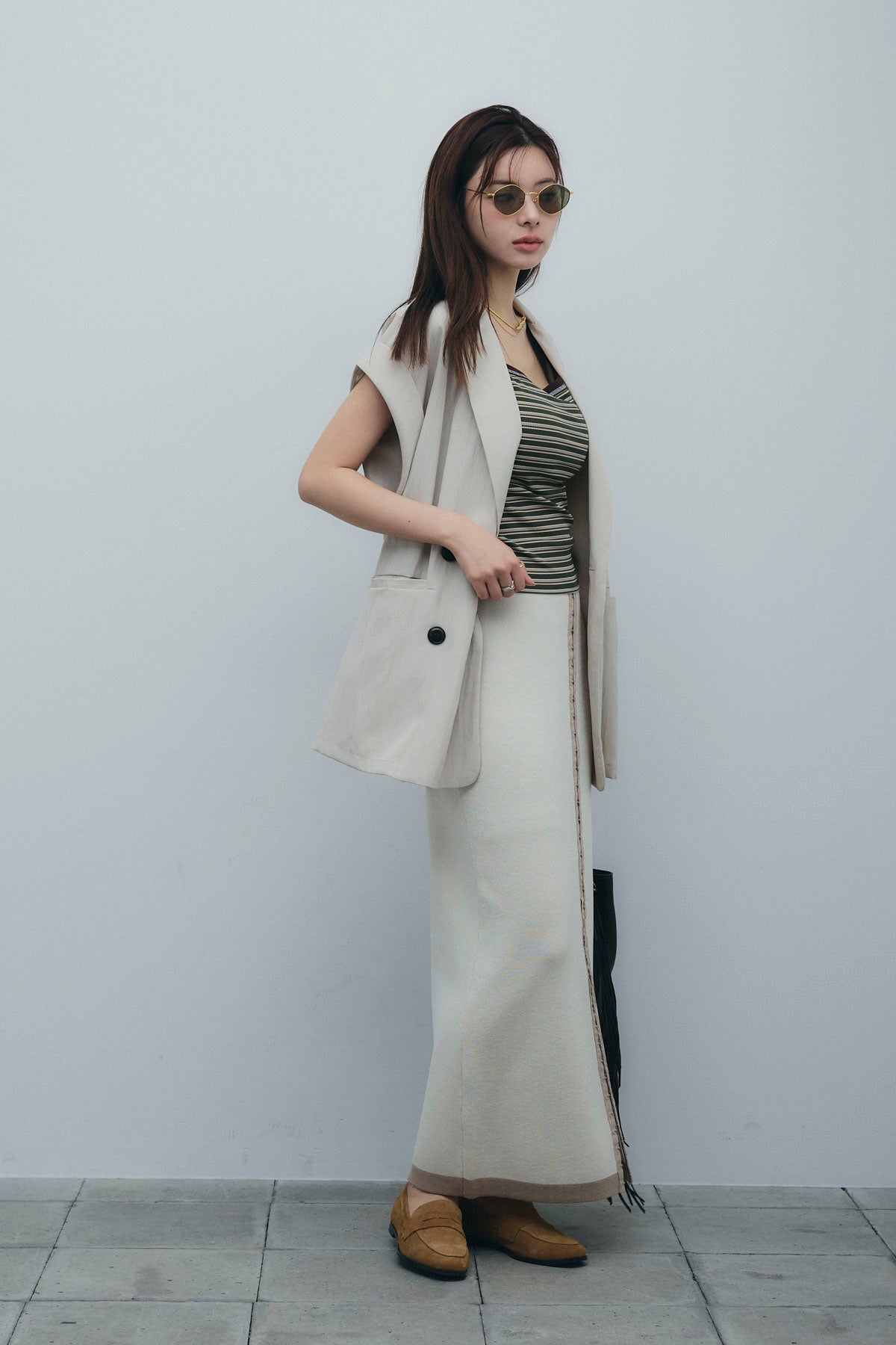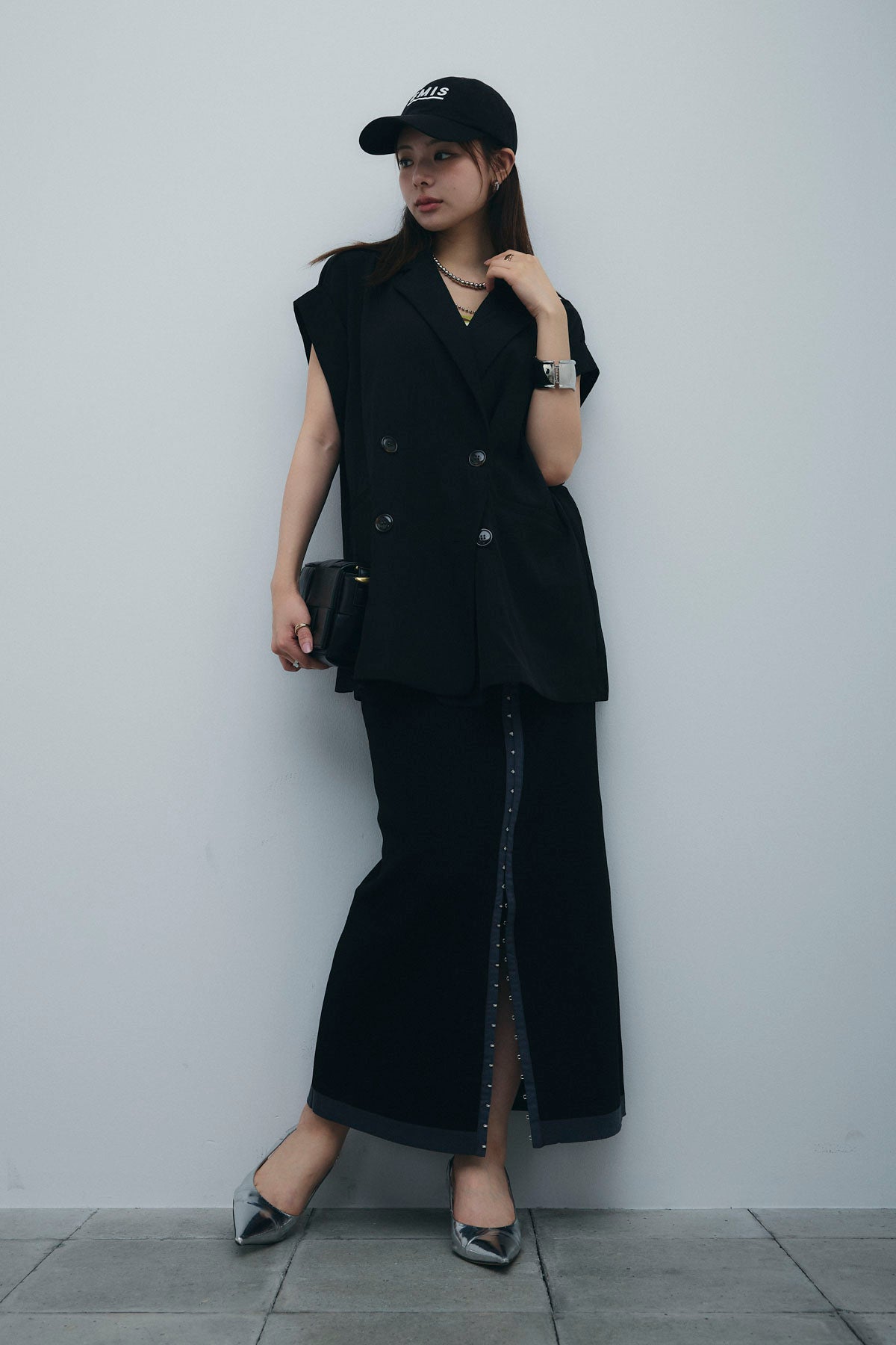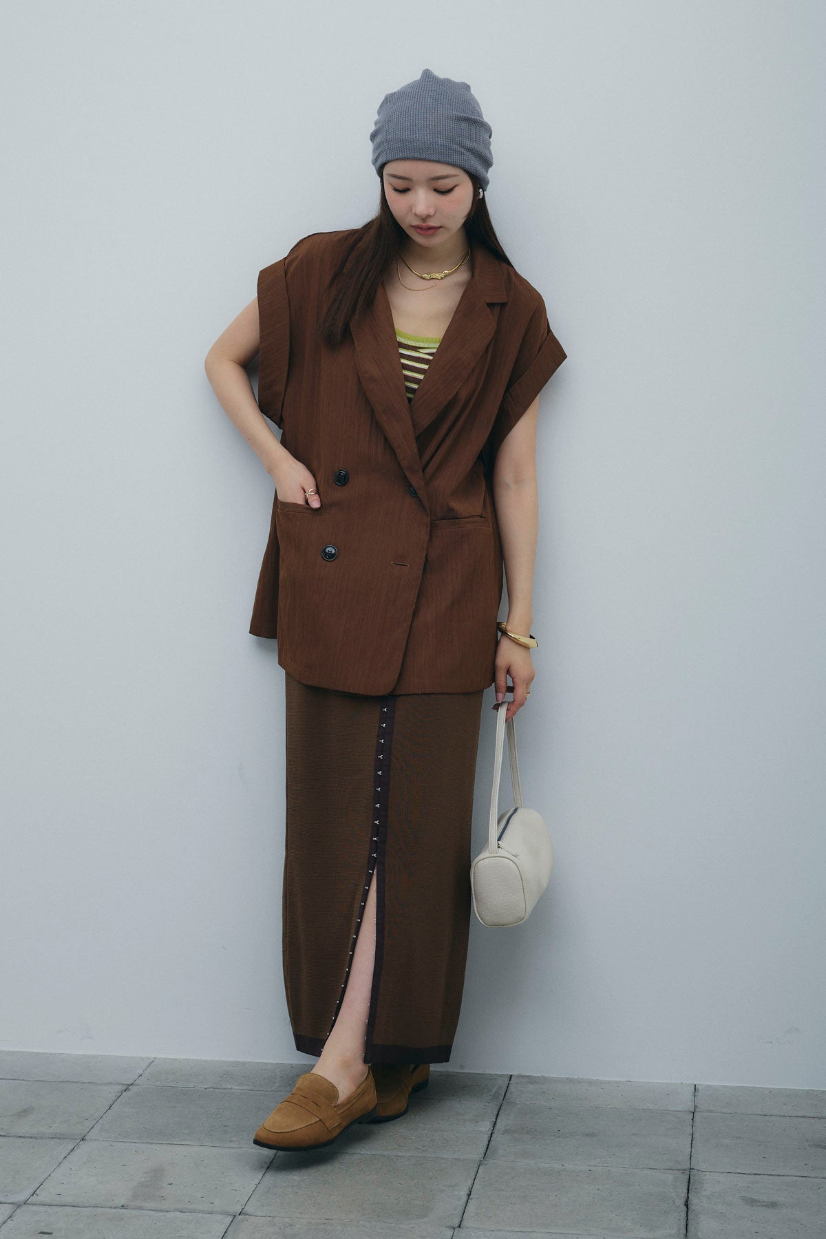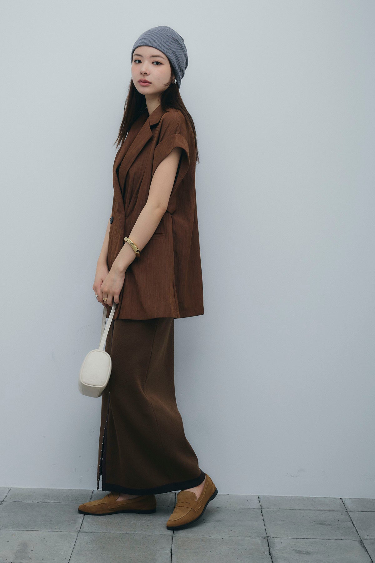 [予約/SET]リネンライクダブルジレ+リネンタッチ配色ホックスカート(2set)