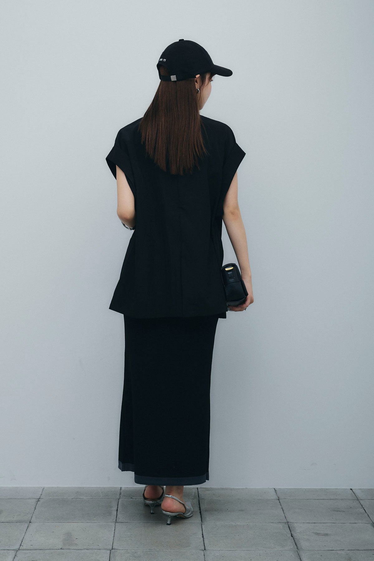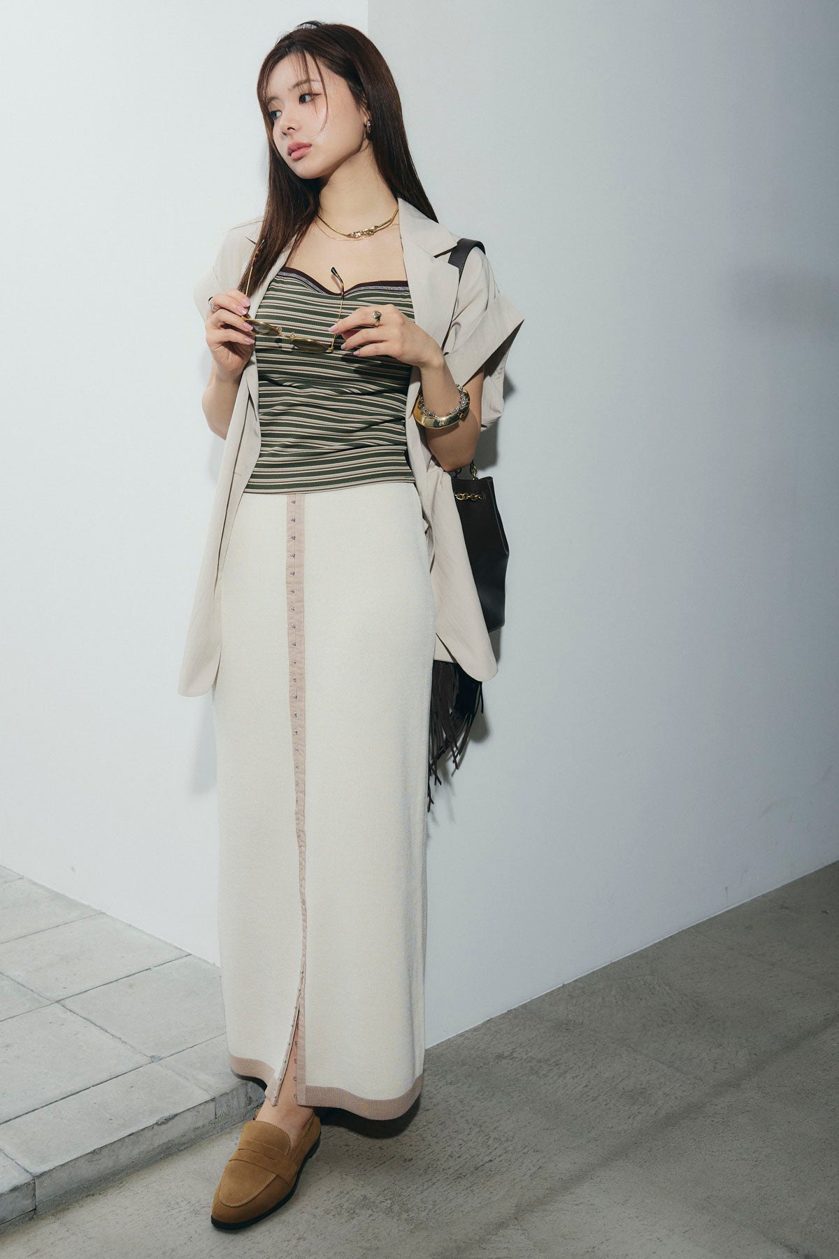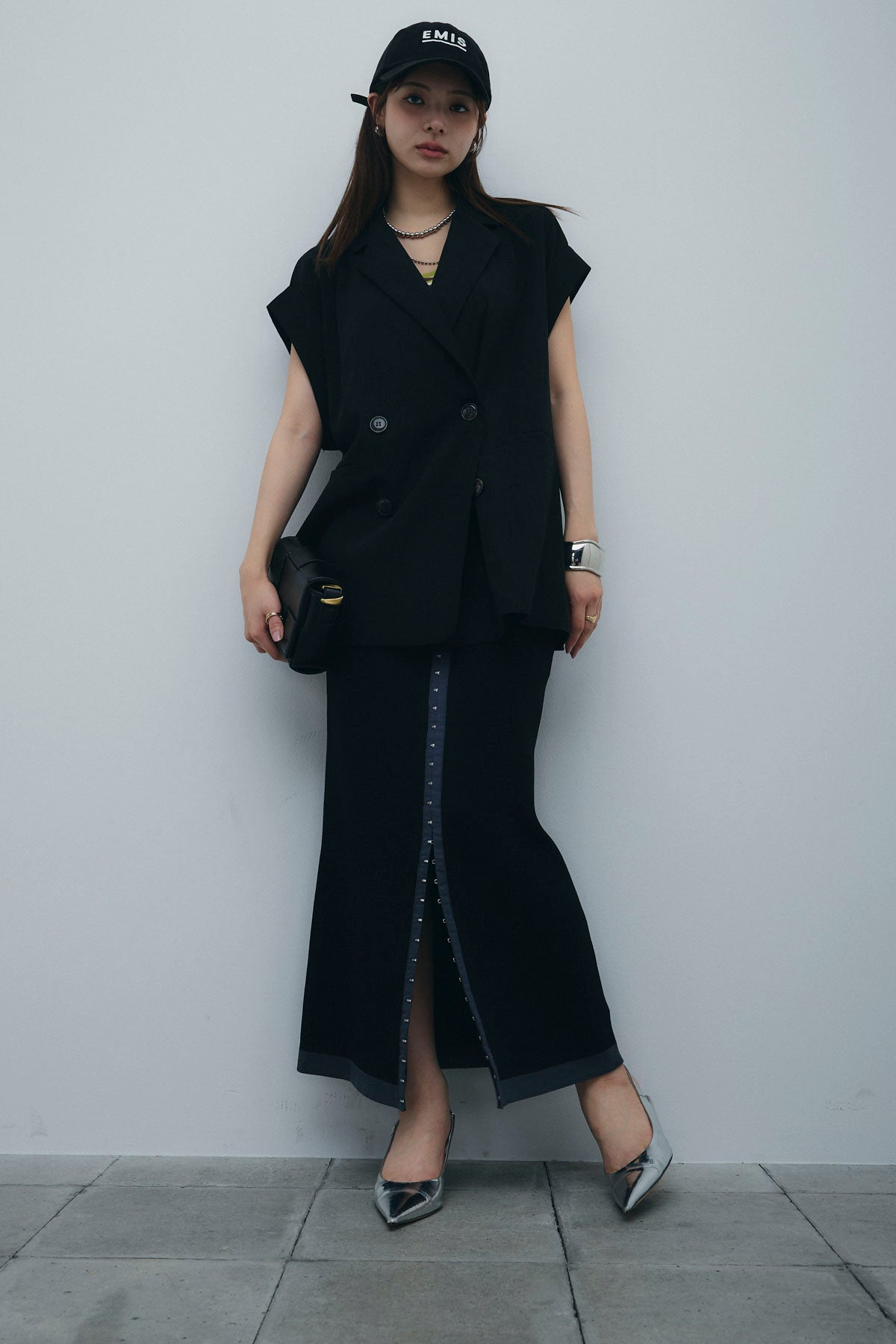 [予約/SET]リネンライクダブルジレ+リネンタッチ配色ホックスカート(2set)