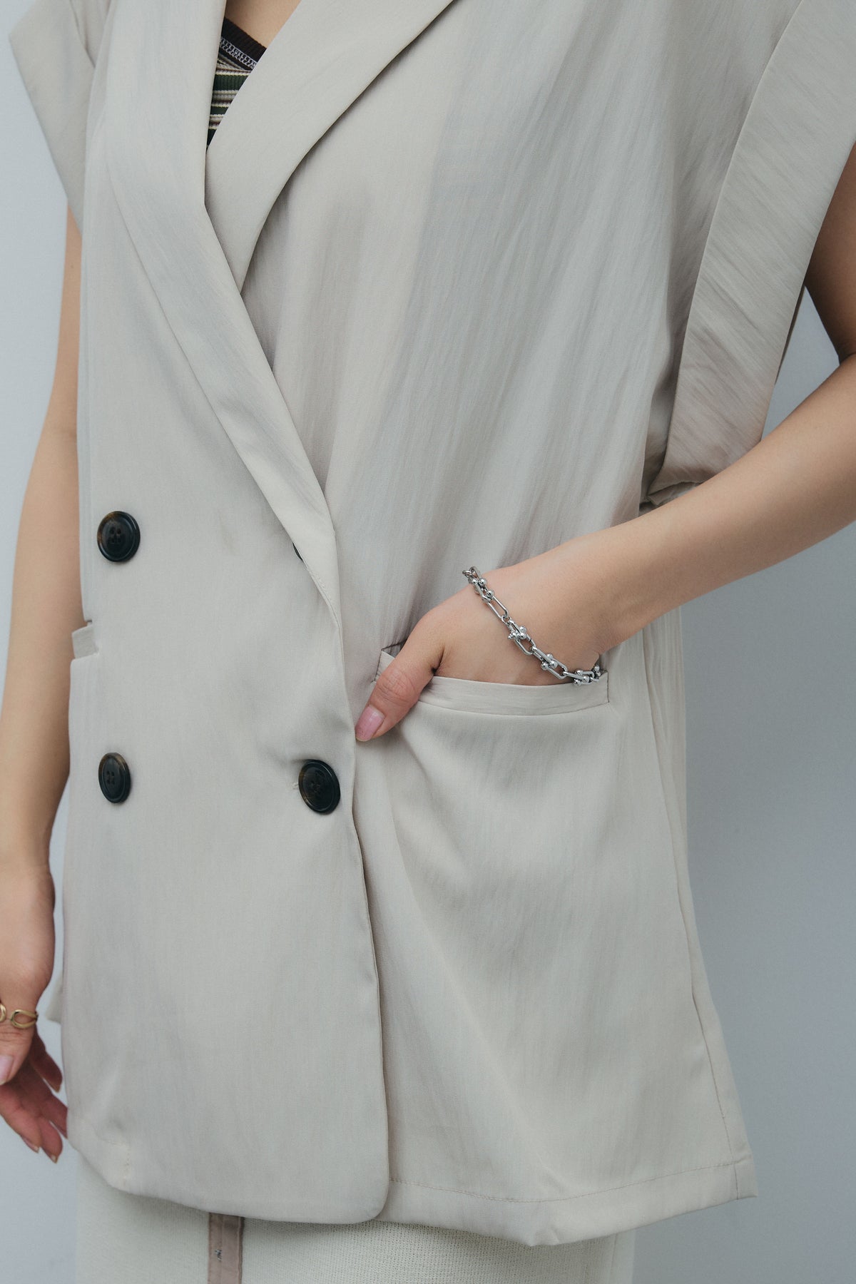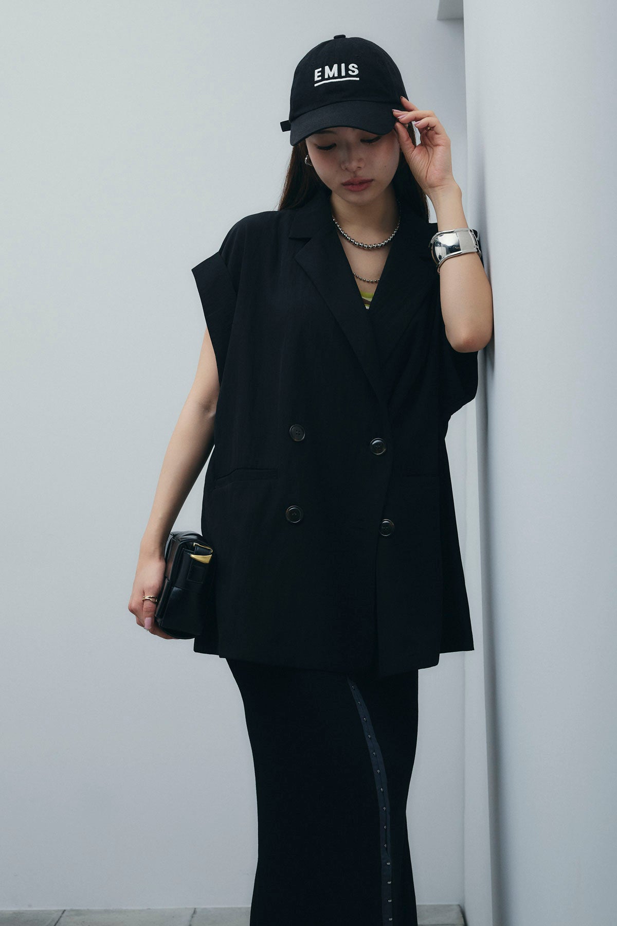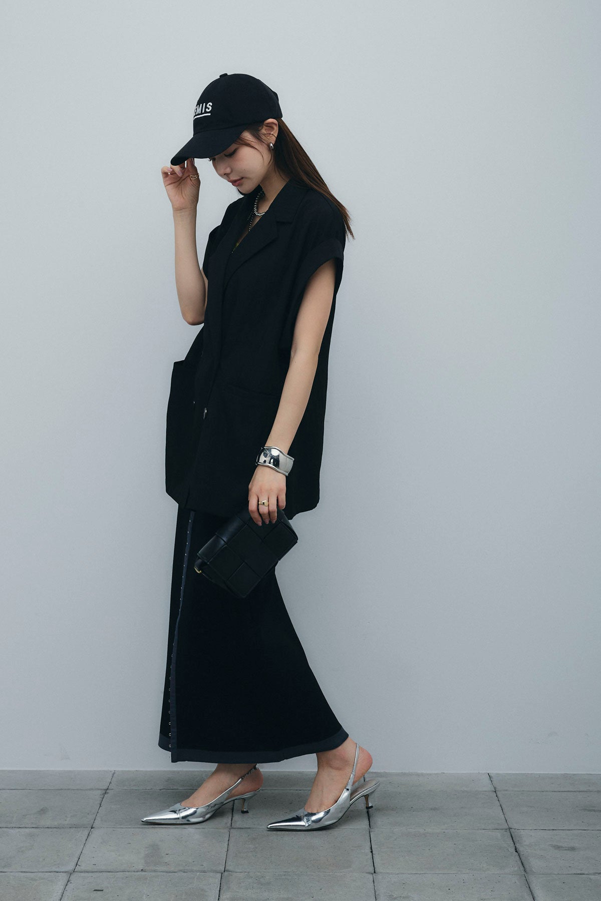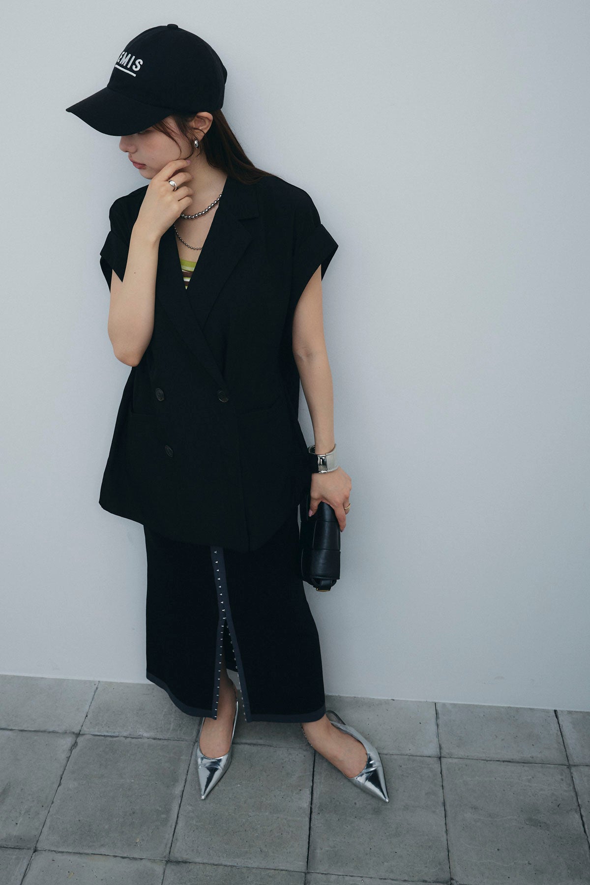 [予約/SET]リネンライクダブルジレ+リネンタッチ配色ホックスカート(2set)