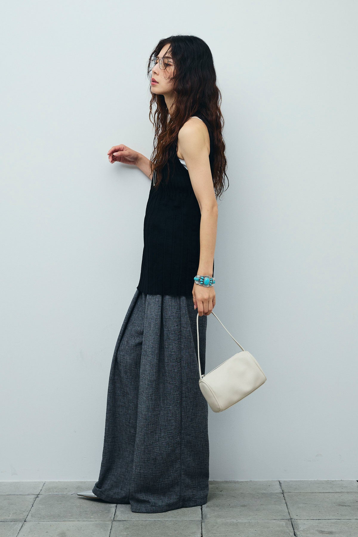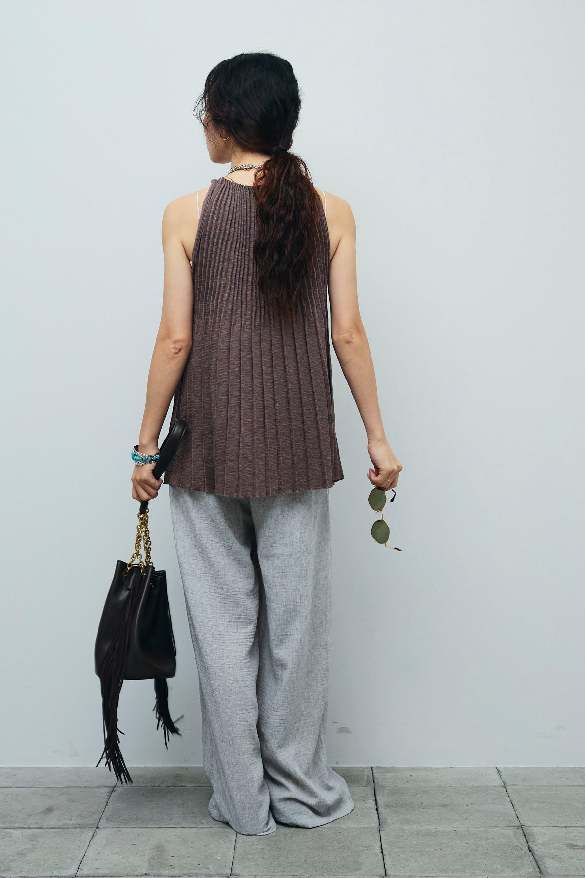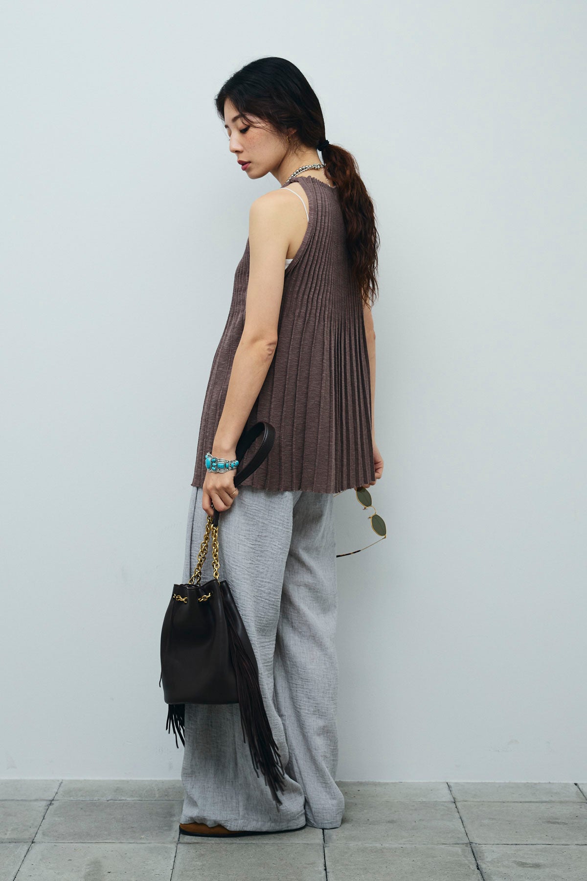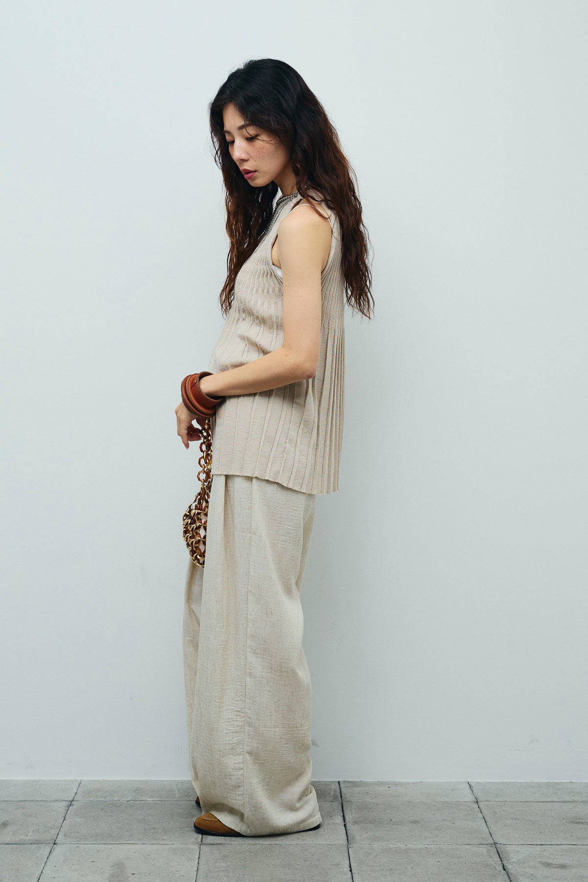 [予約/SET]プリーツアメスリニット+ベルト付きタックサマーパンツ(2set)