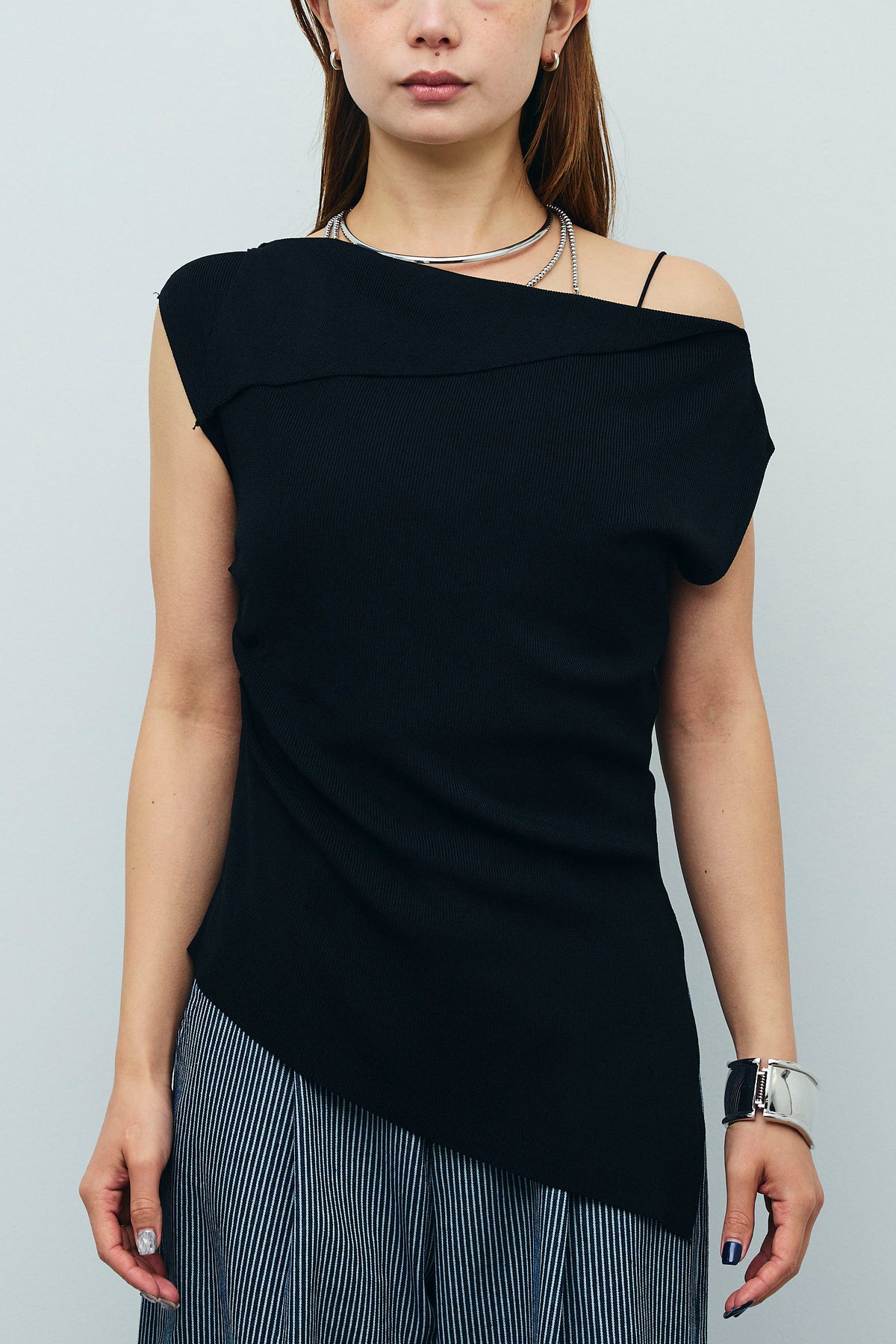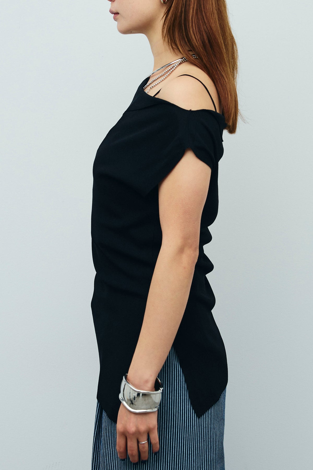 ◆ アシンメトリーオフショルサマーニット