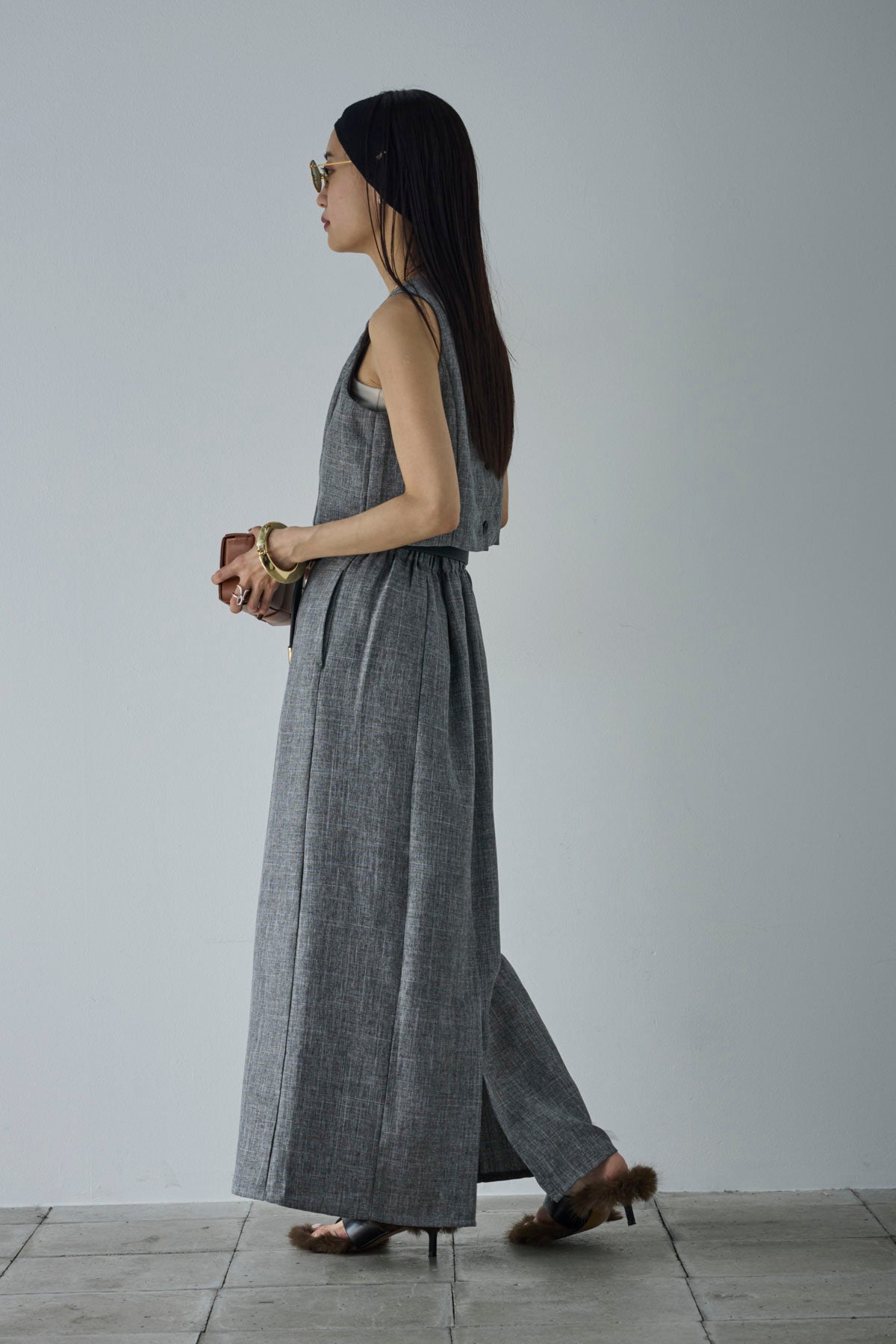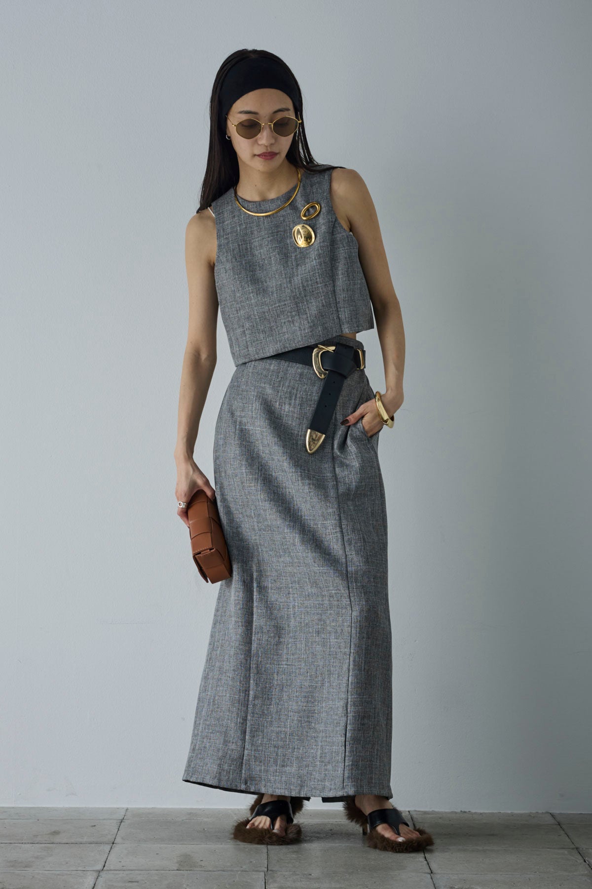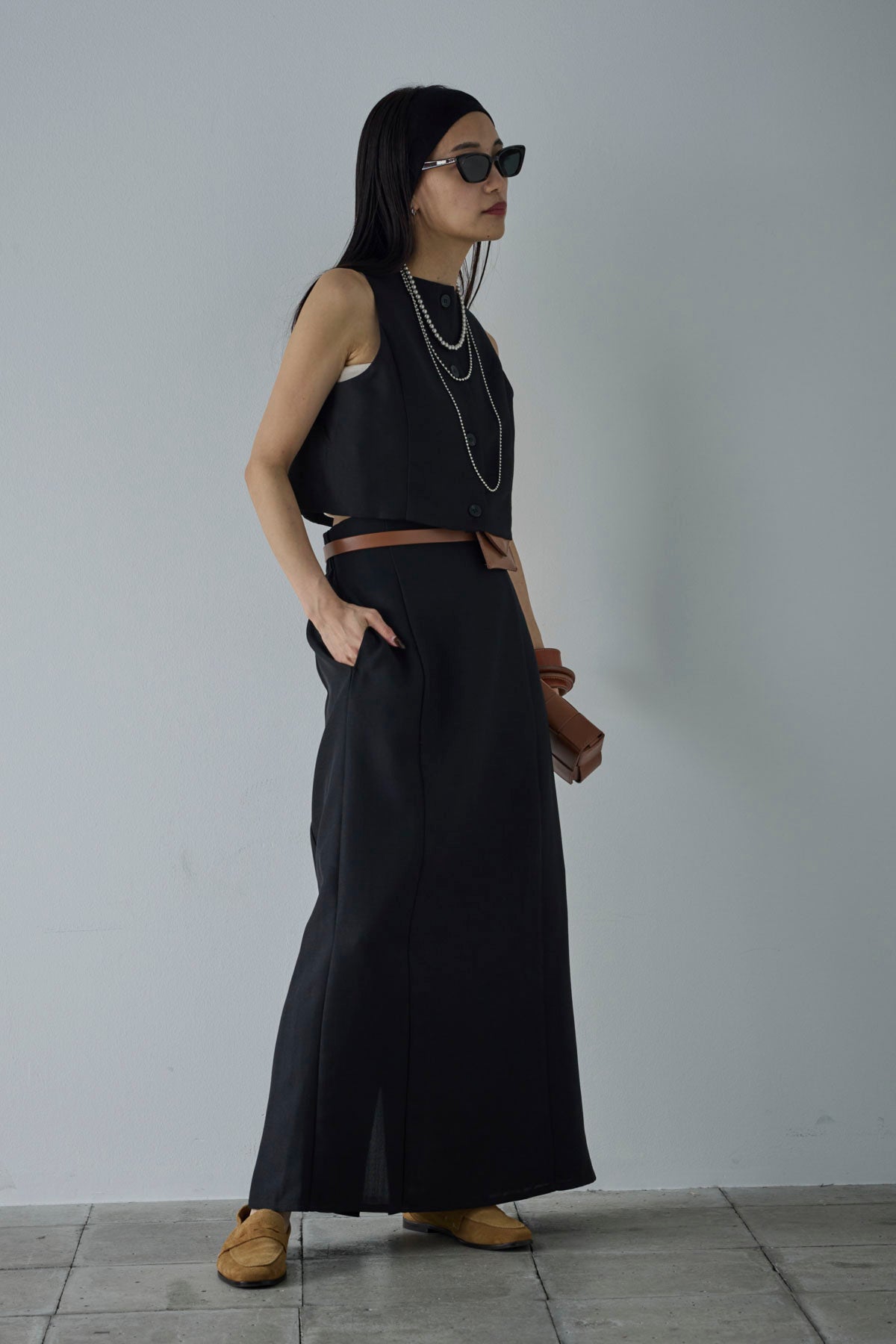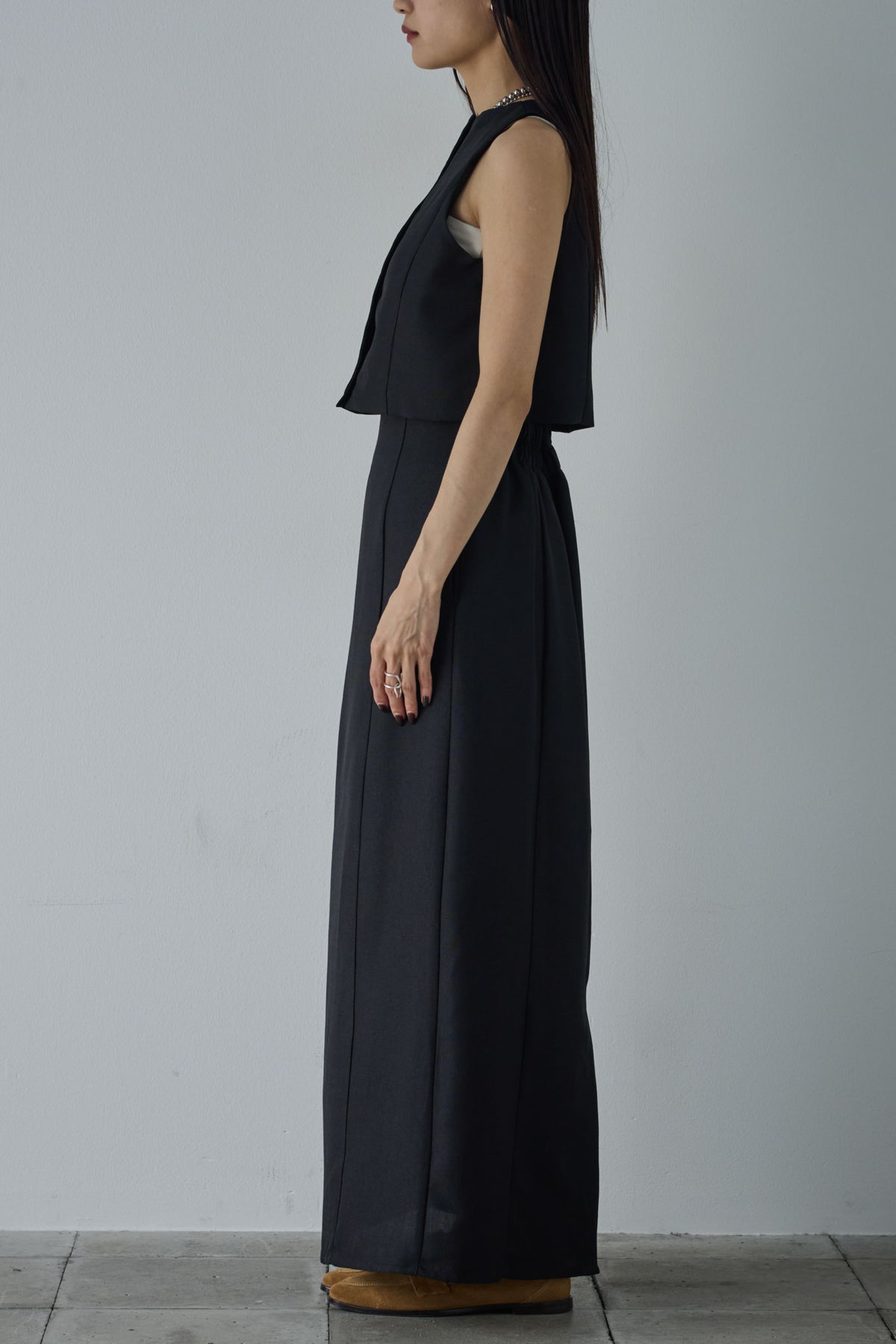 [予約/SET]リネンタッチクロップドベスト+リネンタッチハイウエストスカート(2set)