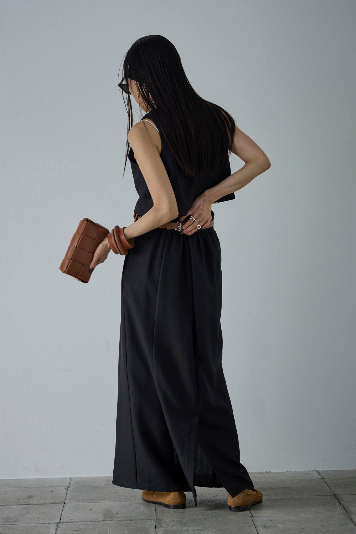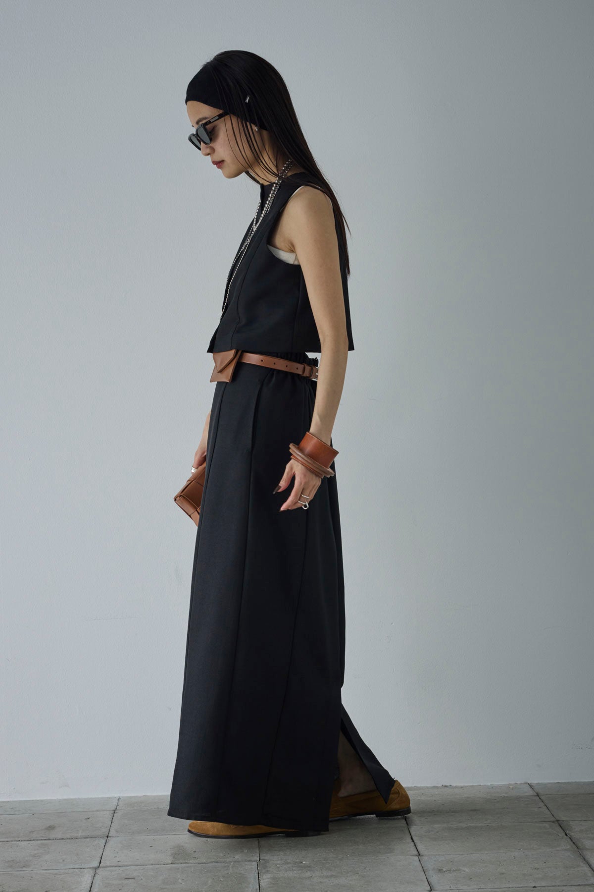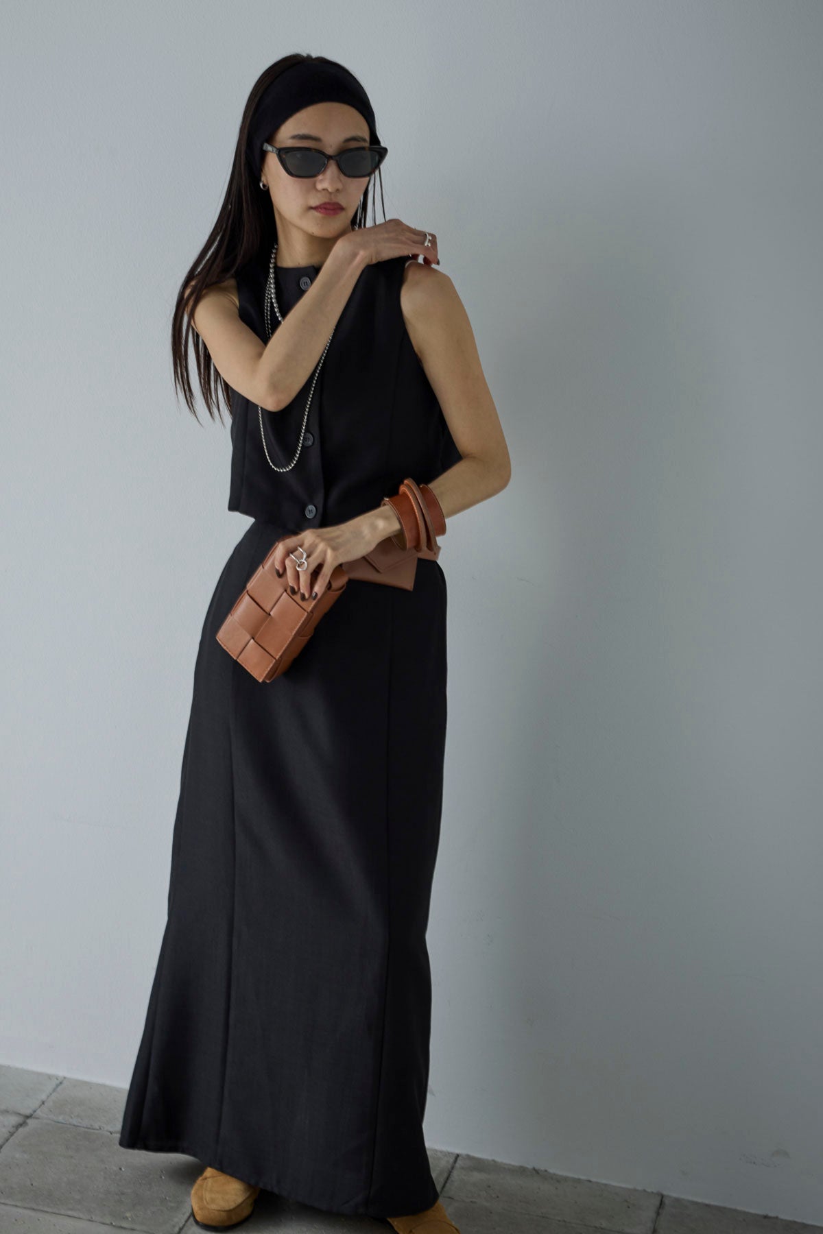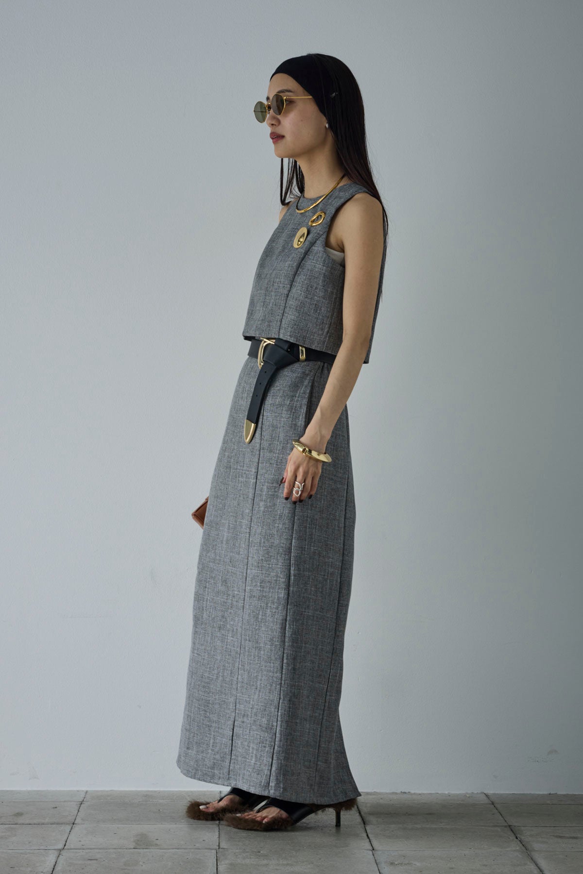 [予約/SET]リネンタッチクロップドベスト+リネンタッチハイウエストスカート(2set)
