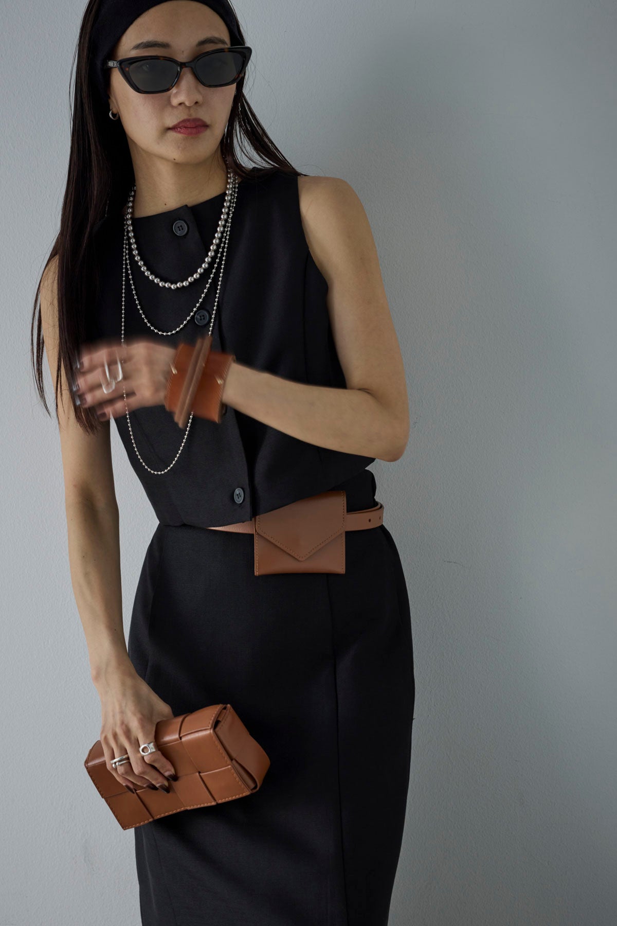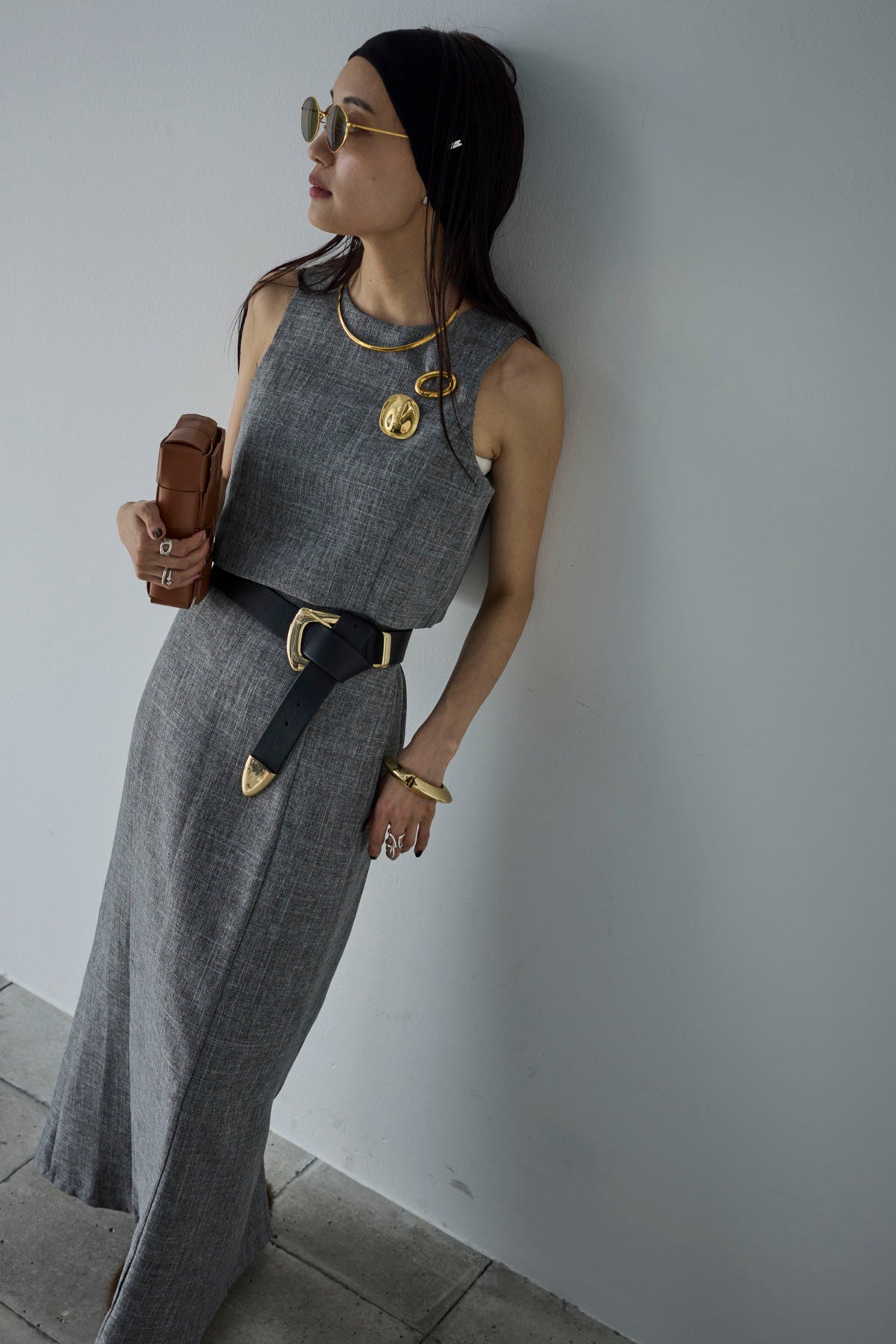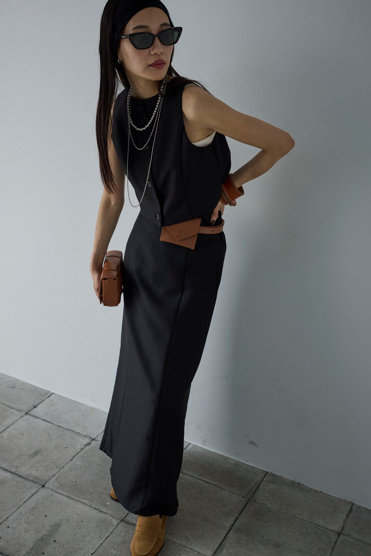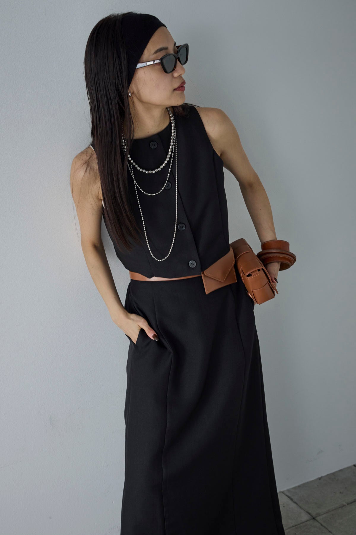 [予約/SET]リネンタッチクロップドベスト+リネンタッチハイウエストスカート(2set)