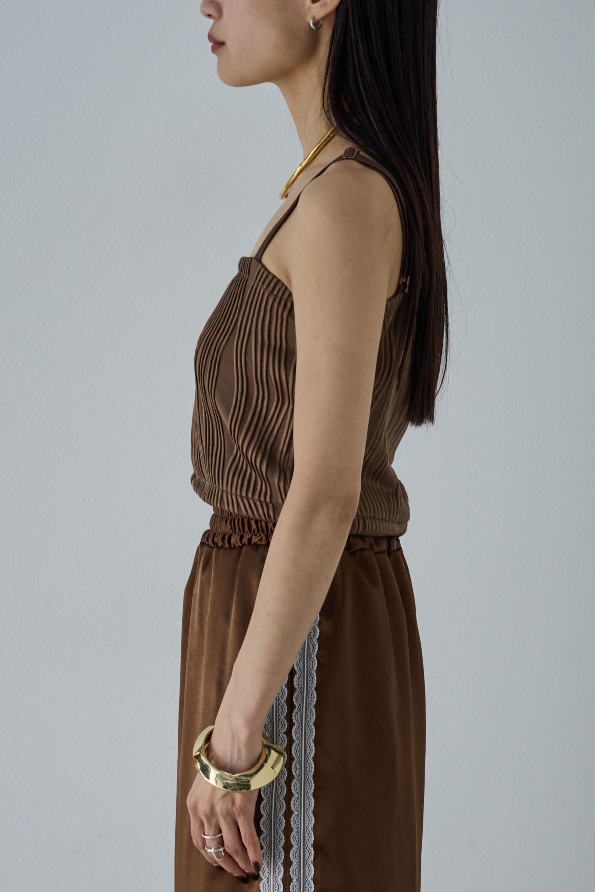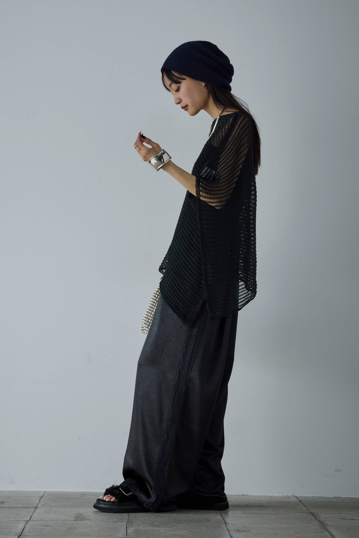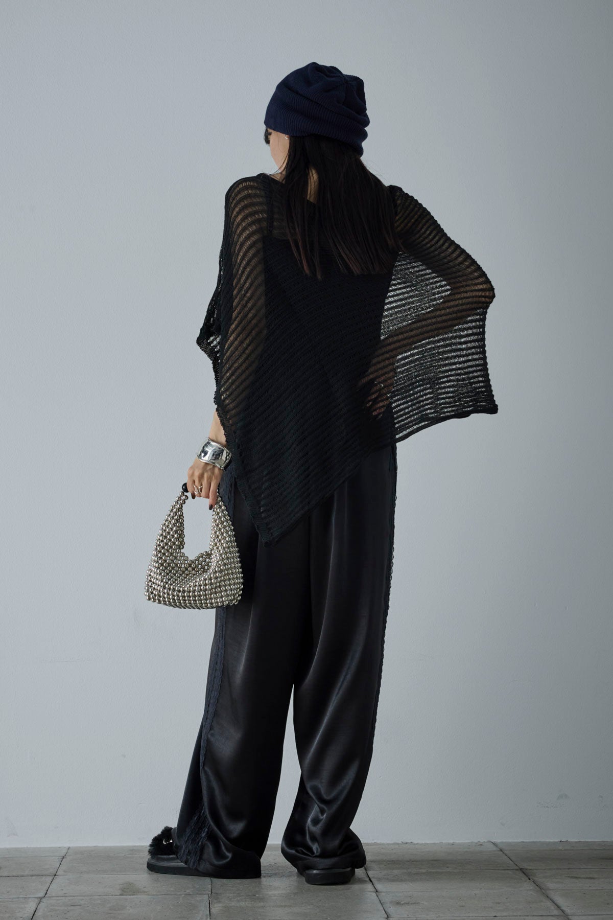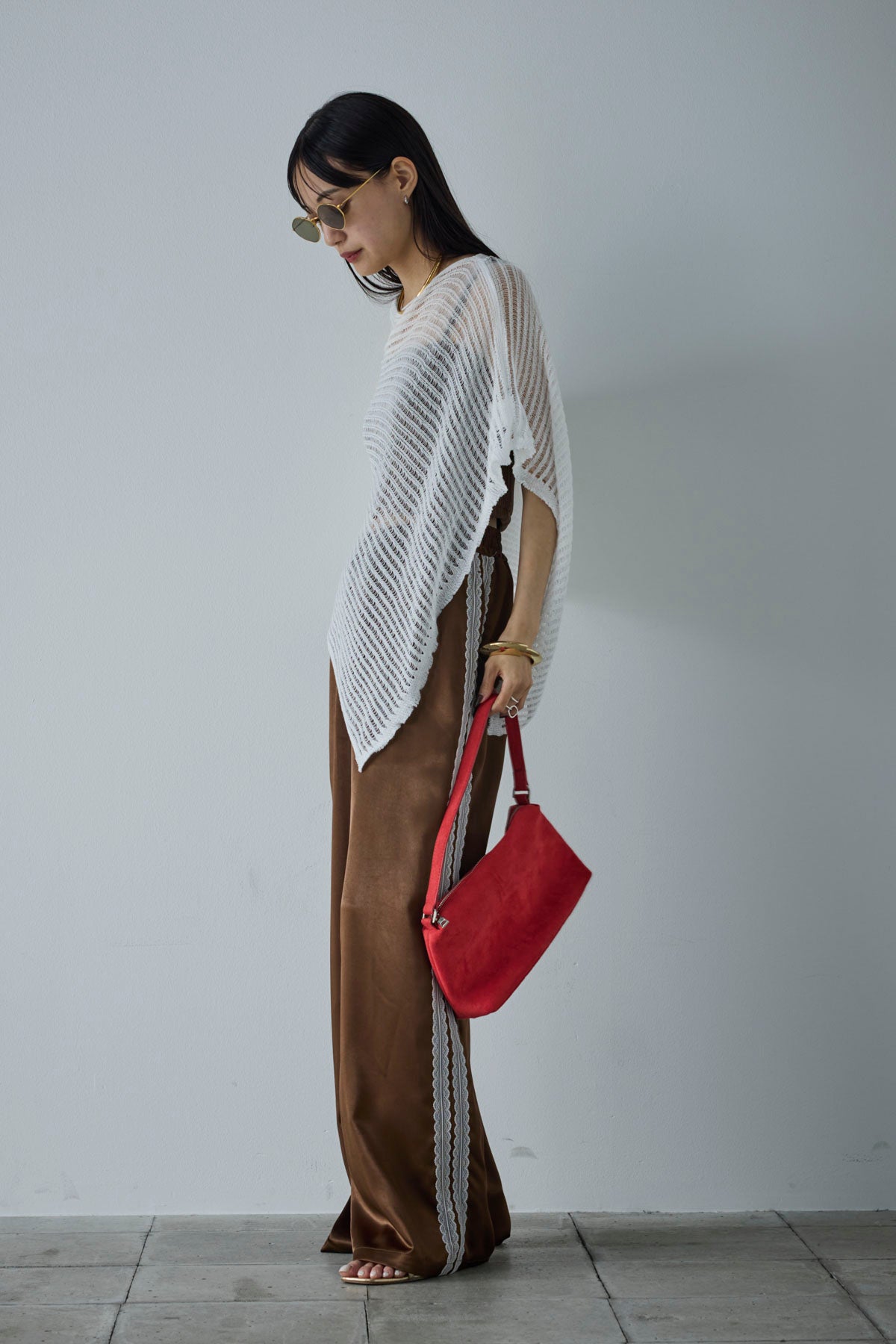 [予約/SET]サマーニットアシンメトリーポンチョ+ウェーブパイピングショートキャミ+サテンレースラインパンツ(3set)