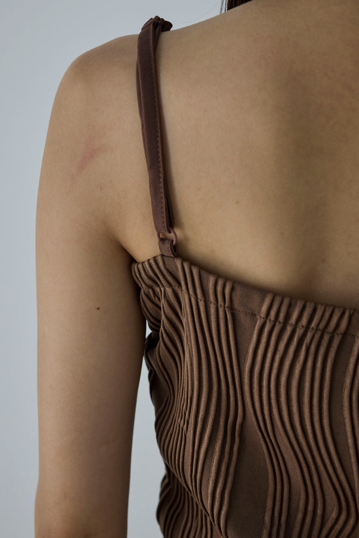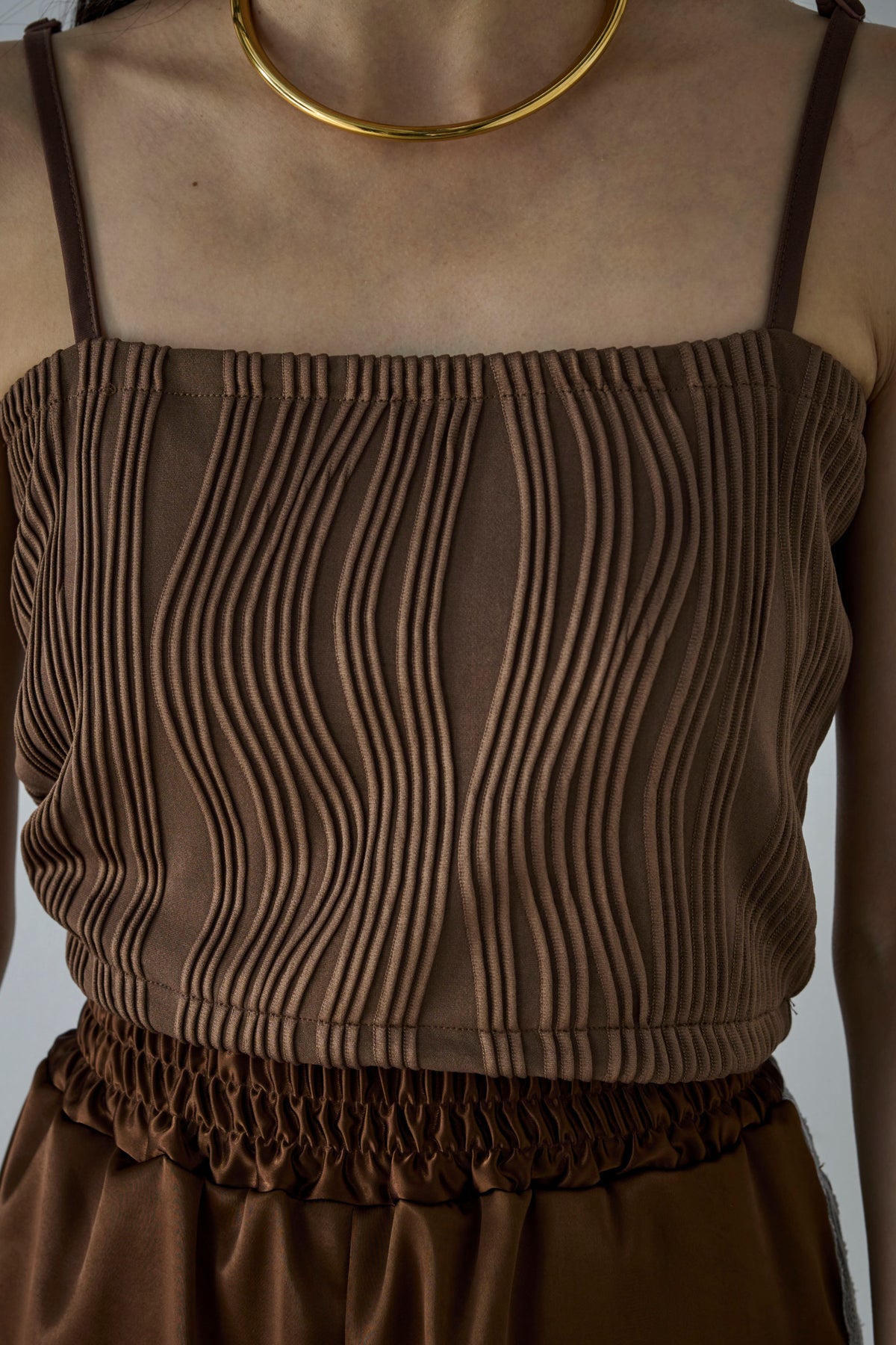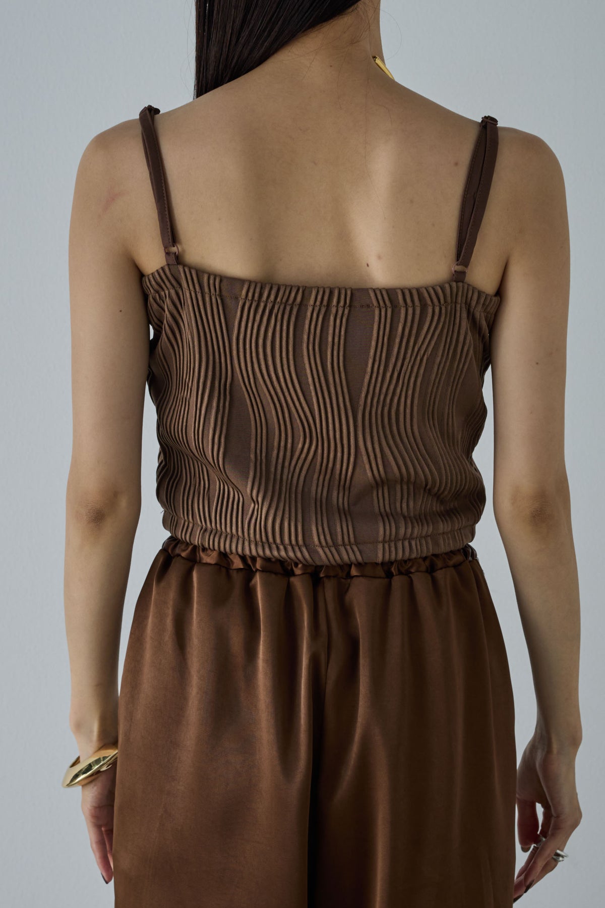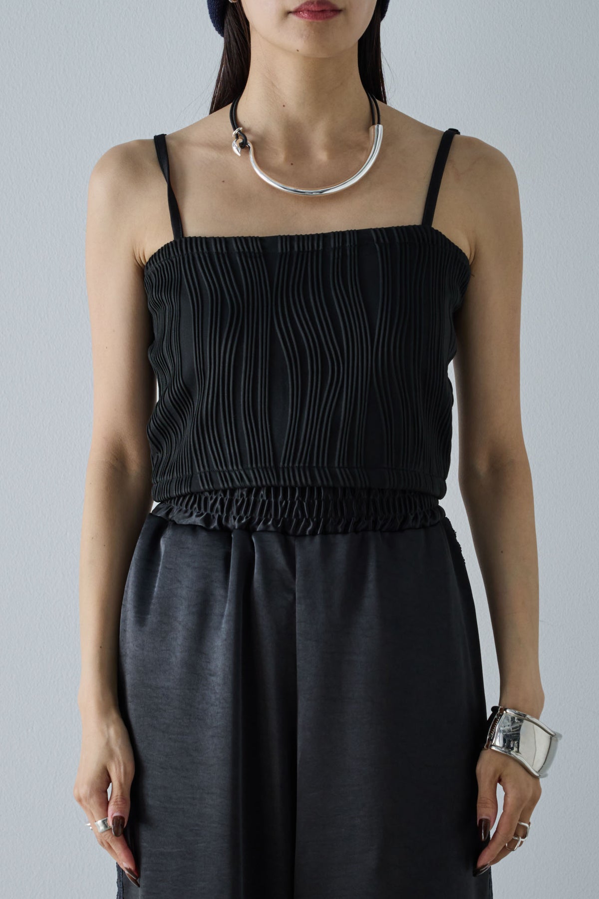 [予約/SET]サマーニットアシンメトリーポンチョ+ウェーブパイピングショートキャミ+サテンレースラインパンツ(3set)