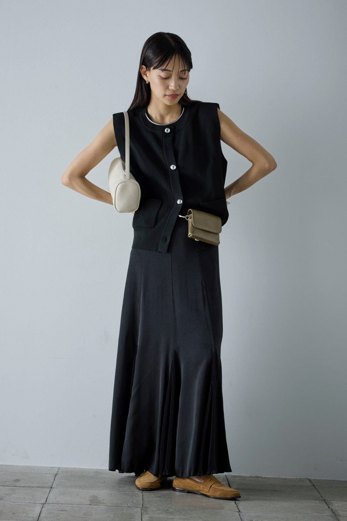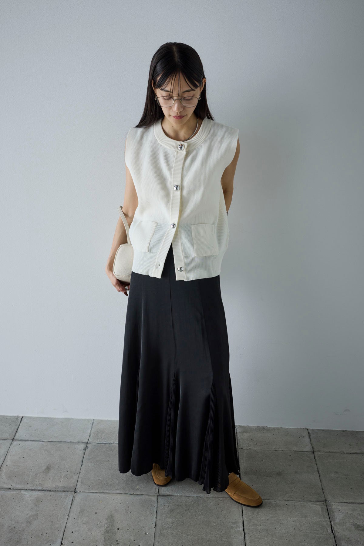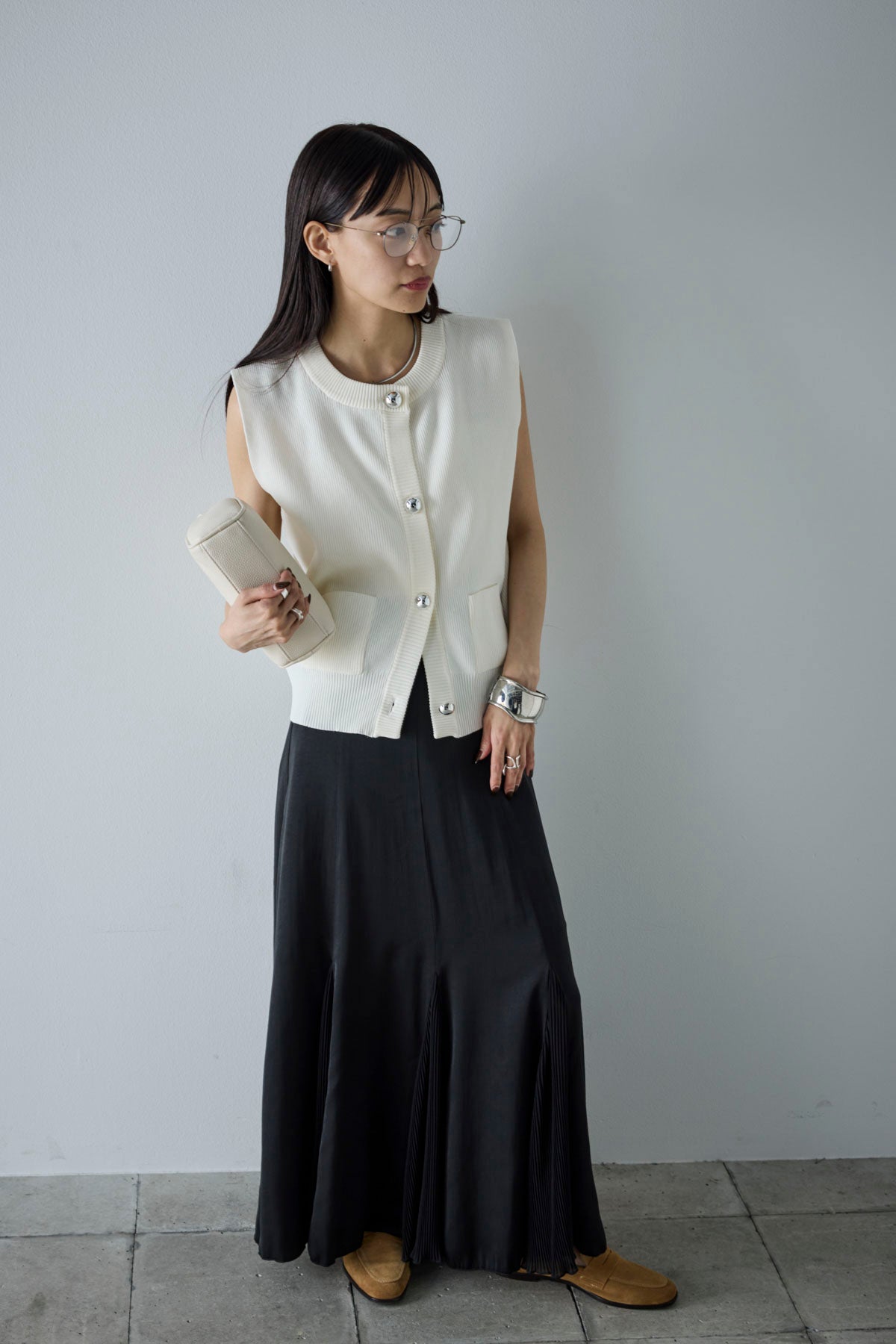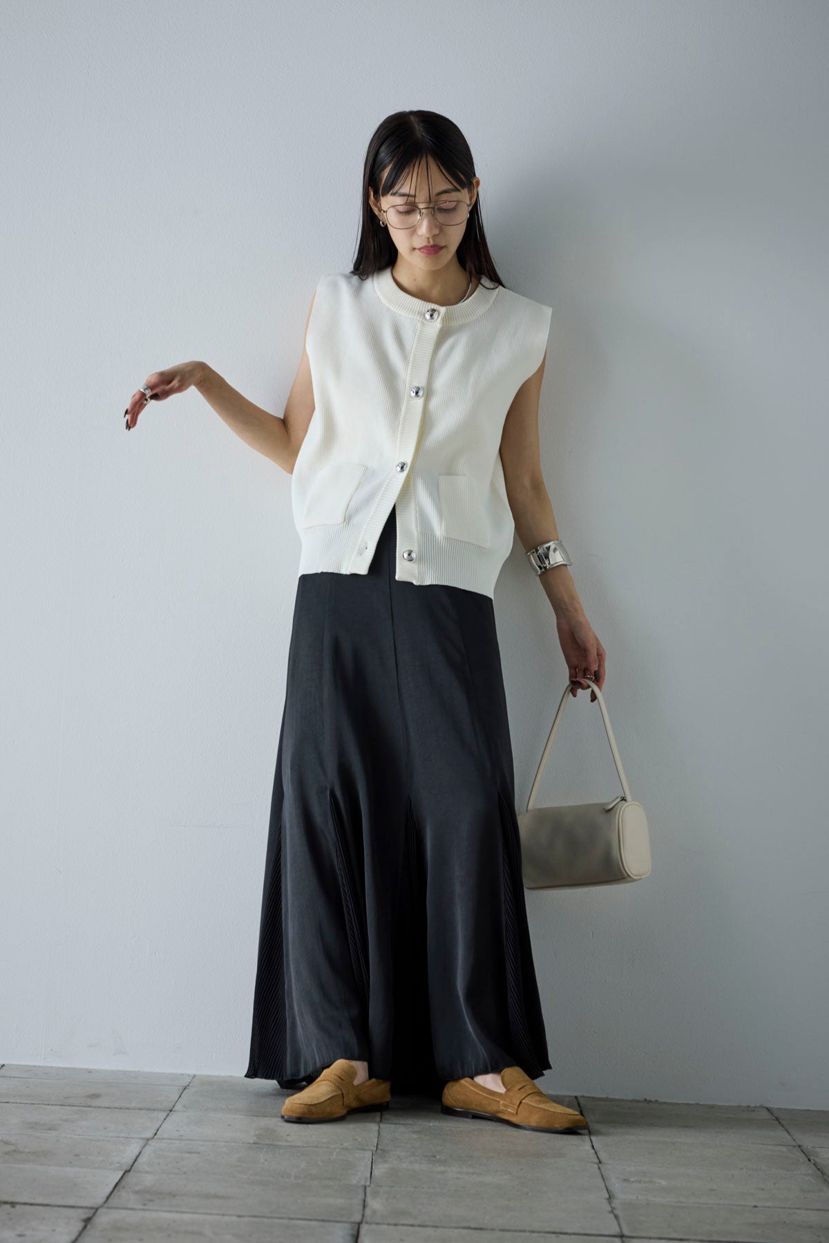 [予約/SET]メタルボタンニットベスト+プリーツシアー切り替えスカート(2set)