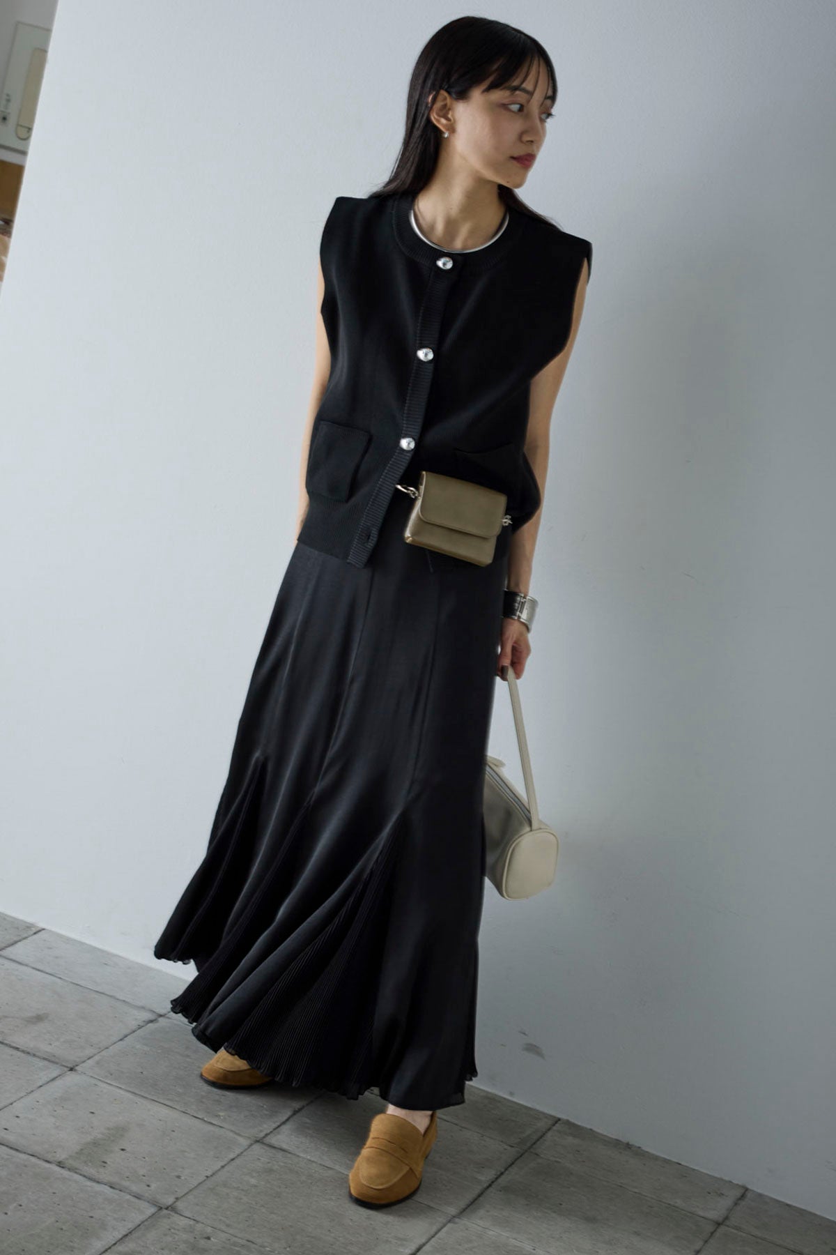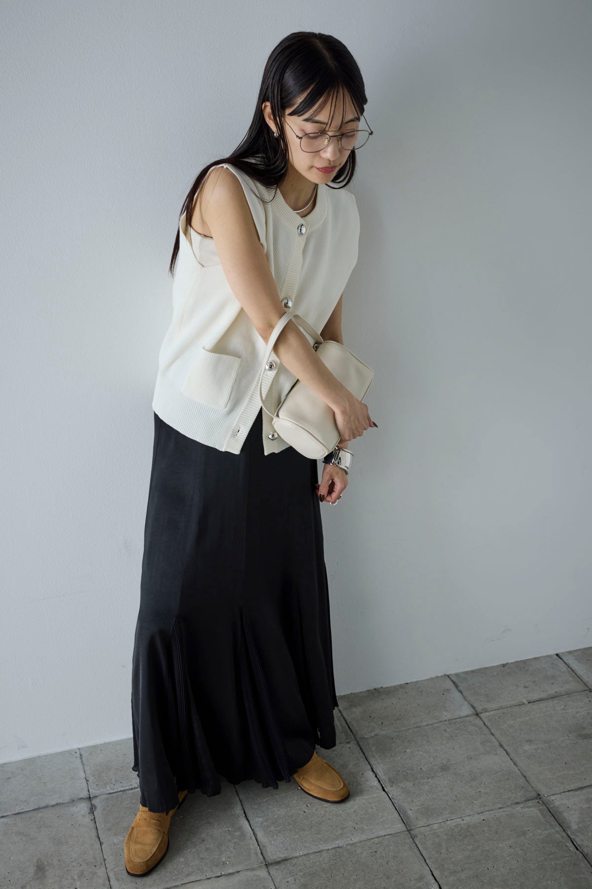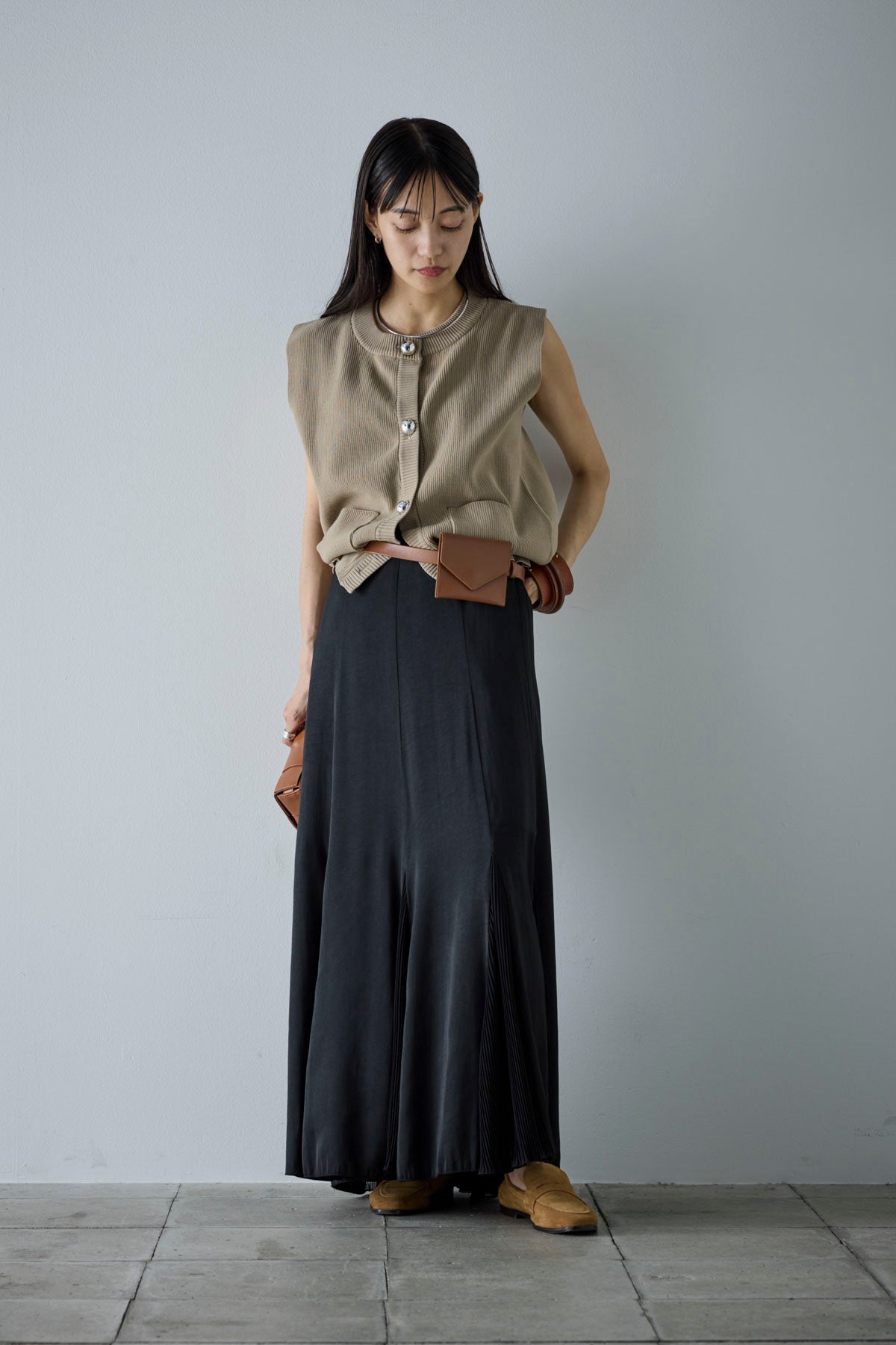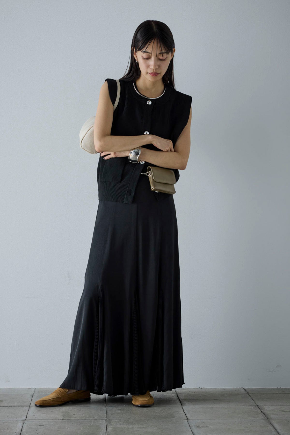[予約/SET]メタルボタンニットベスト+プリーツシアー切り替えスカート(2set)