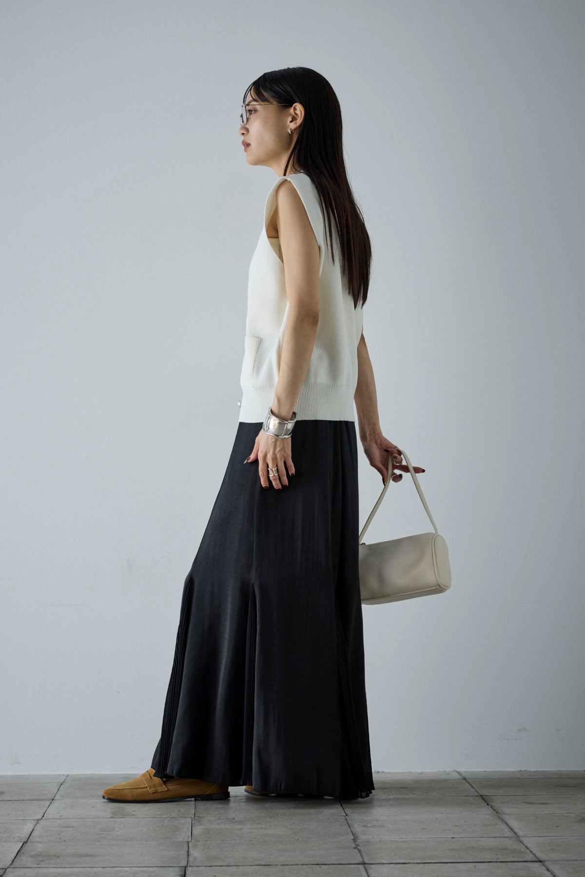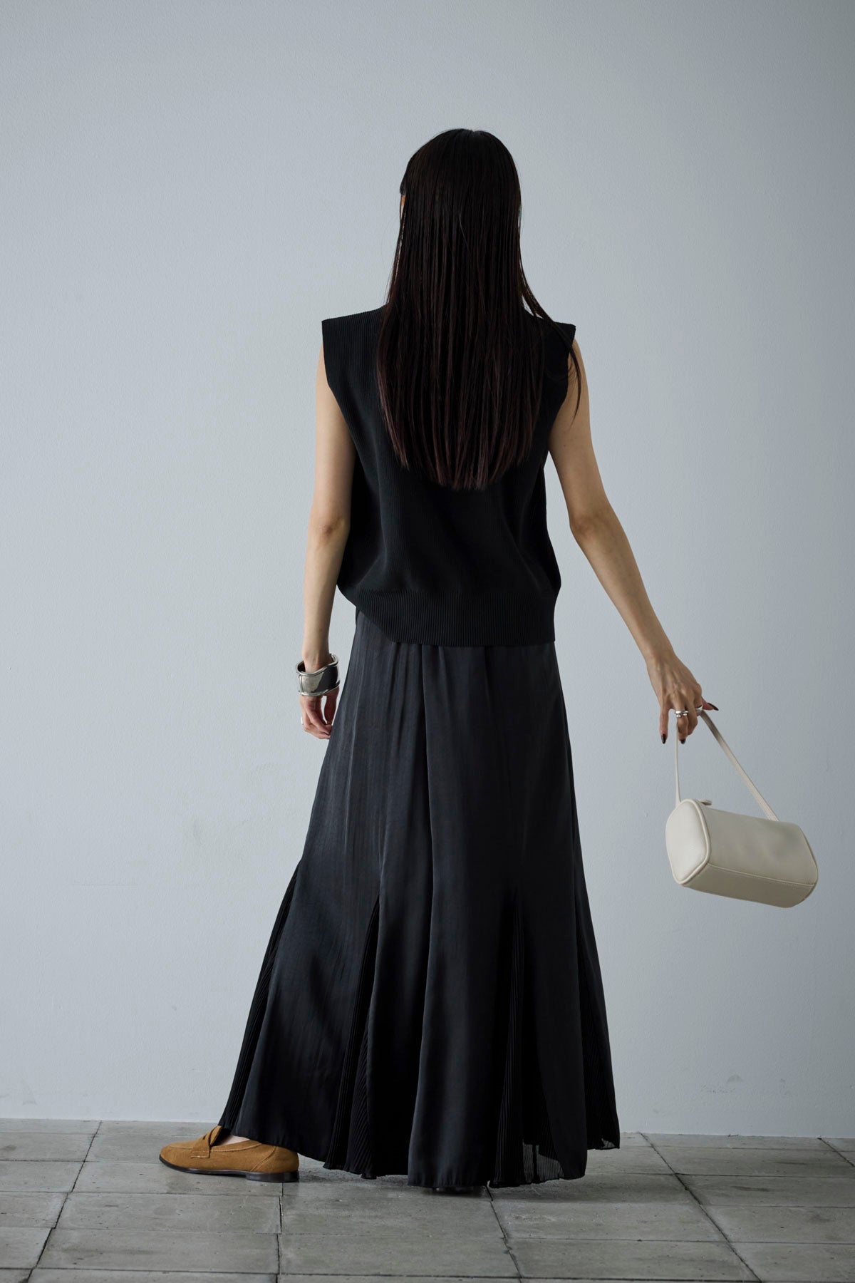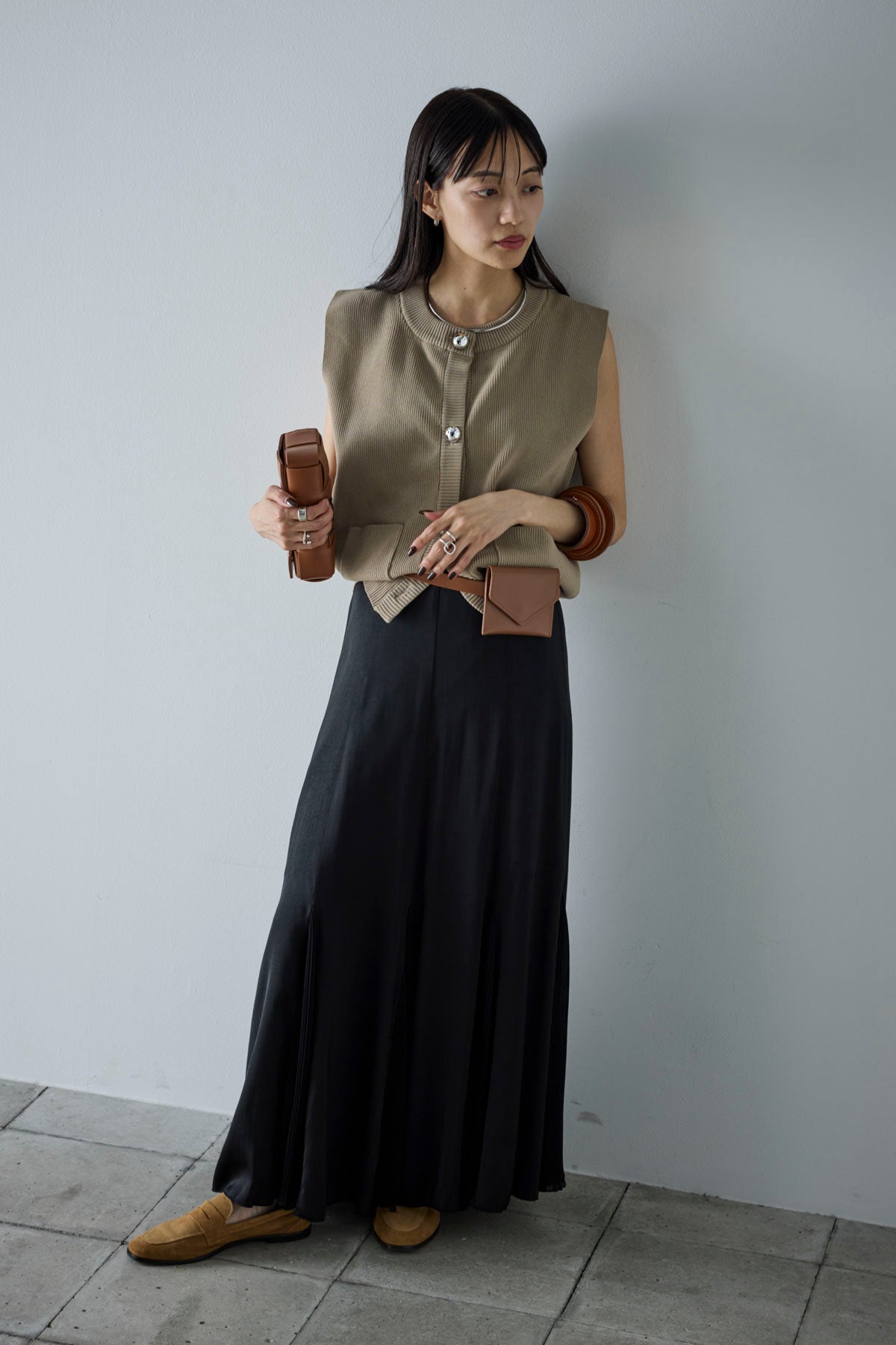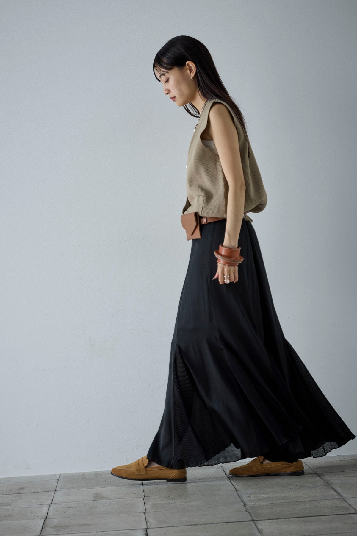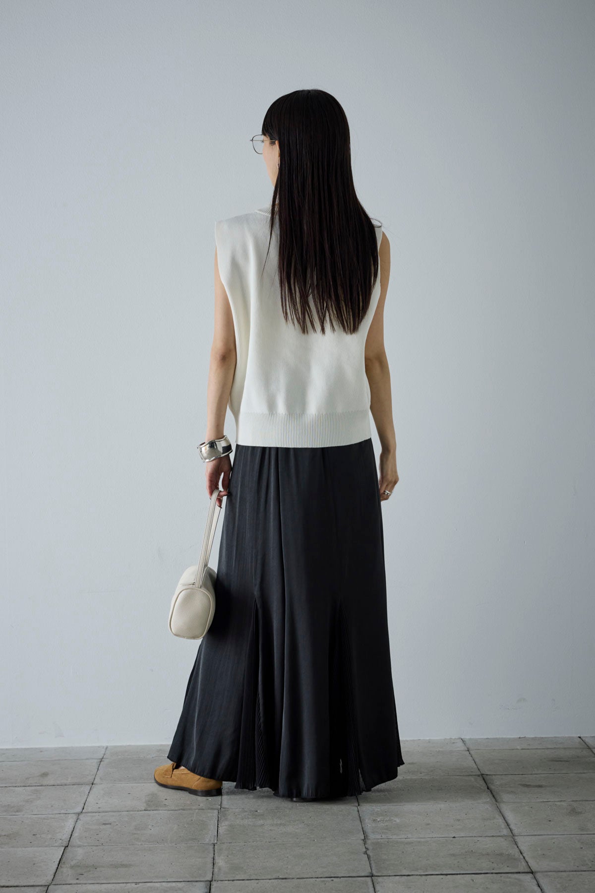 [予約/SET]メタルボタンニットベスト+プリーツシアー切り替えスカート(2set)