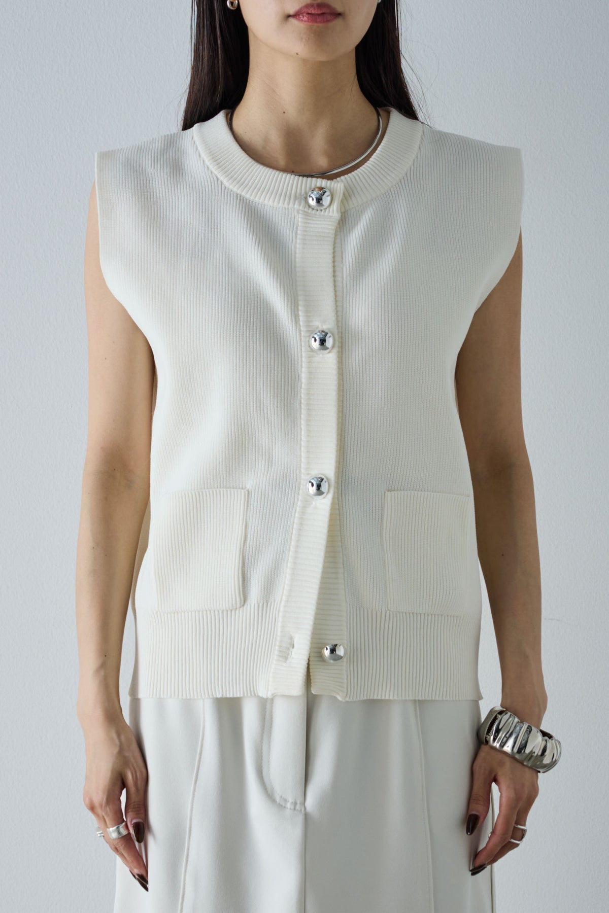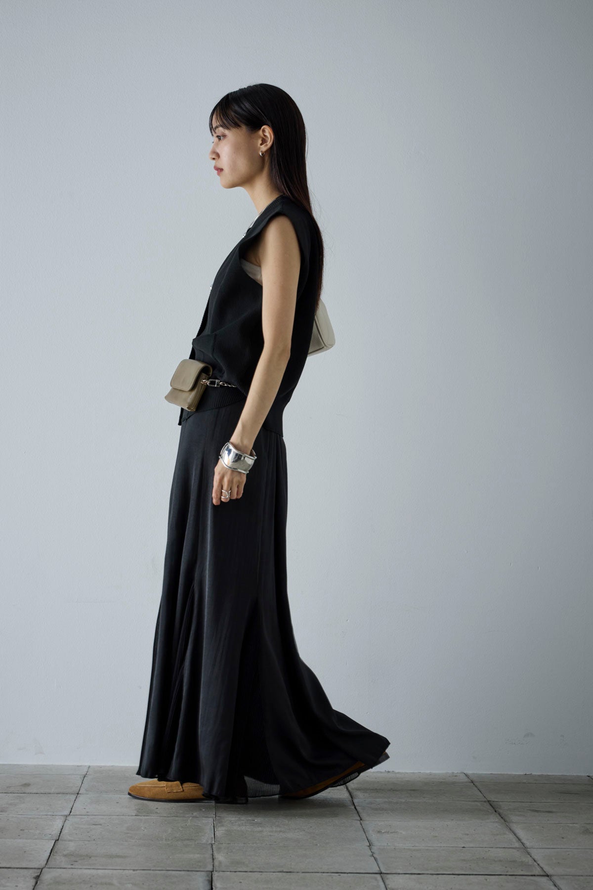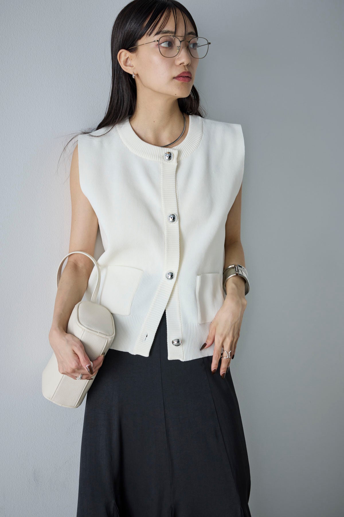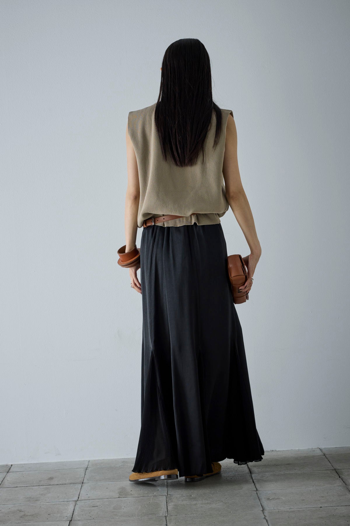 [予約/SET]メタルボタンニットベスト+プリーツシアー切り替えスカート(2set)