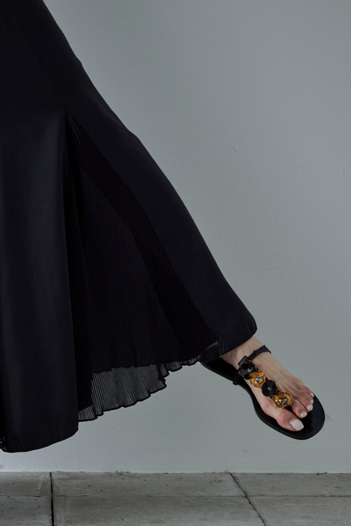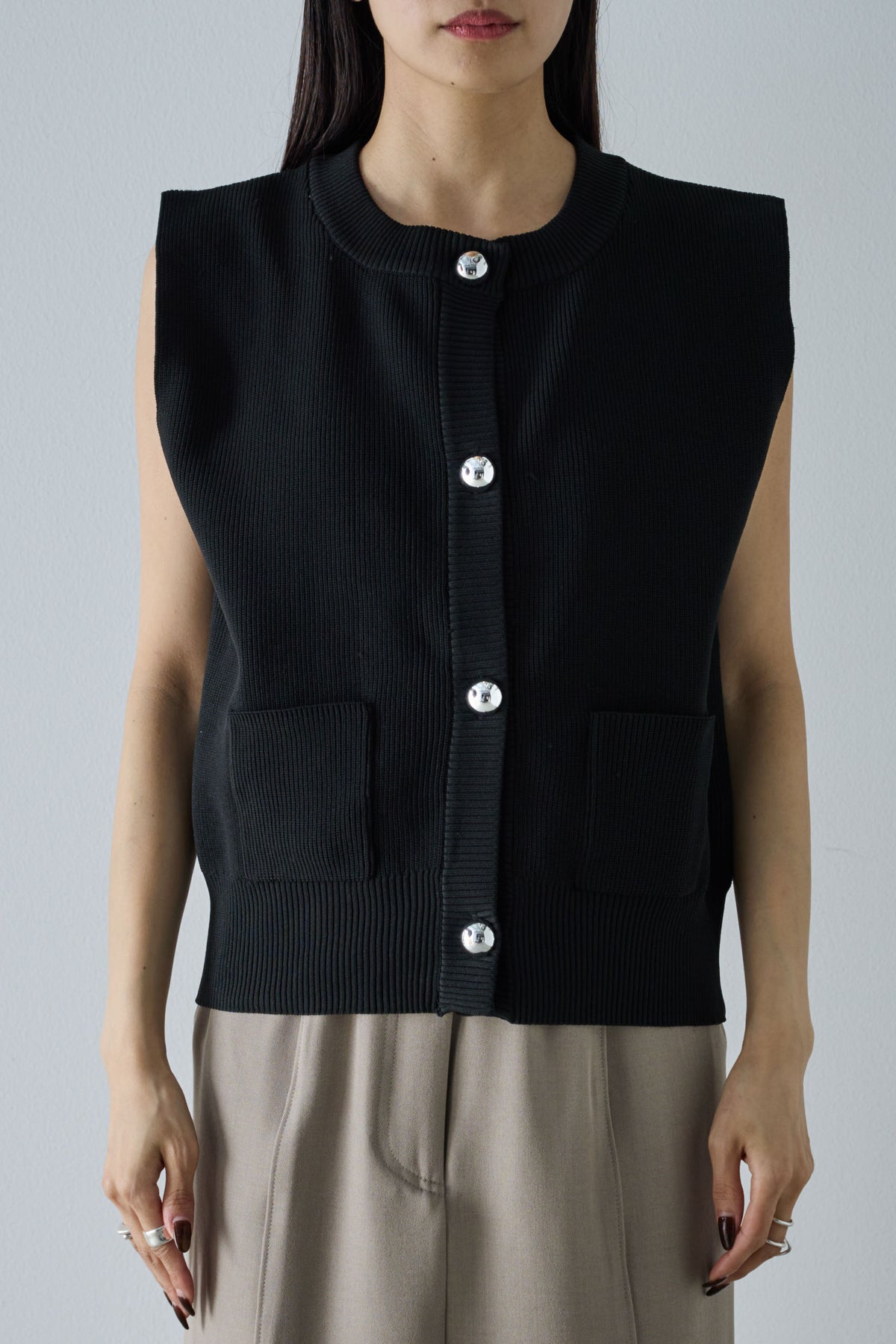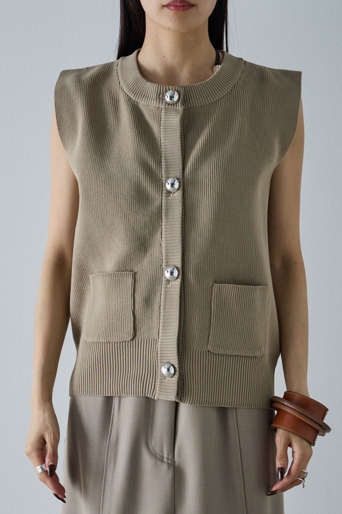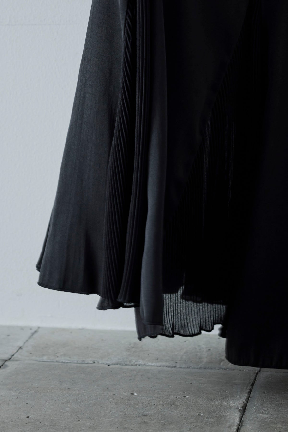 [予約/SET]メタルボタンニットベスト+プリーツシアー切り替えスカート(2set)