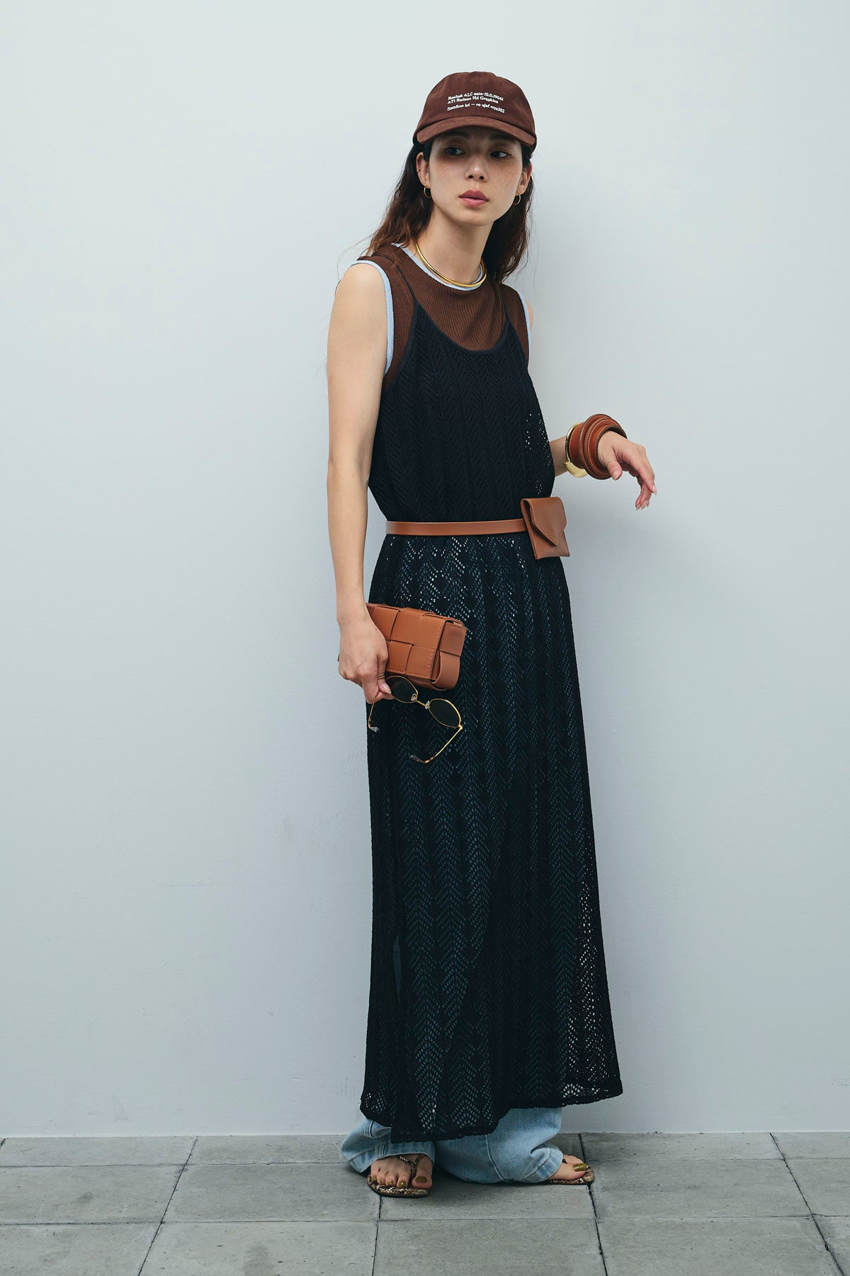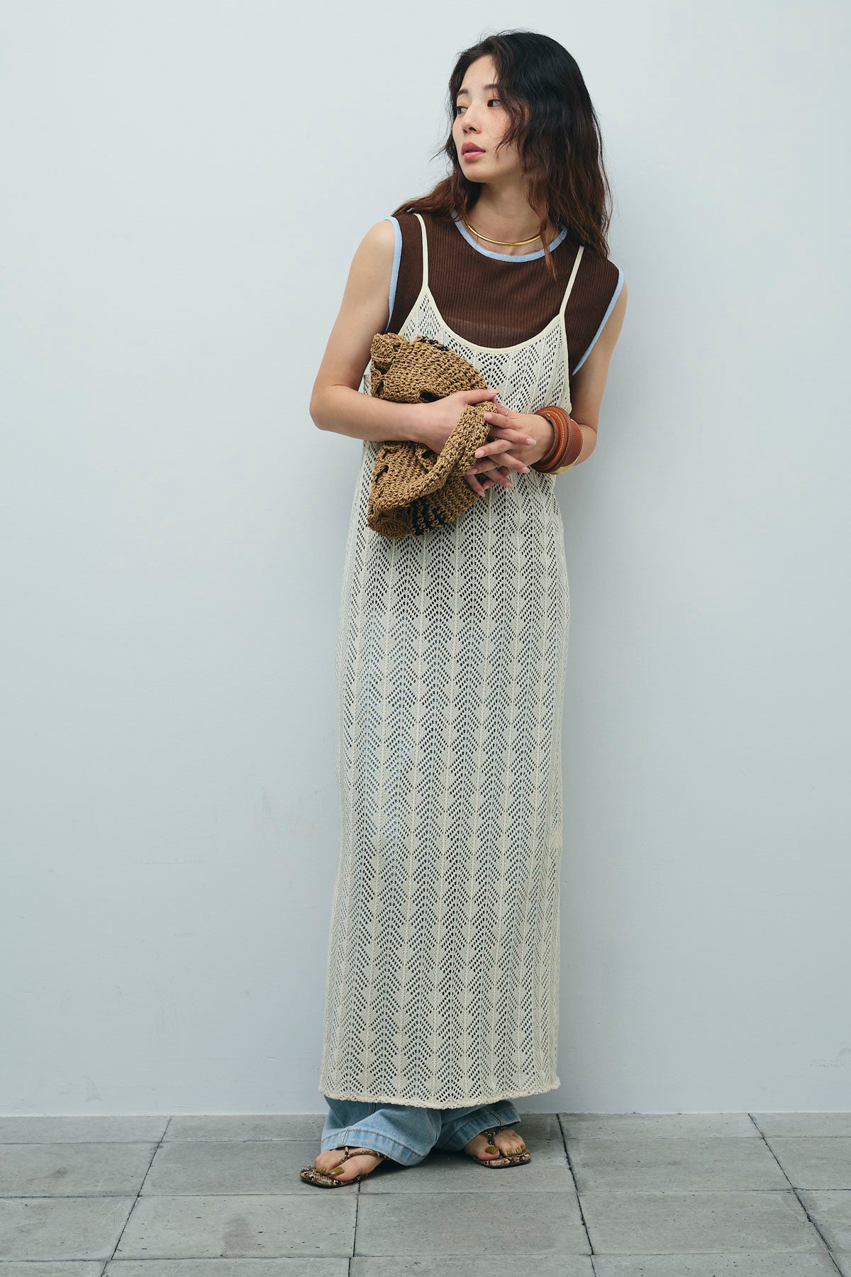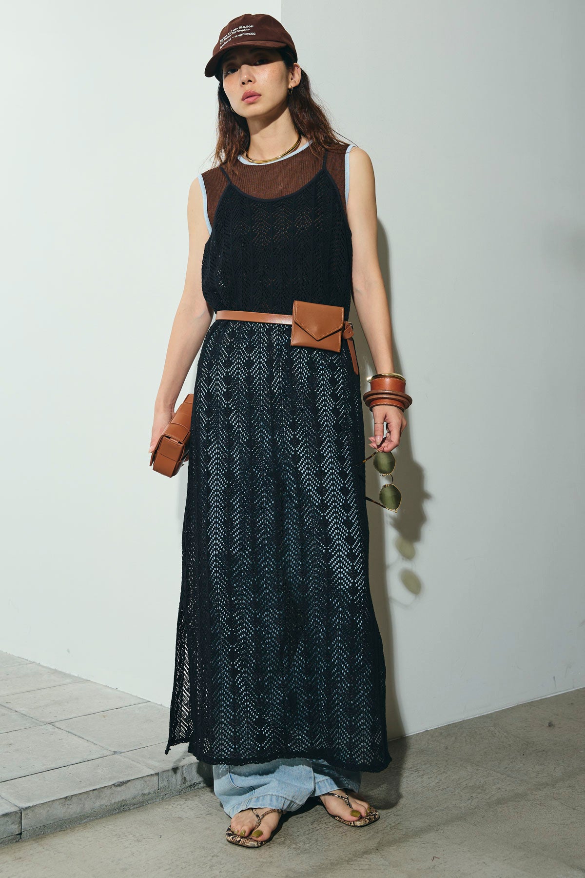 [予約/SET]ニットライクレースキャミOP+ペインターカーブデニムパンツ(2set)