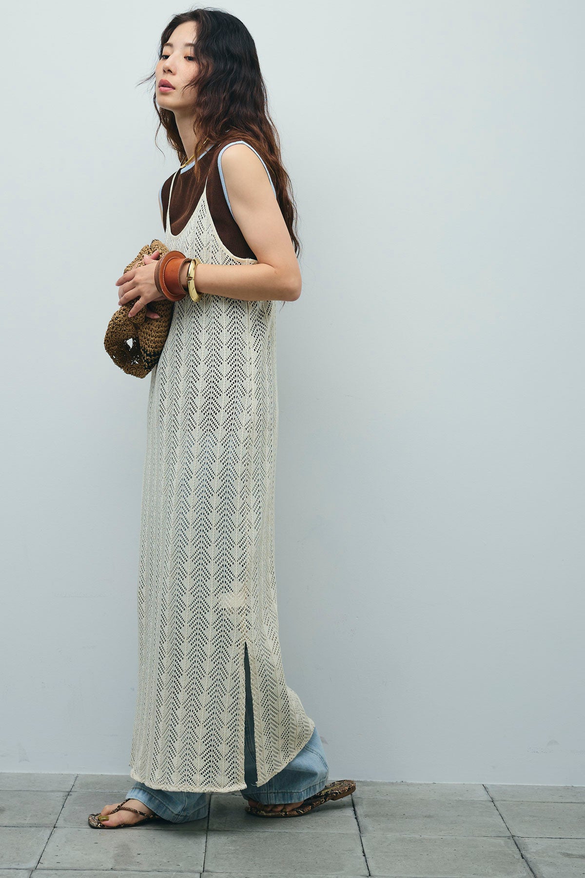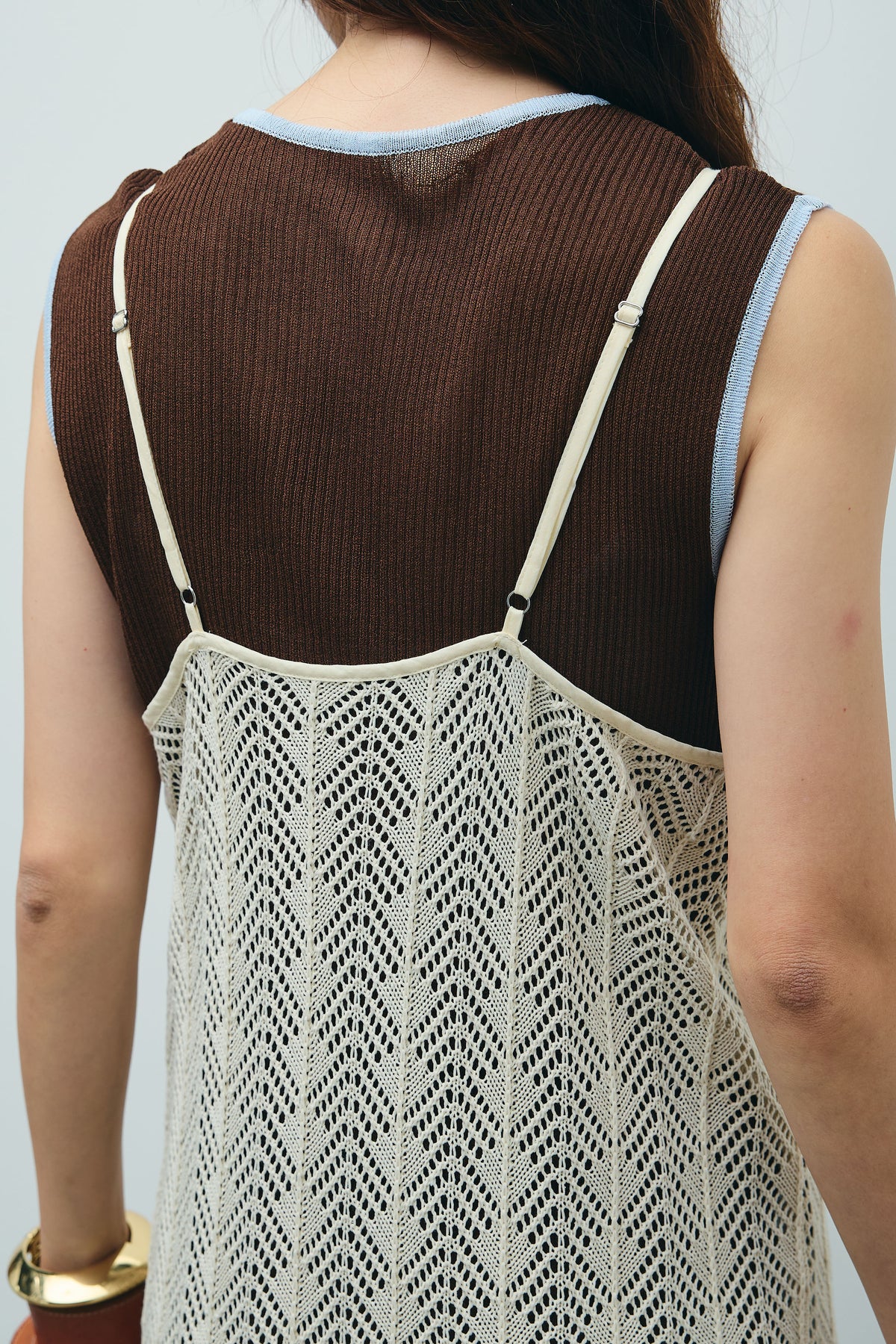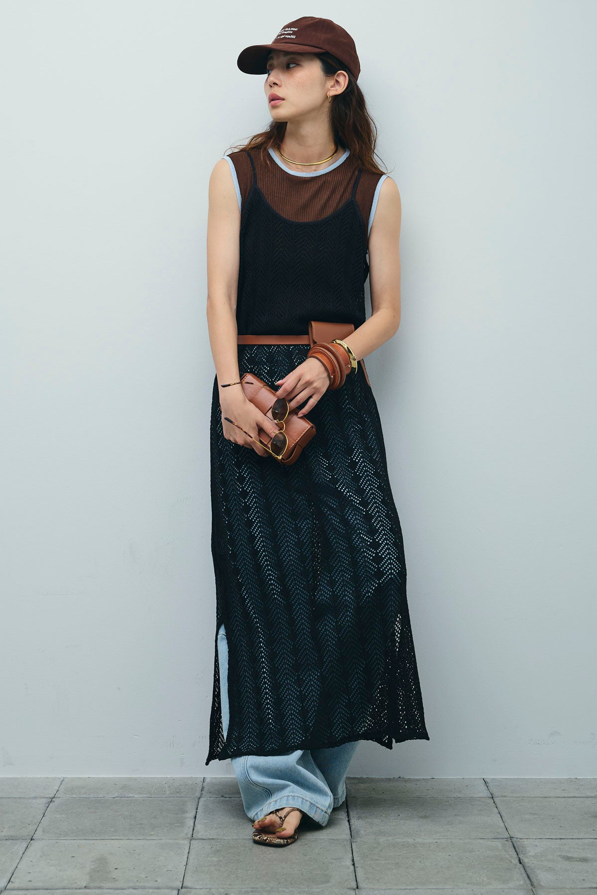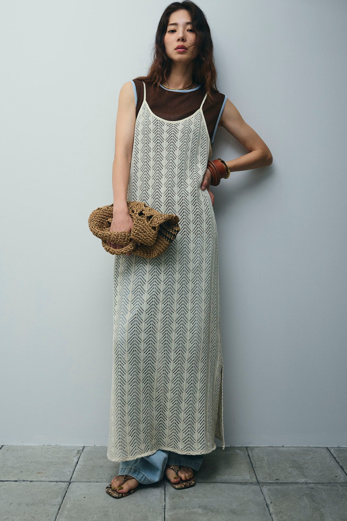 [予約/SET]ニットライクレースキャミOP+ペインターカーブデニムパンツ(2set)