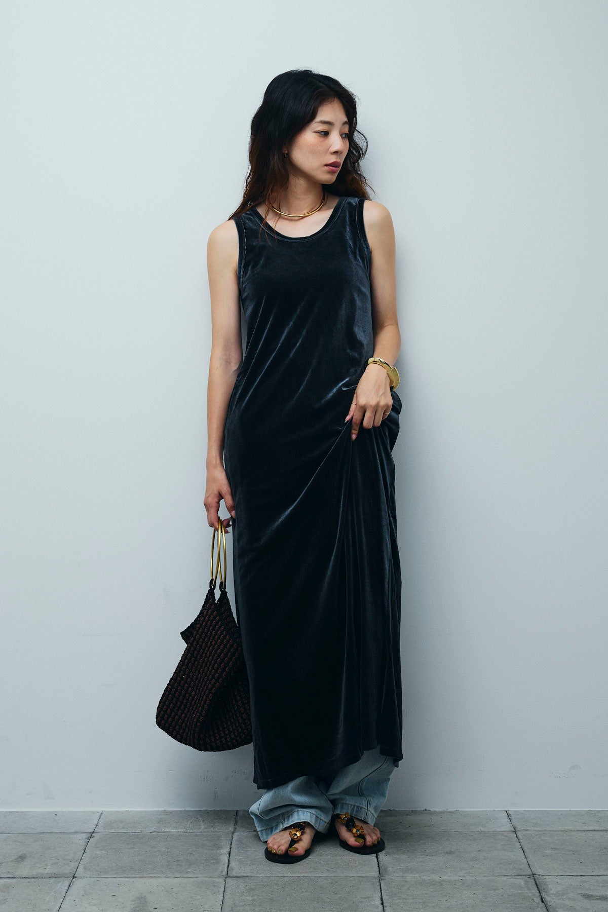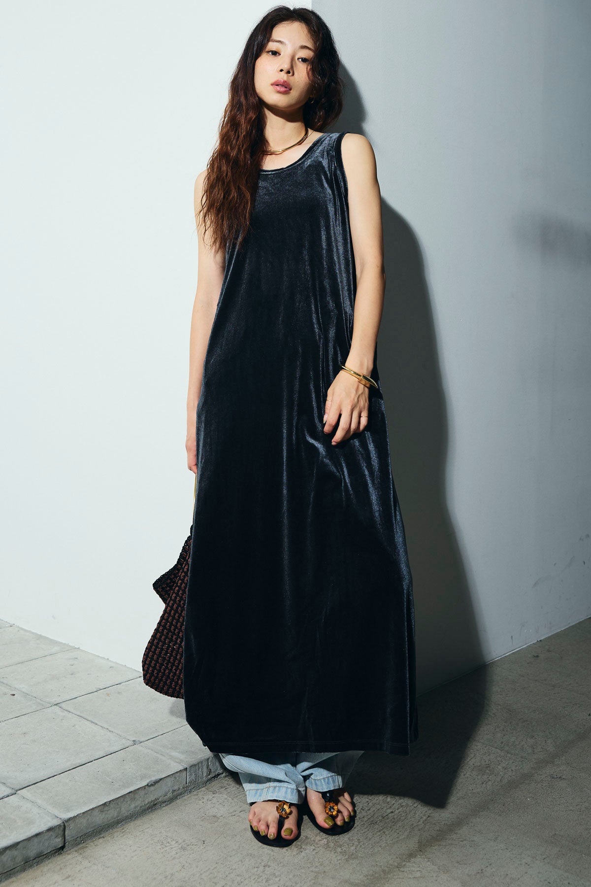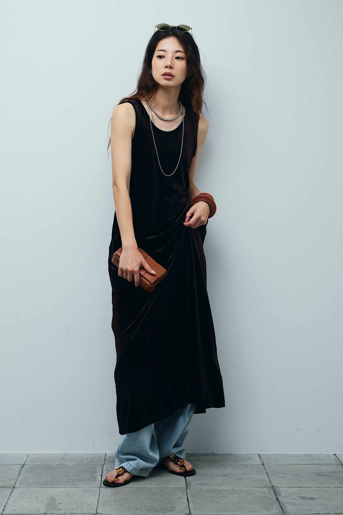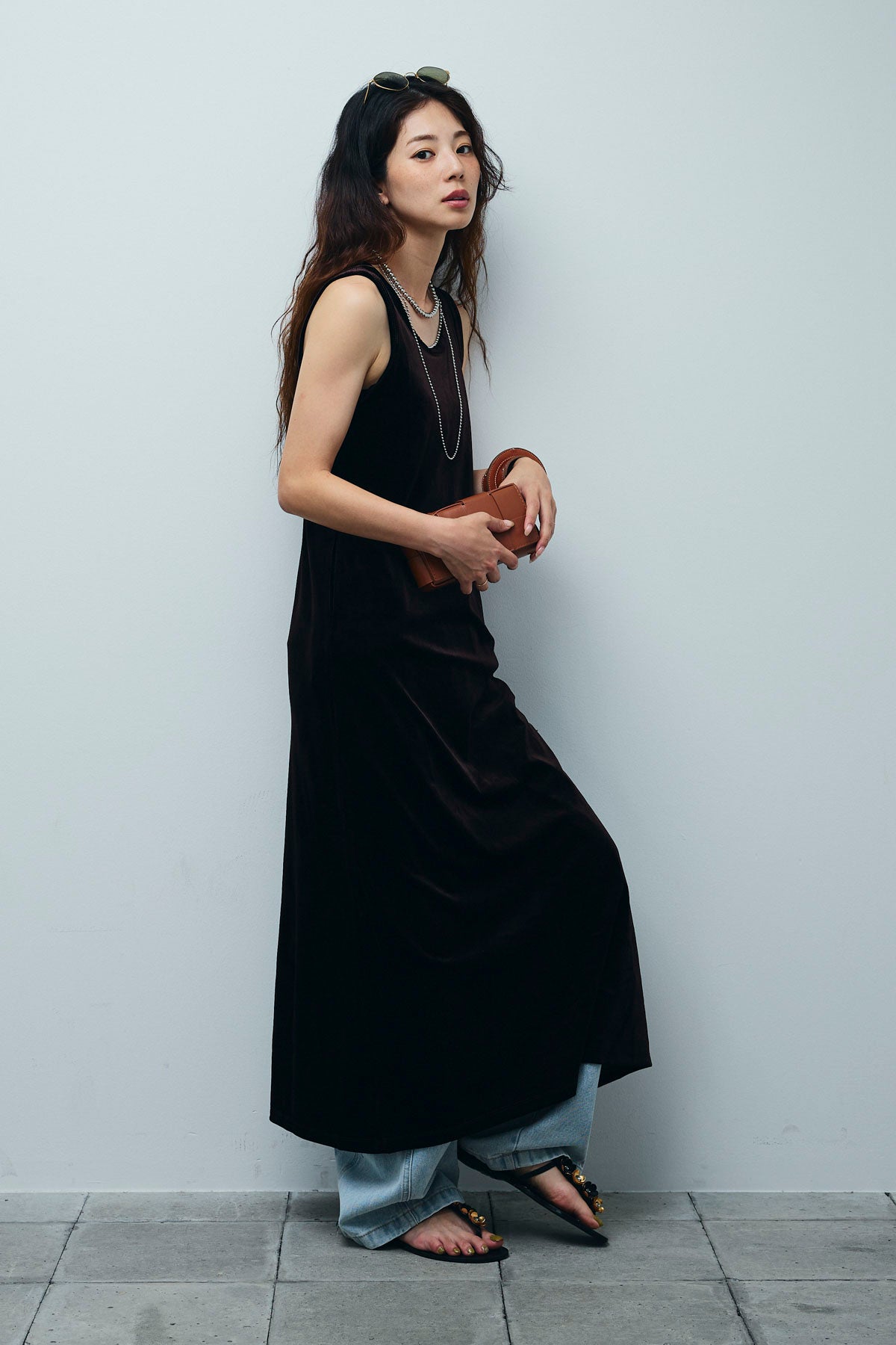 [予約/SET]ベロアロングOP+ペインターカーブデニムパンツ(2set)