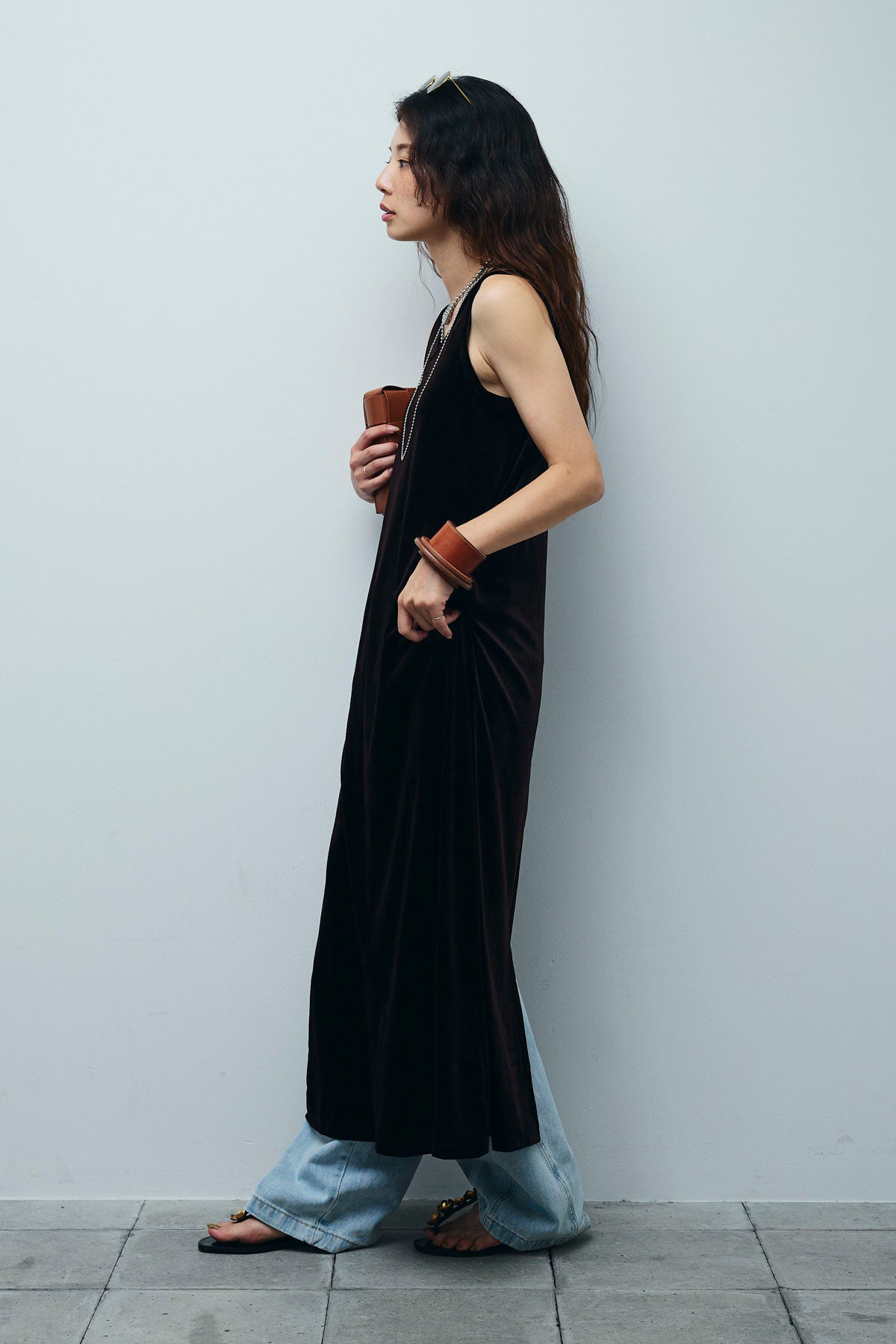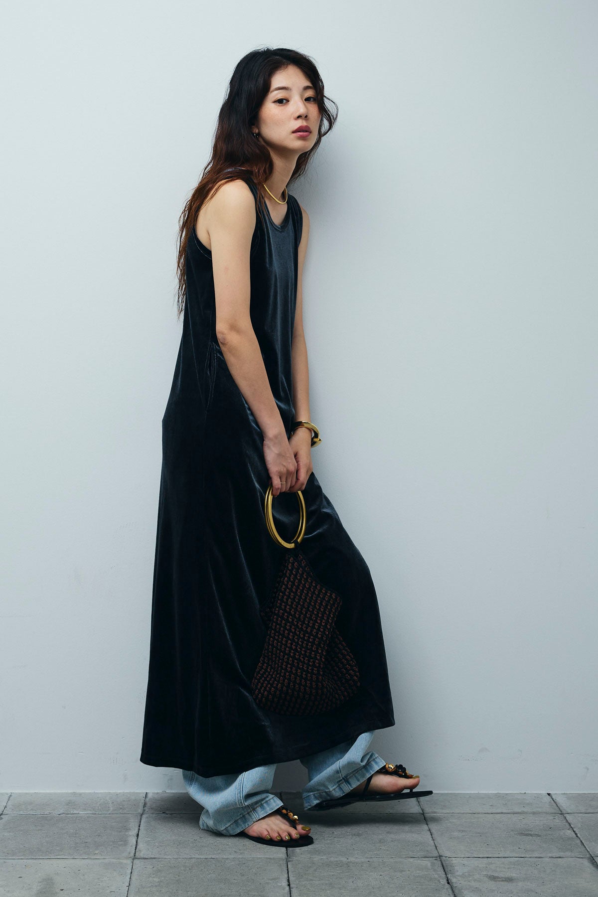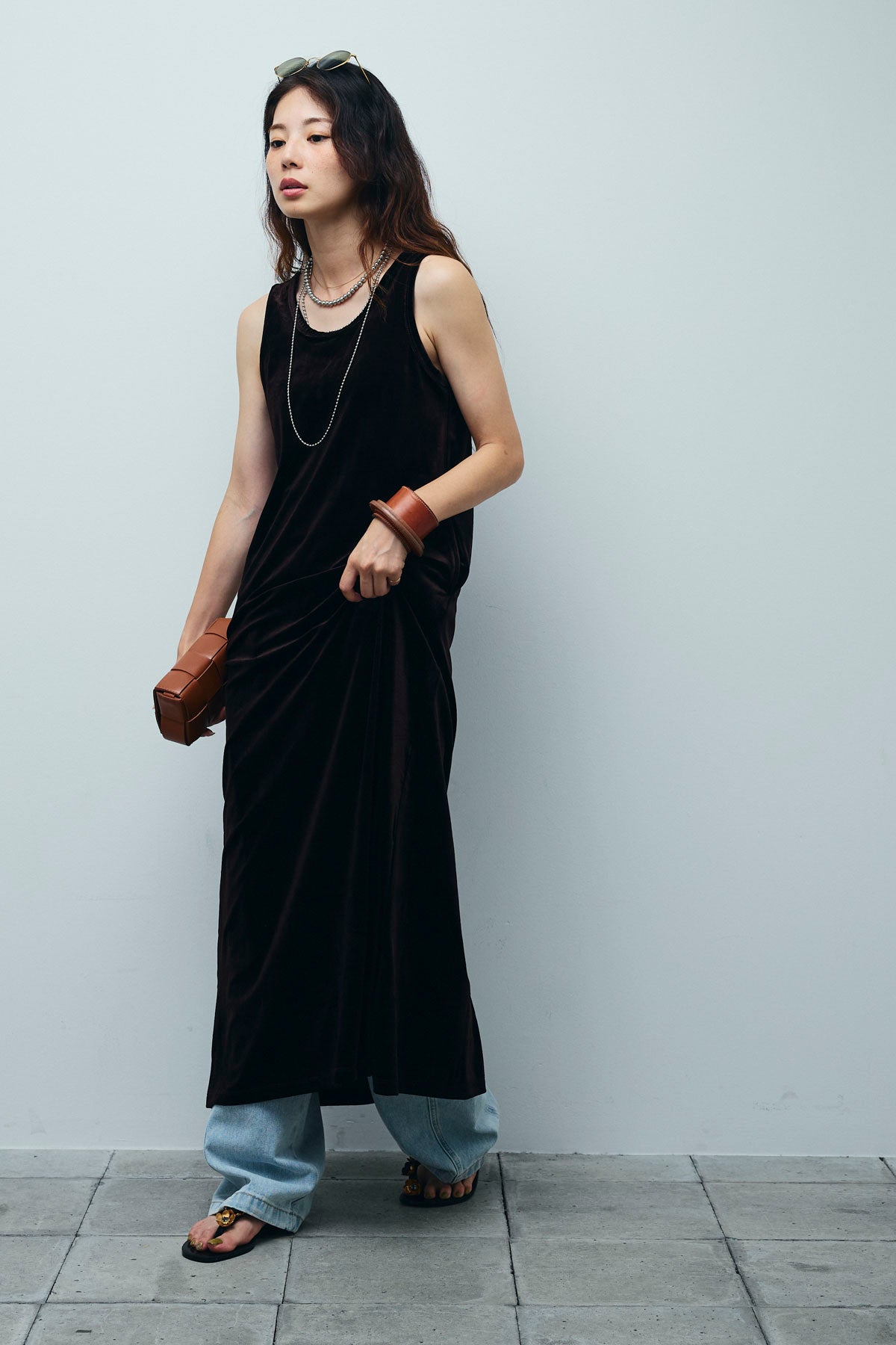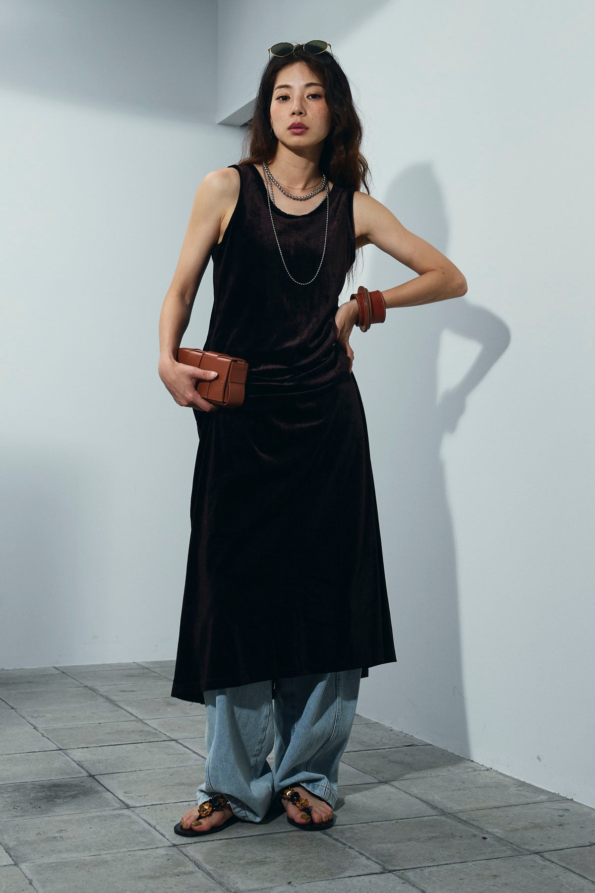[予約/SET]ベロアロングOP+ペインターカーブデニムパンツ(2set)