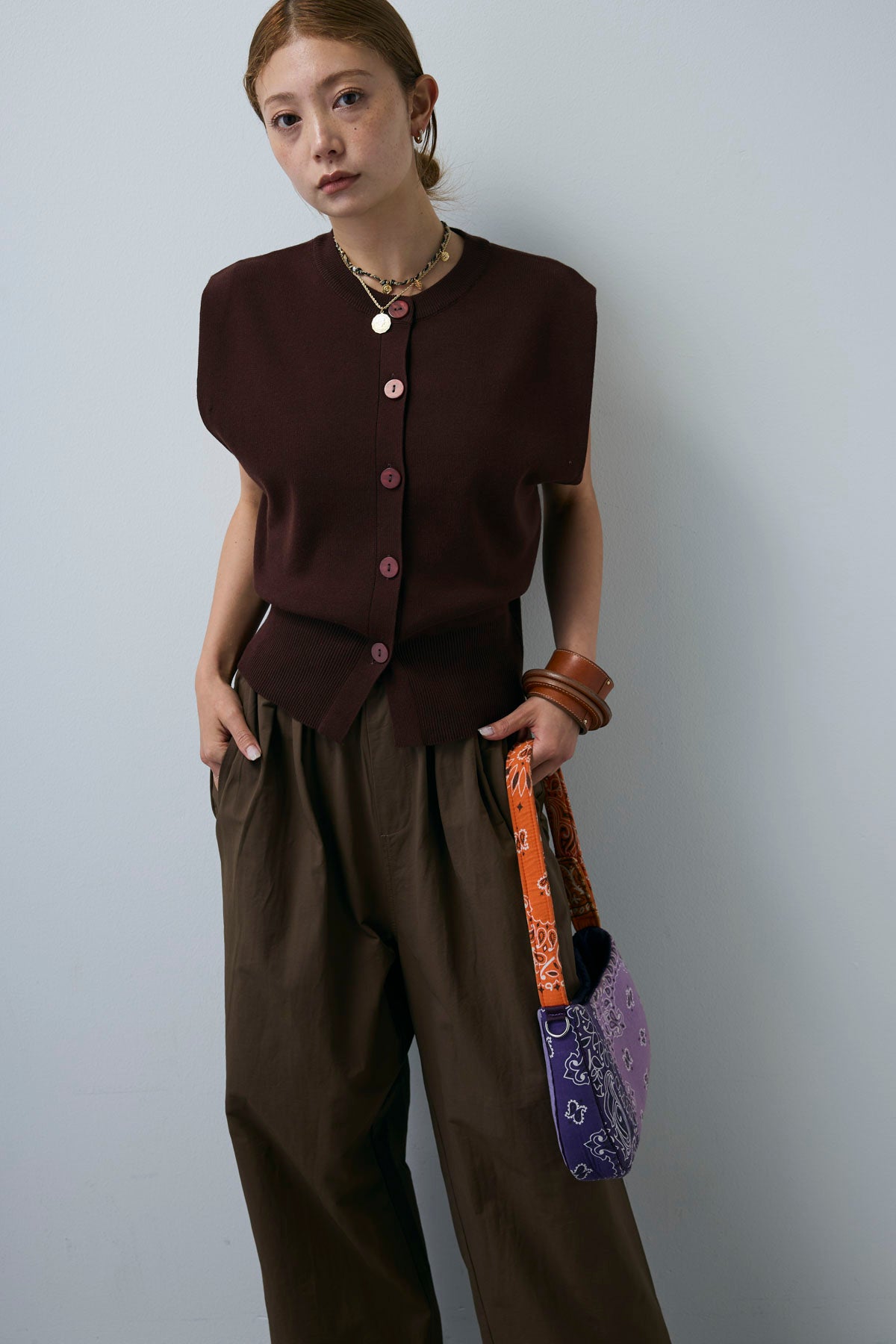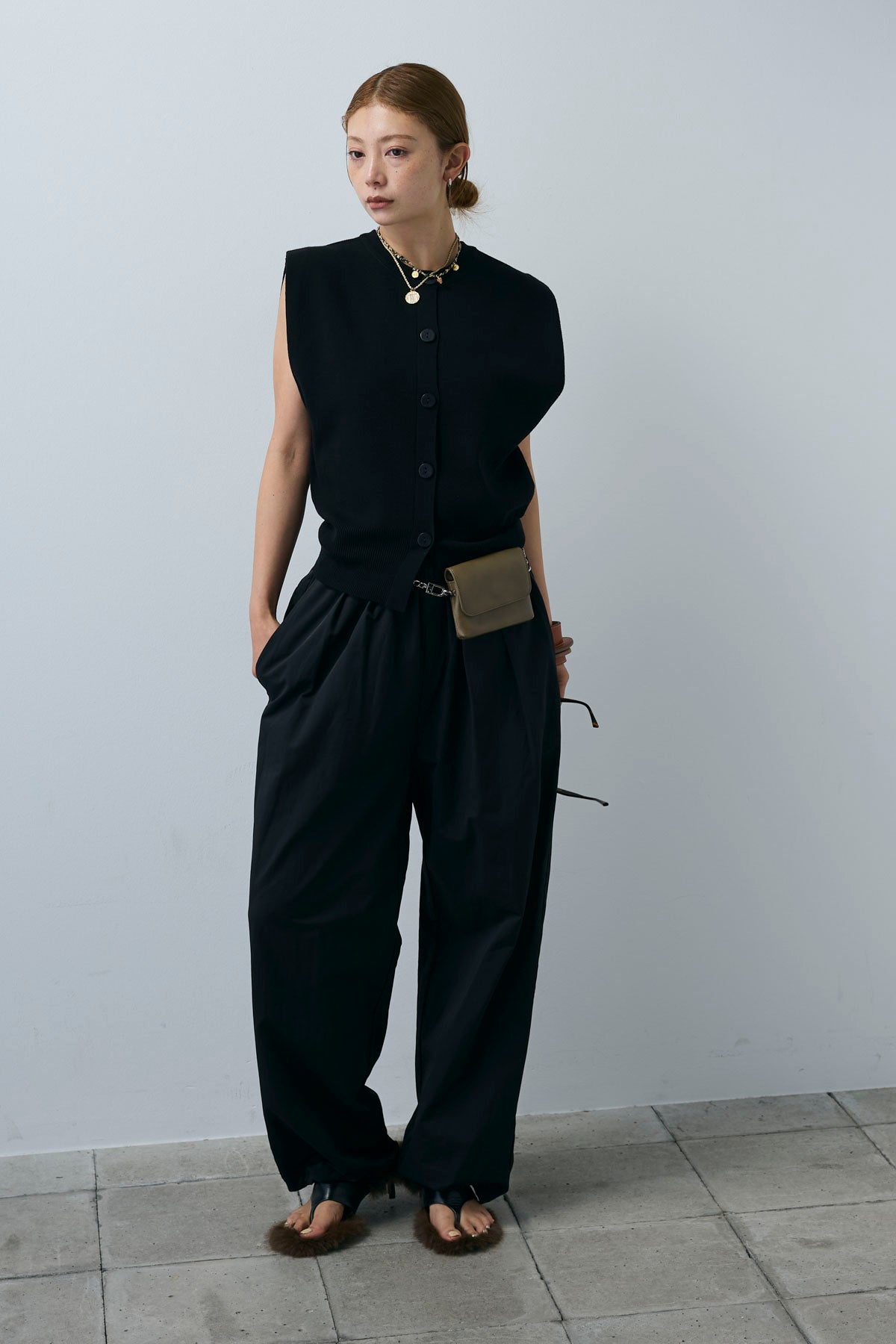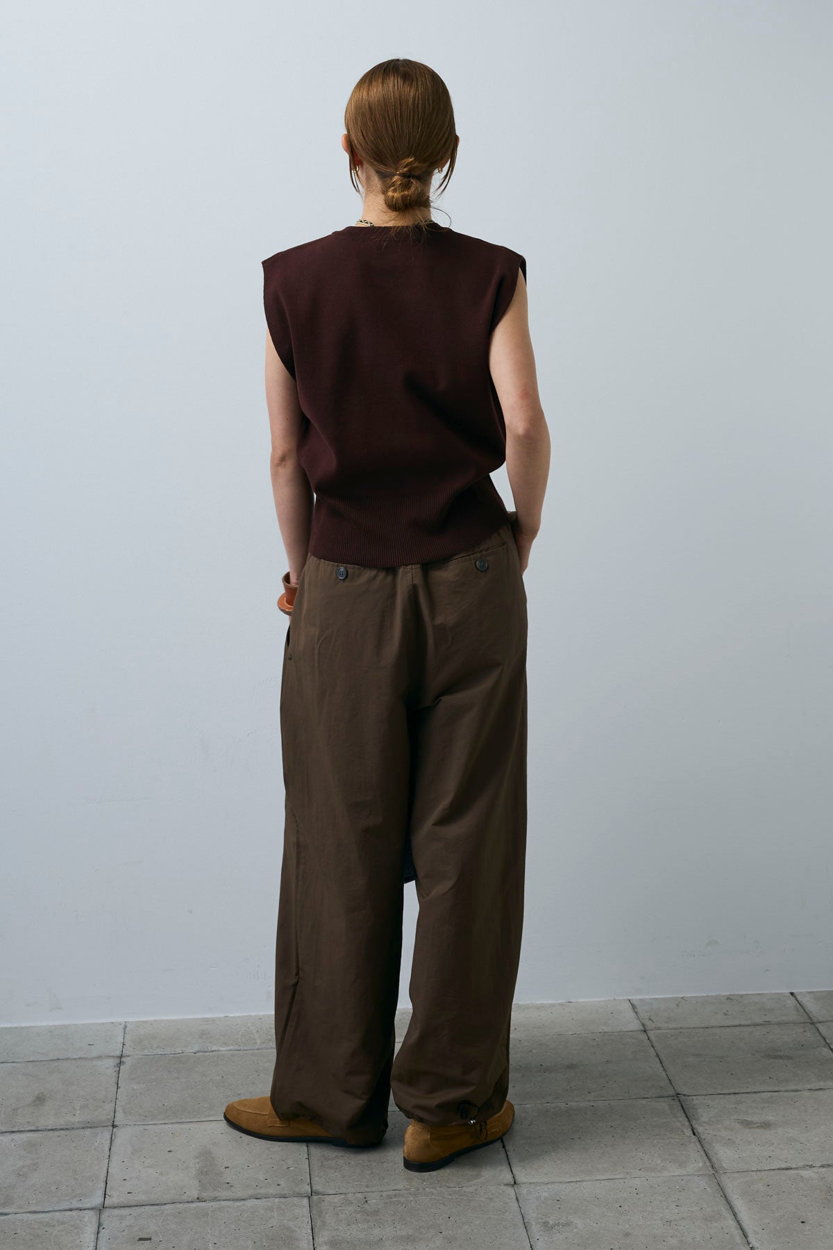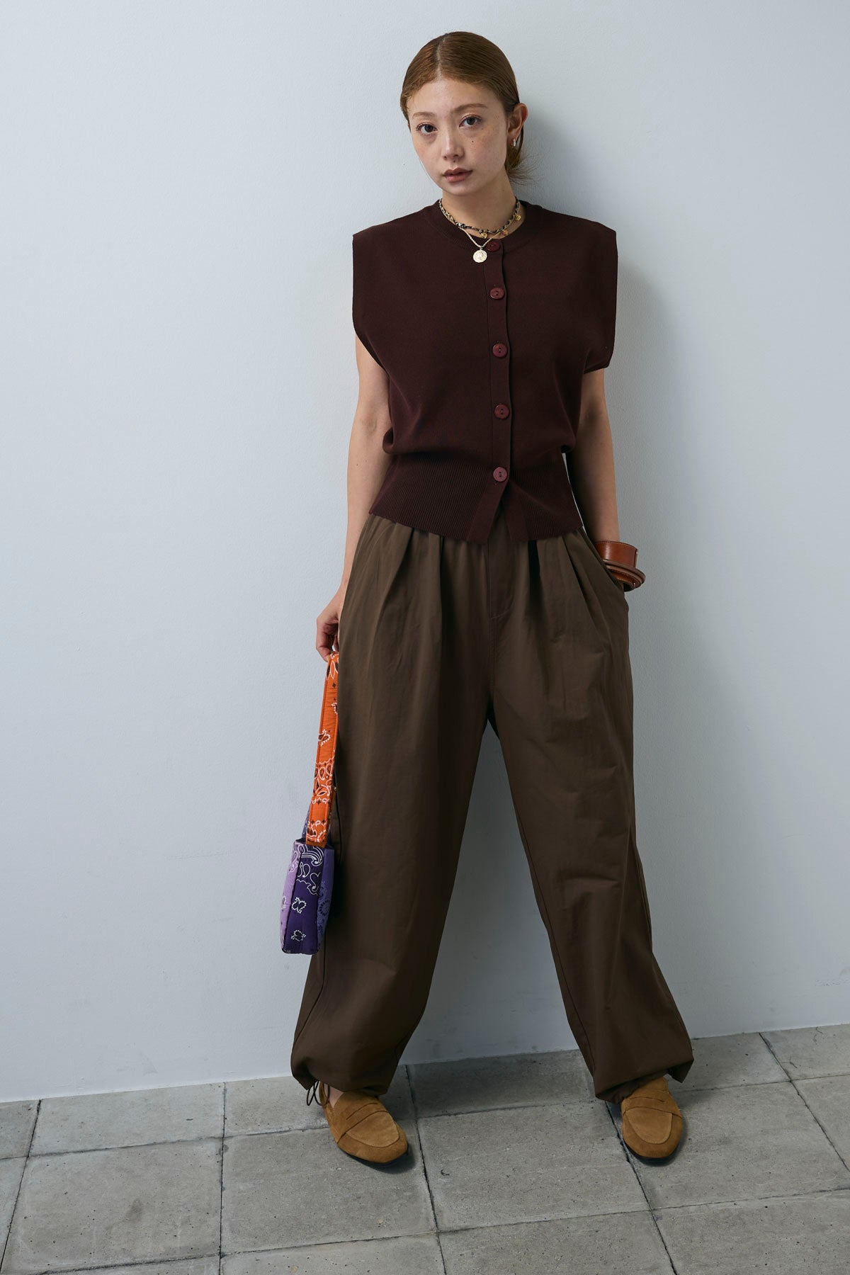 [予約/SET]ボクシーニットベスト+裾ドロストナイロンパンツ(2set)