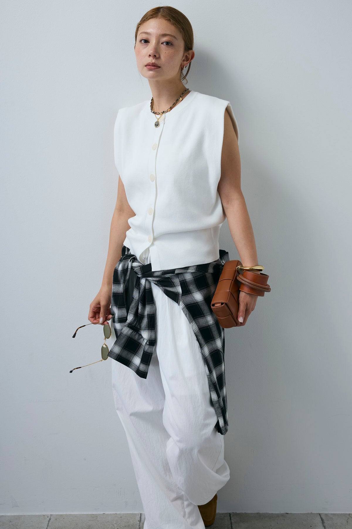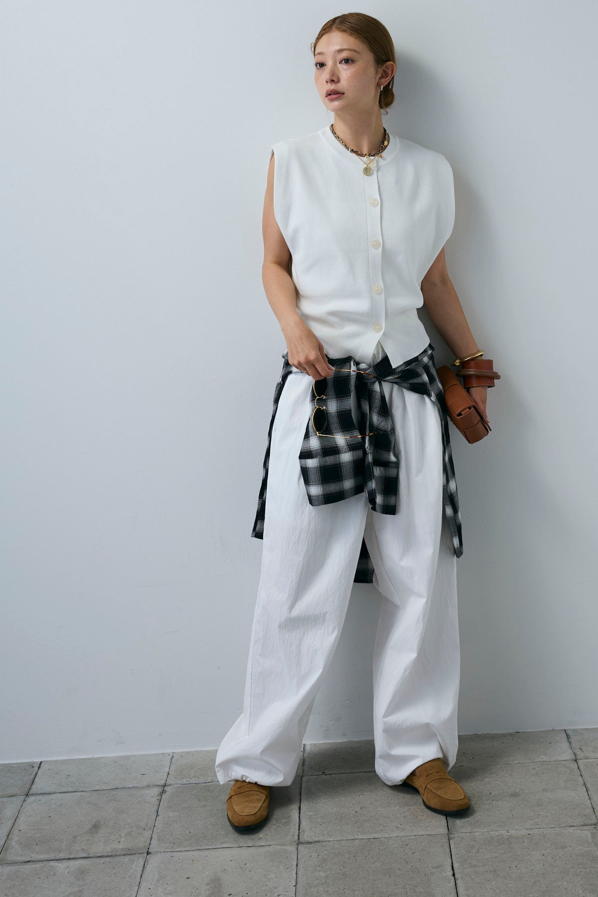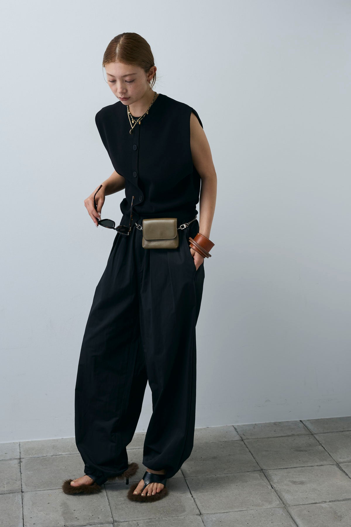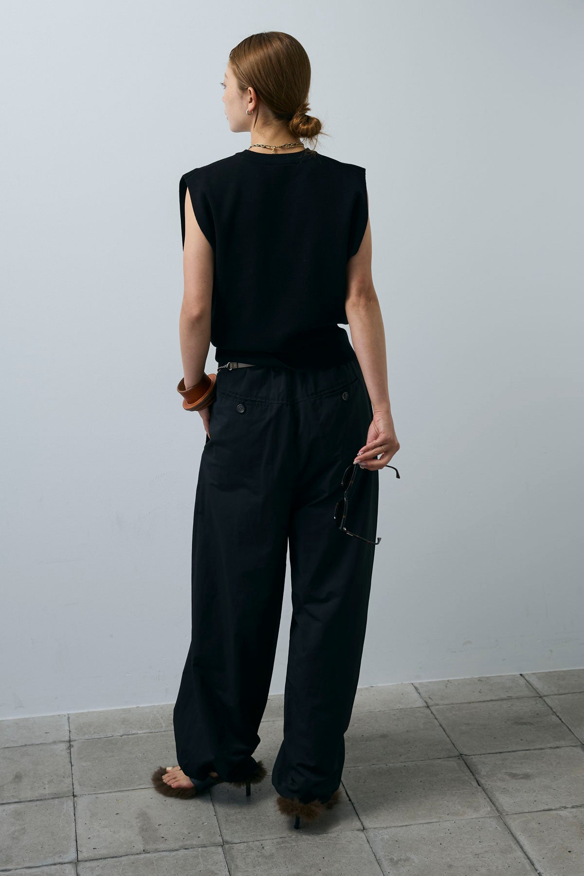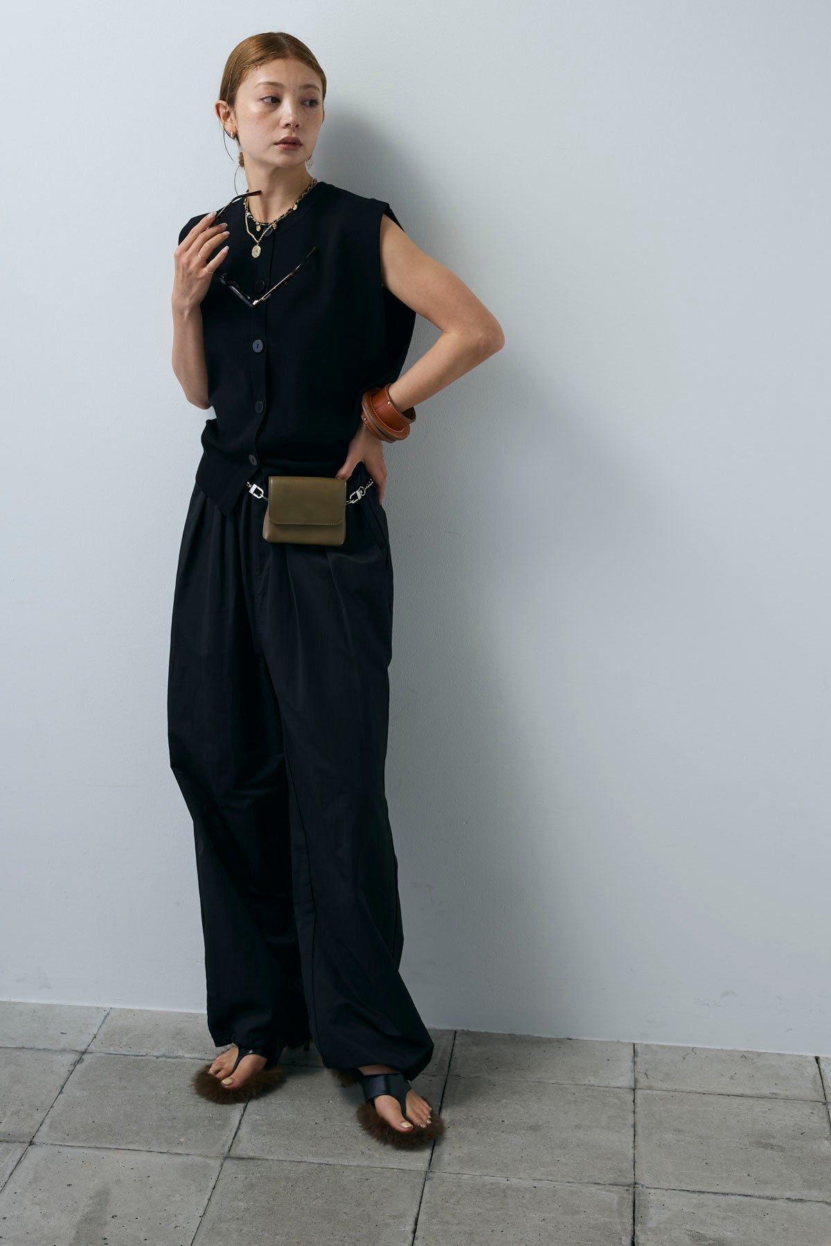 [予約/SET]ボクシーニットベスト+裾ドロストナイロンパンツ(2set)