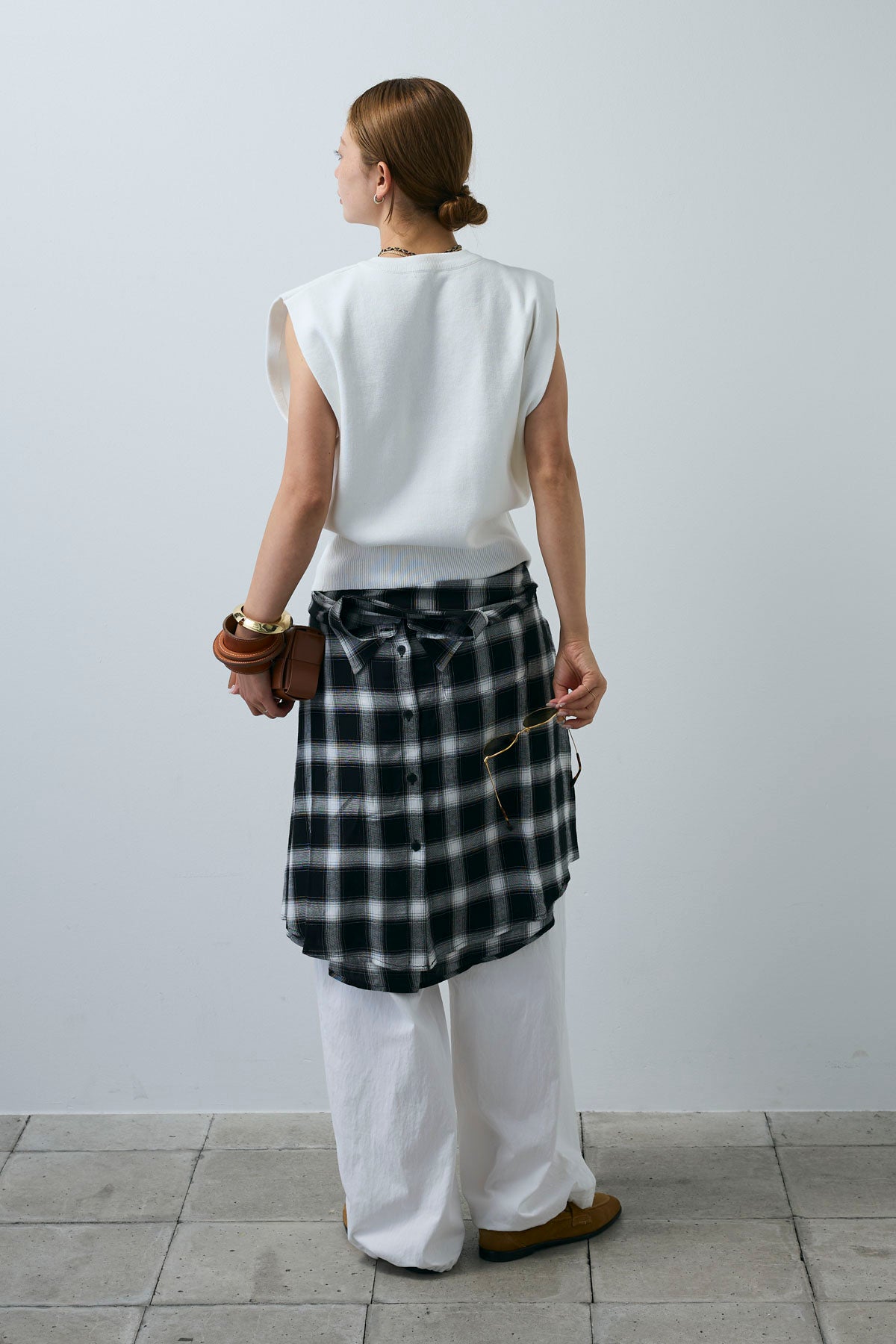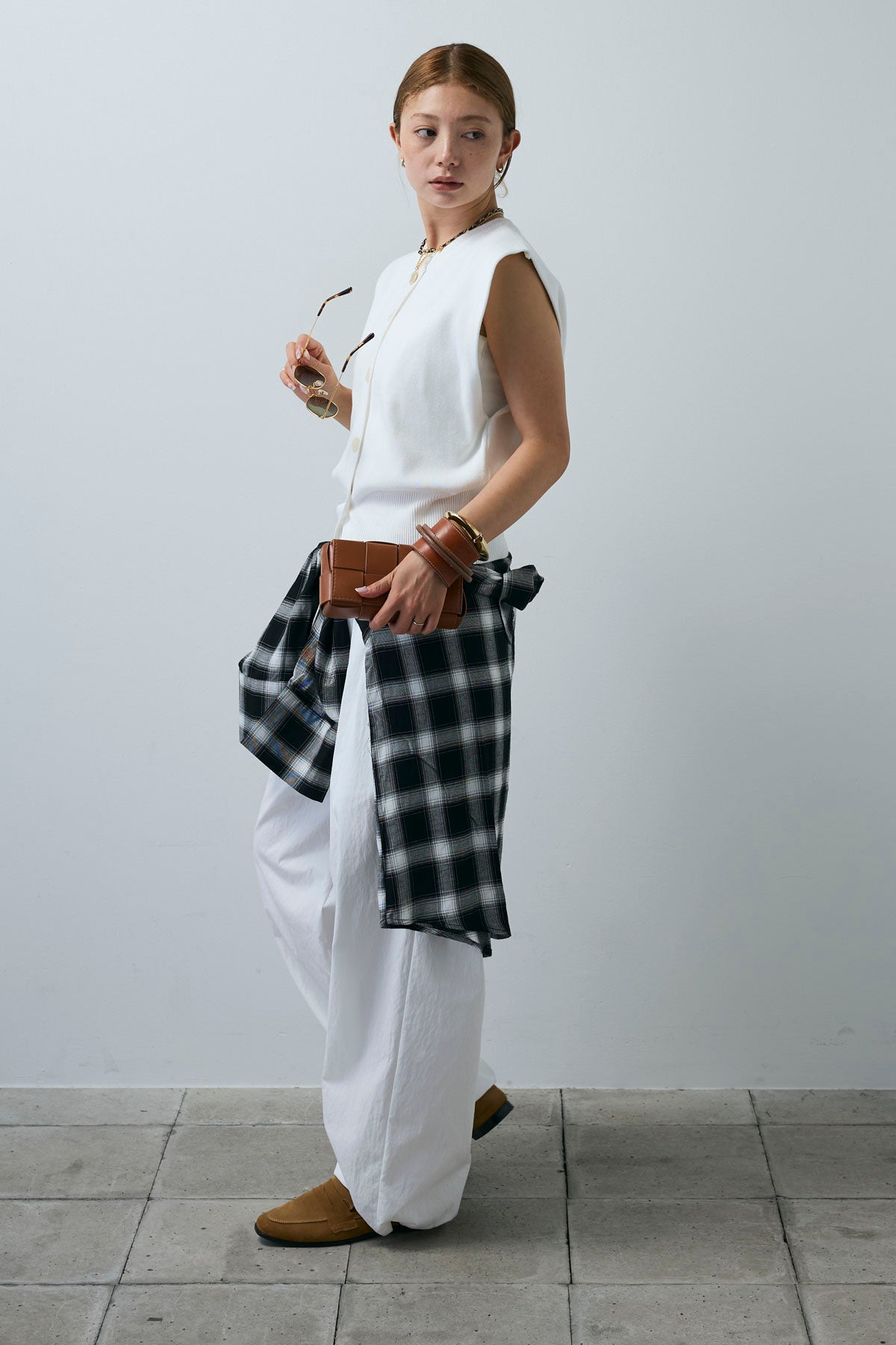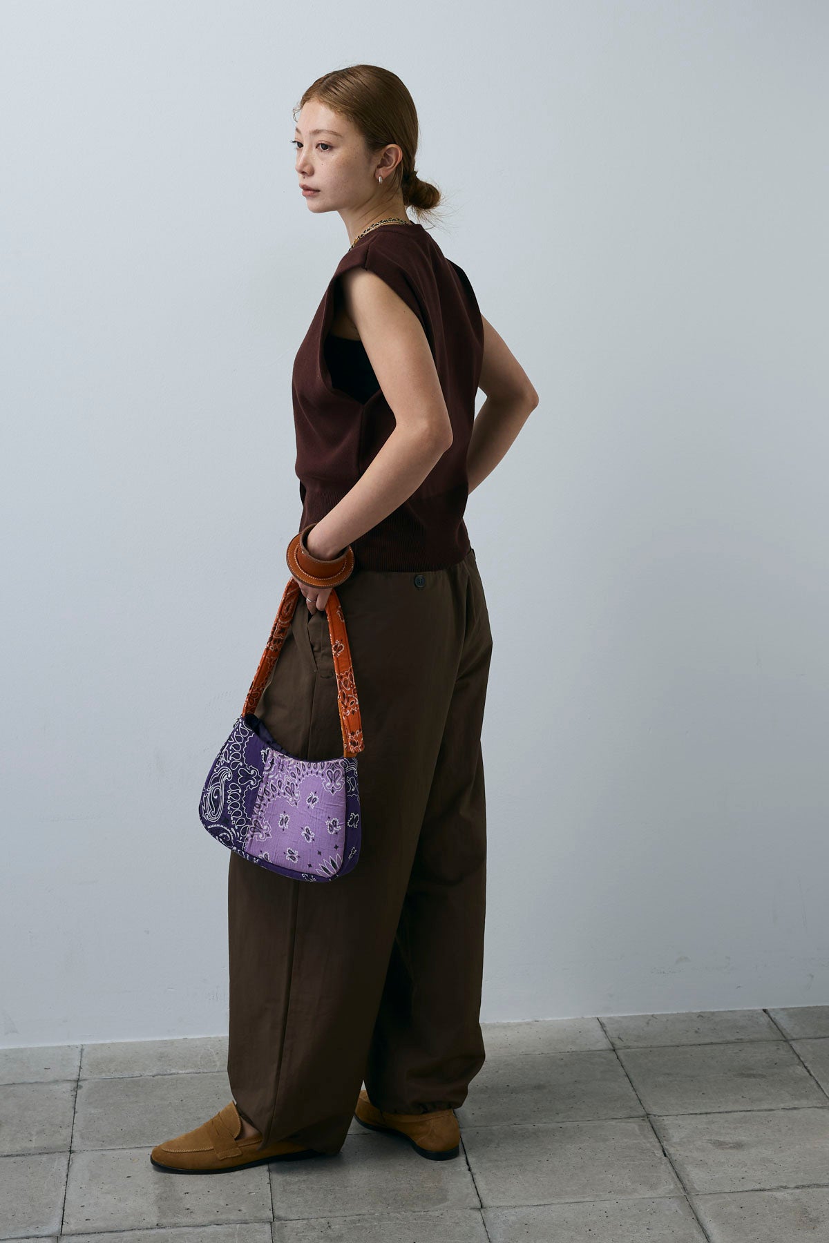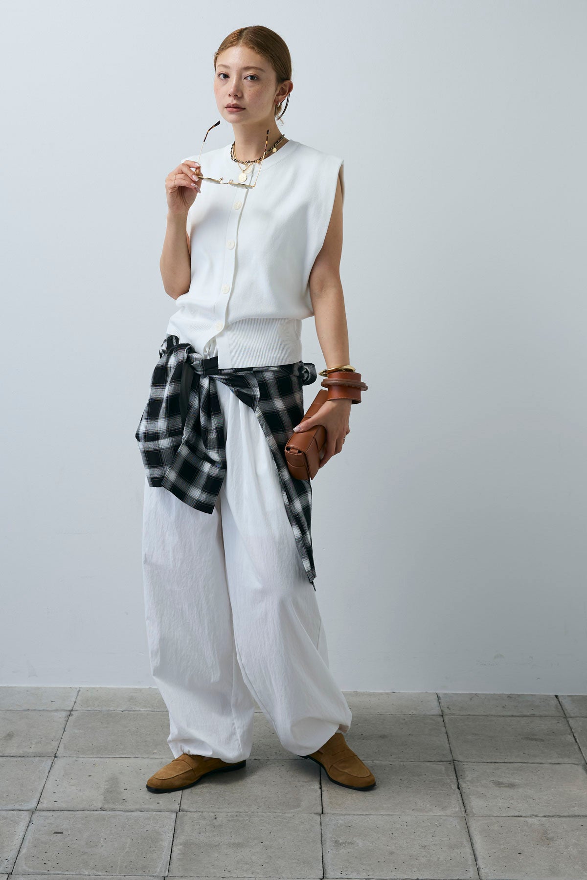 [予約/SET]ボクシーニットベスト+裾ドロストナイロンパンツ(2set)
