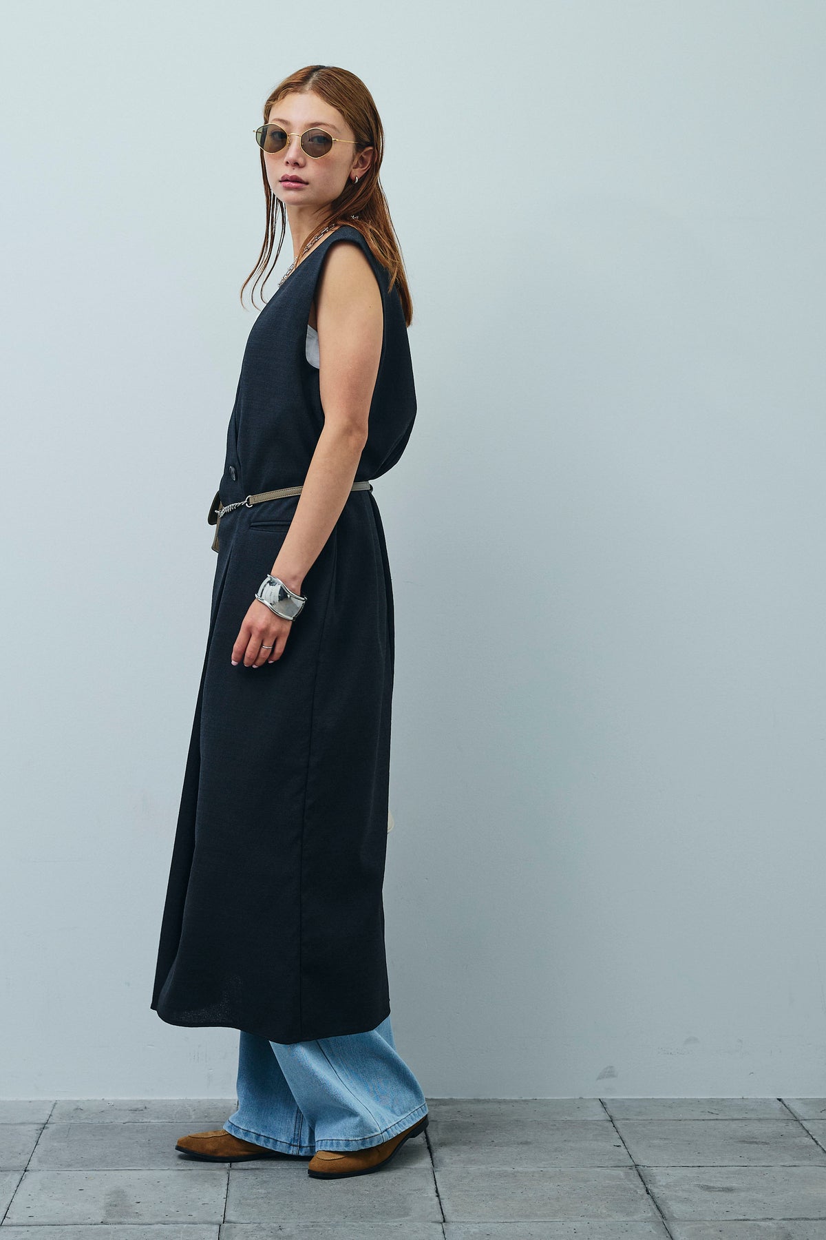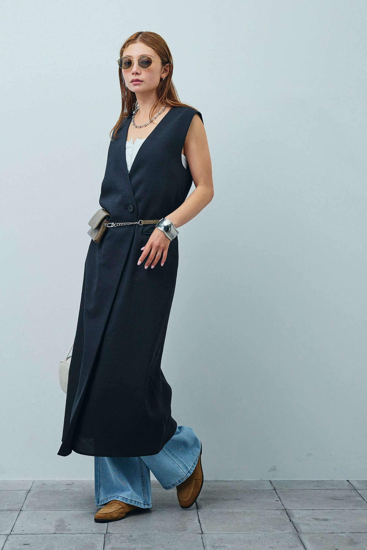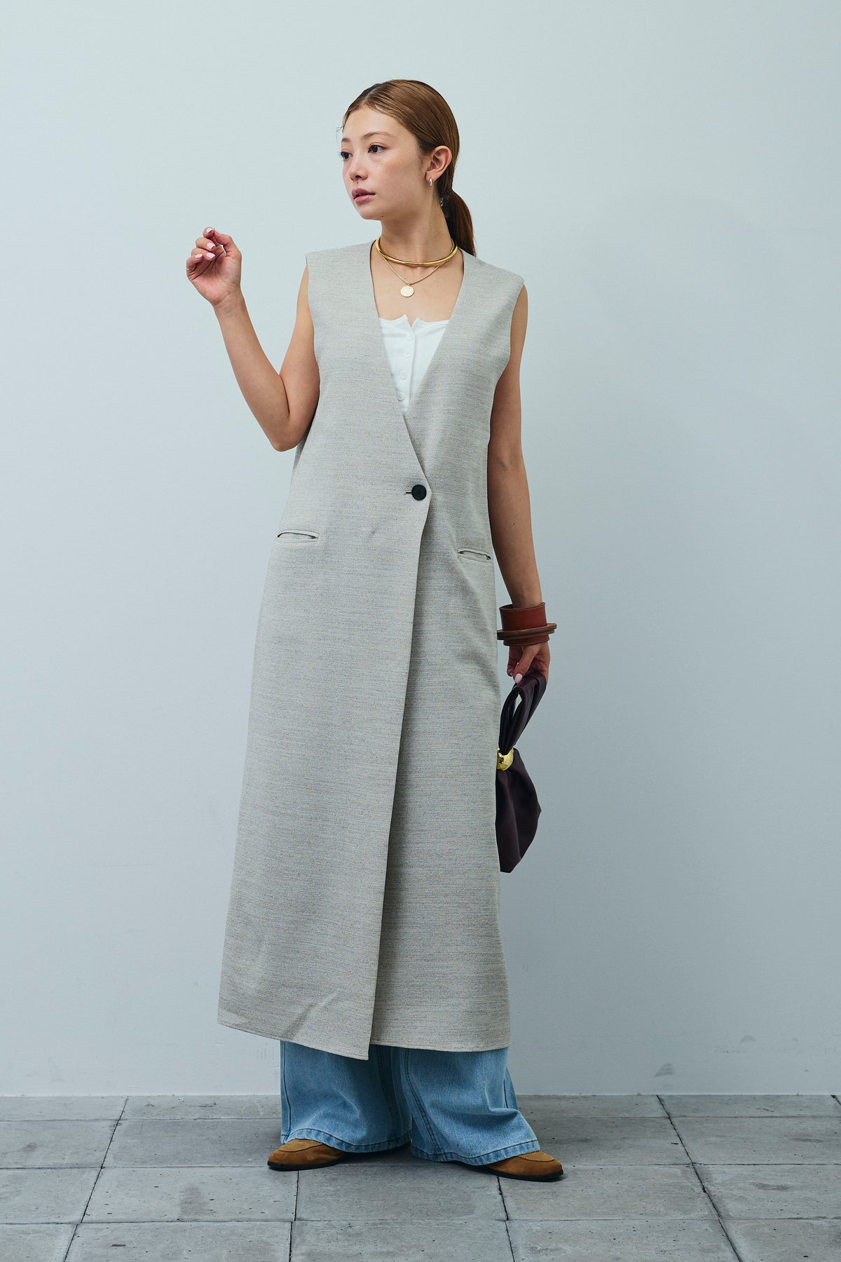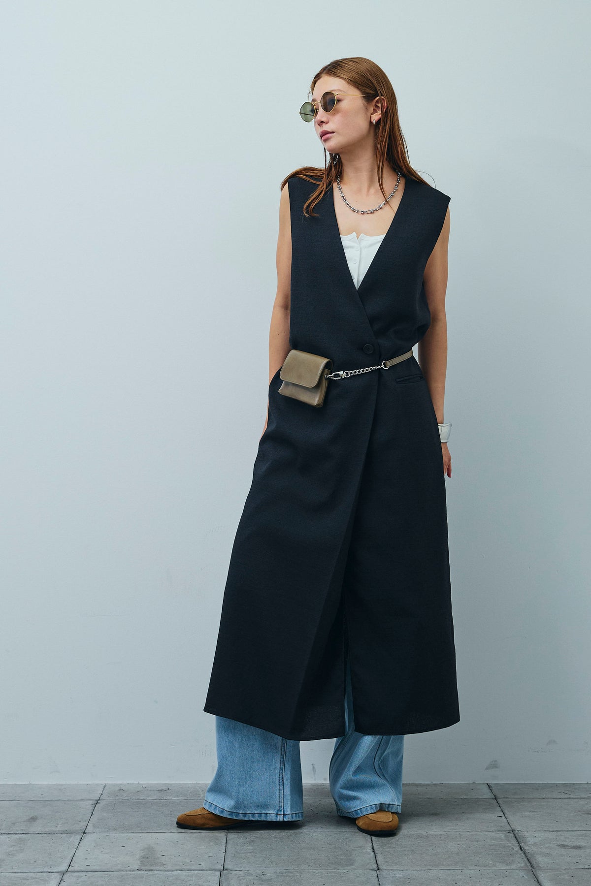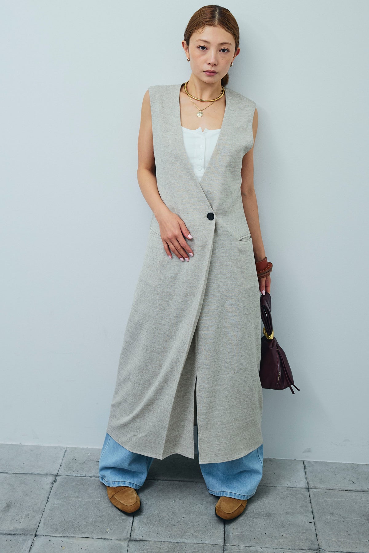 [予約/SET]リネンタッチVネックロングOP+デニムルーズポケットパンツ(2set)